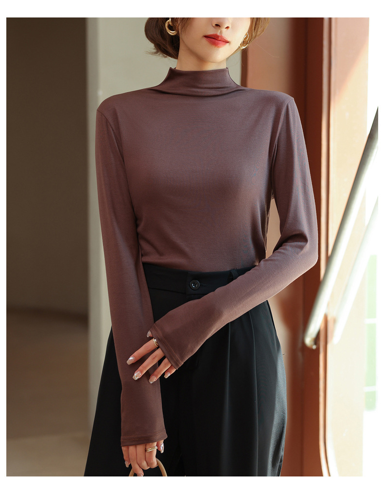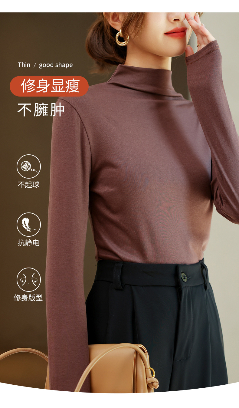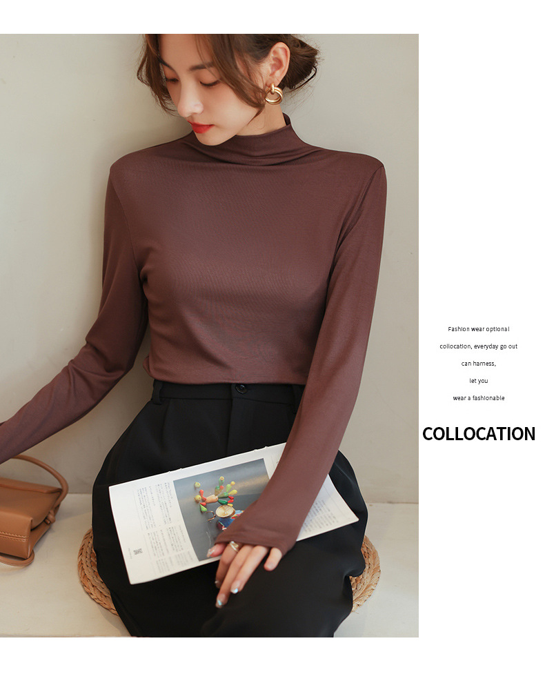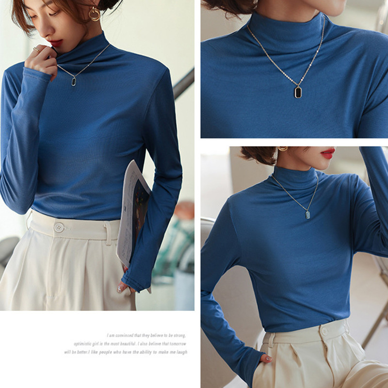 RM29935#韩国东大门莫代尔半高领打底衫秋冬装新款修身百搭长袖T恤女上衣