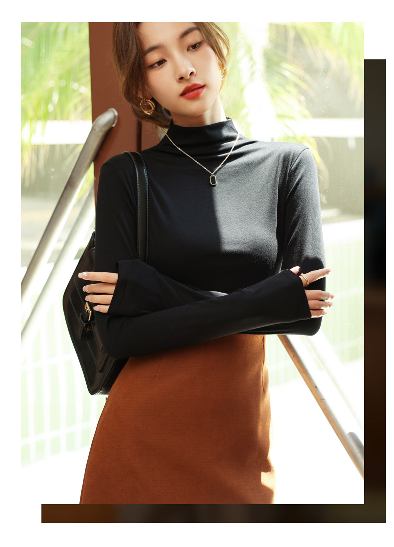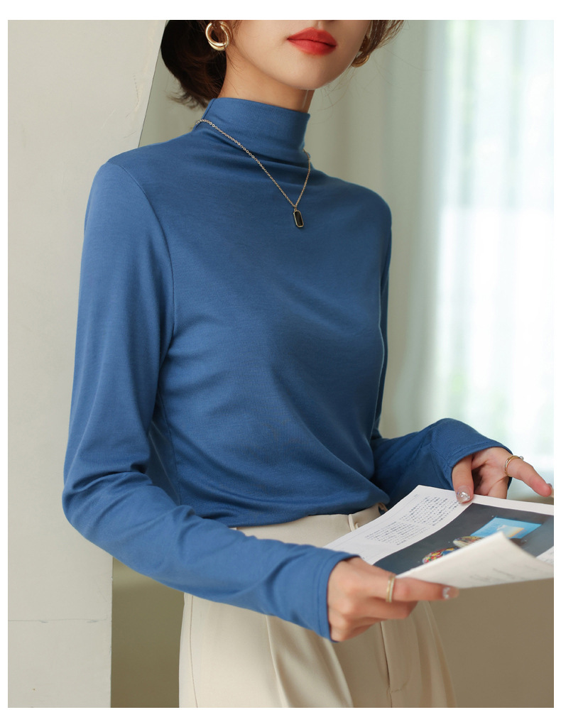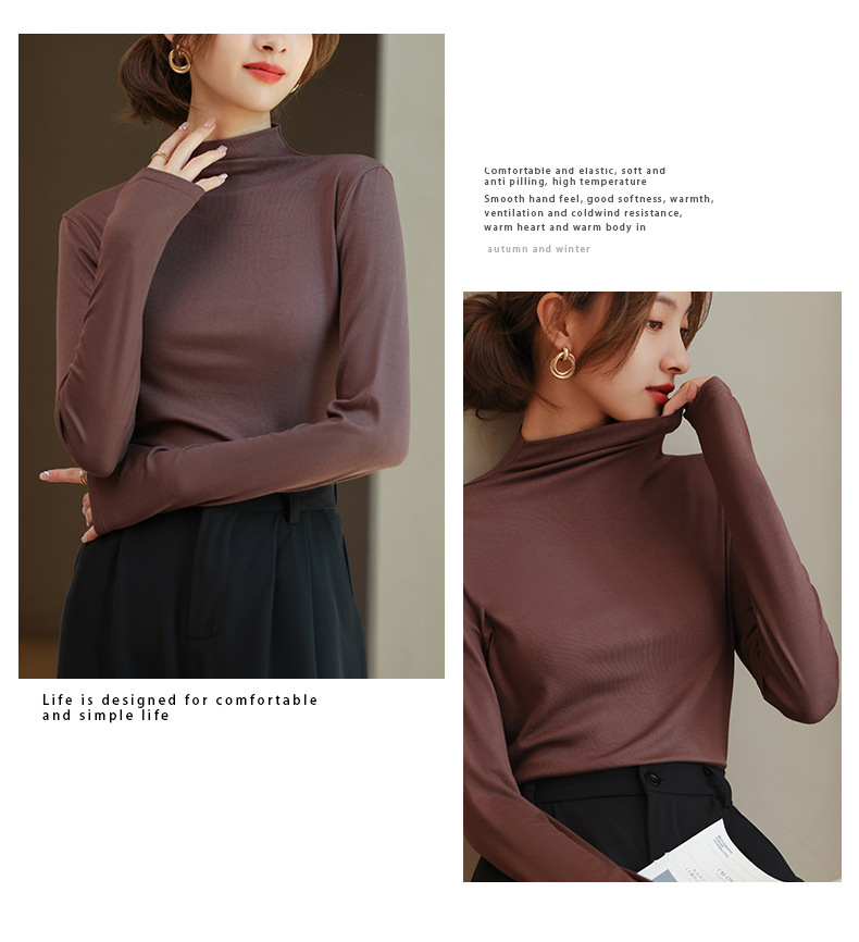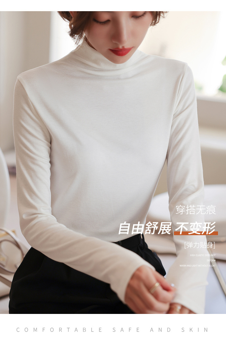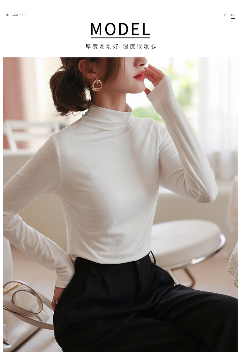 RM29935#韩国东大门莫代尔半高领打底衫秋冬装新款修身百搭长袖T恤女上衣