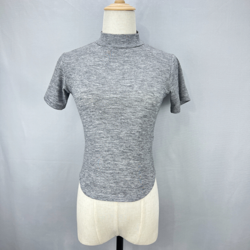 RM29936#韩国东大门性感显胸大~半高领短袖T恤女修身显瘦纯色上衣打底衫