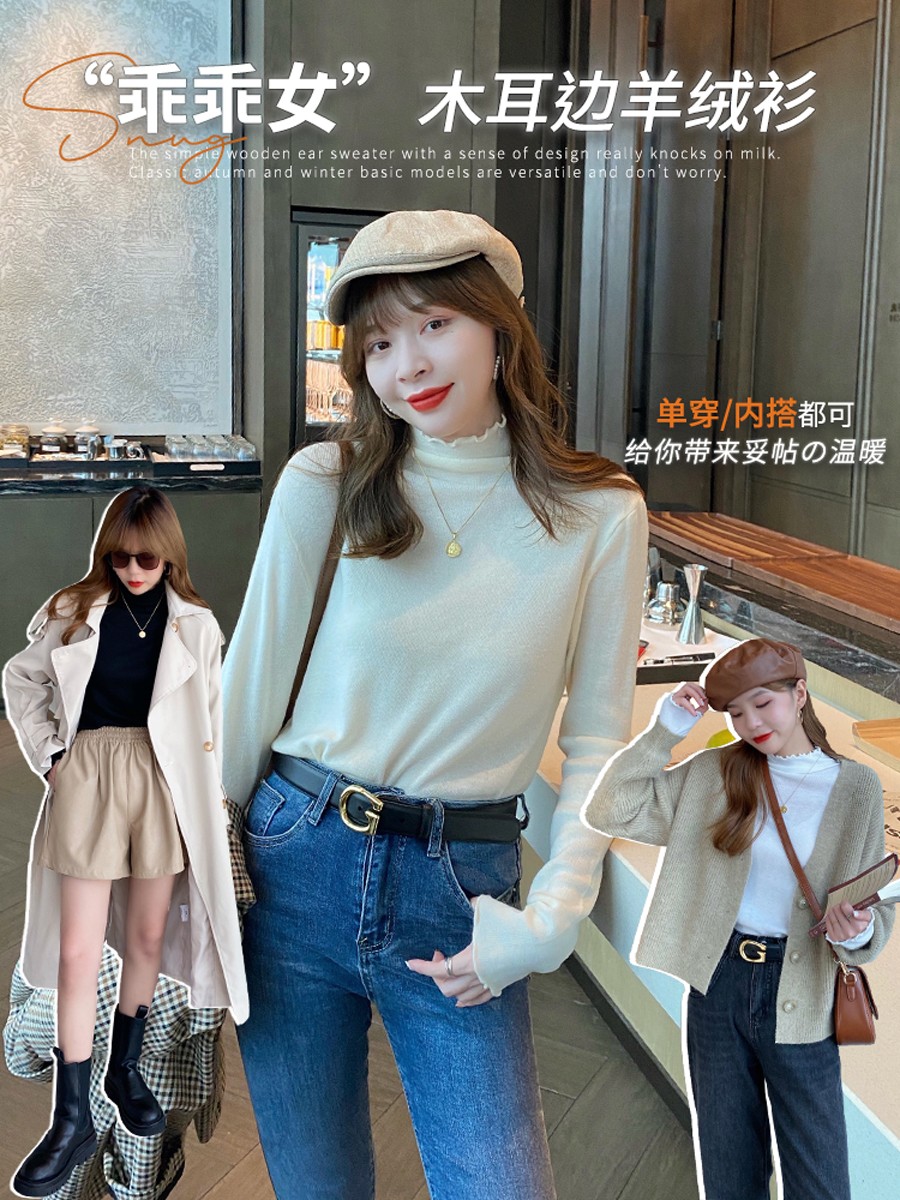 RM29940#木耳边打底衫女设计感小众2022年秋季新款薄款针织衫内搭高领毛衣