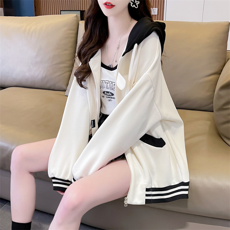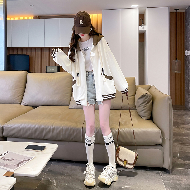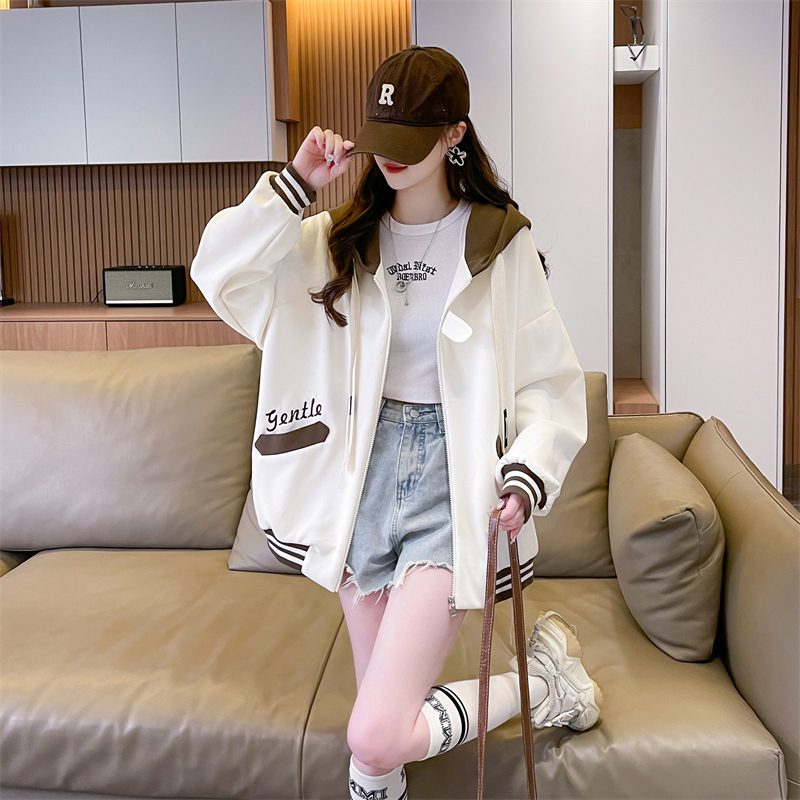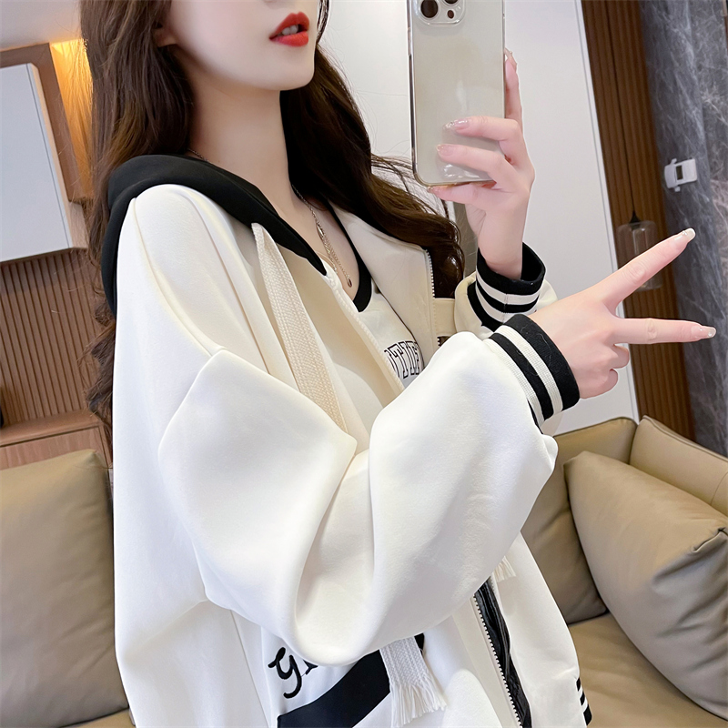 RM29943#华棉复合贝贝绒加绒棒球服卫衣女百搭韩版宽松外套潮
