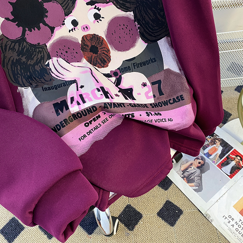 RM29944#华棉复银狐绒380克特大码300斤后包领加绒加厚卫衣女