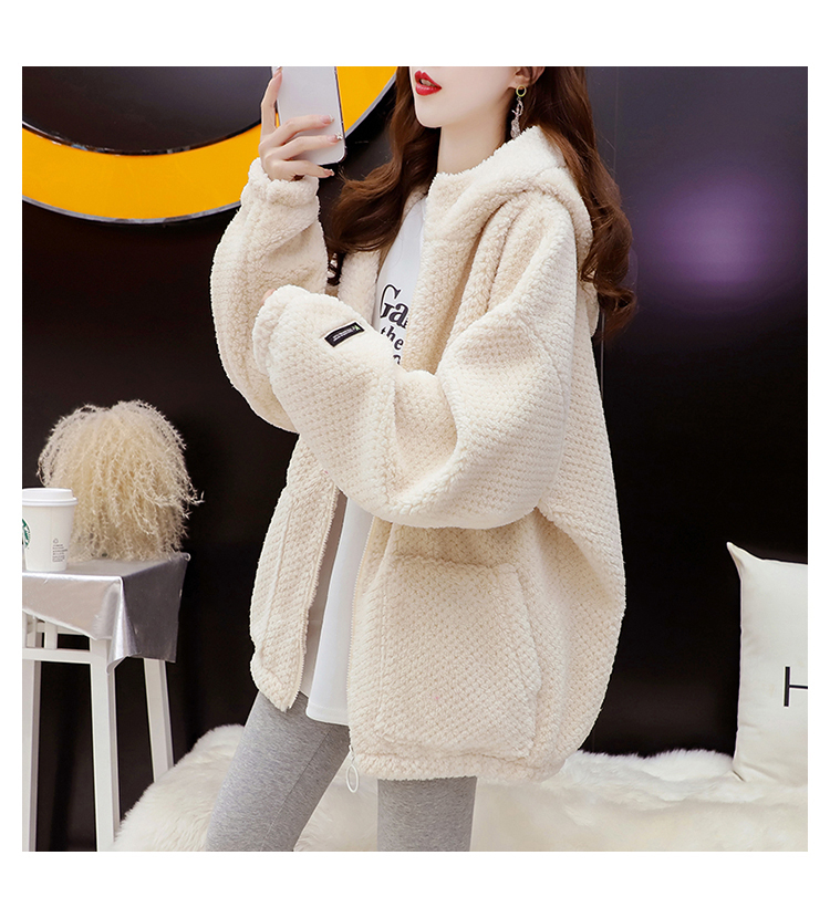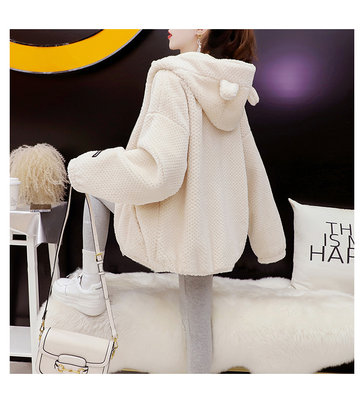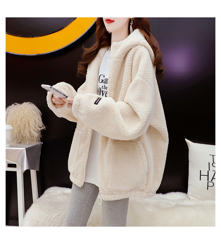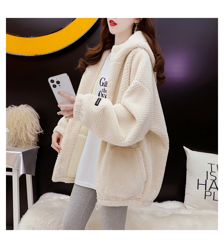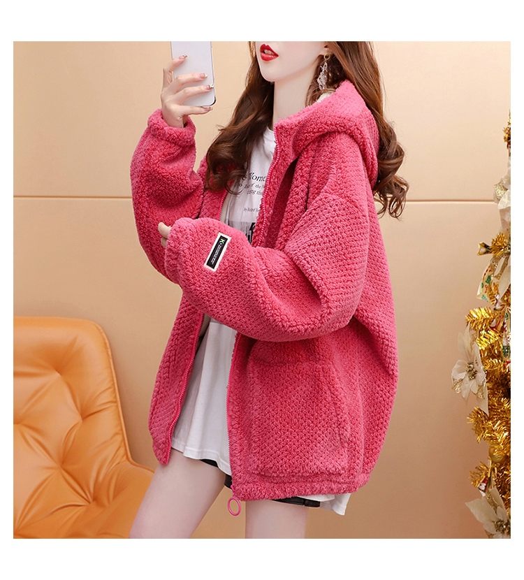 RM29946#双面玫瑰绒秋冬2023羊羔绒加绒加厚连帽开衫外套女