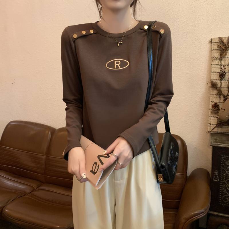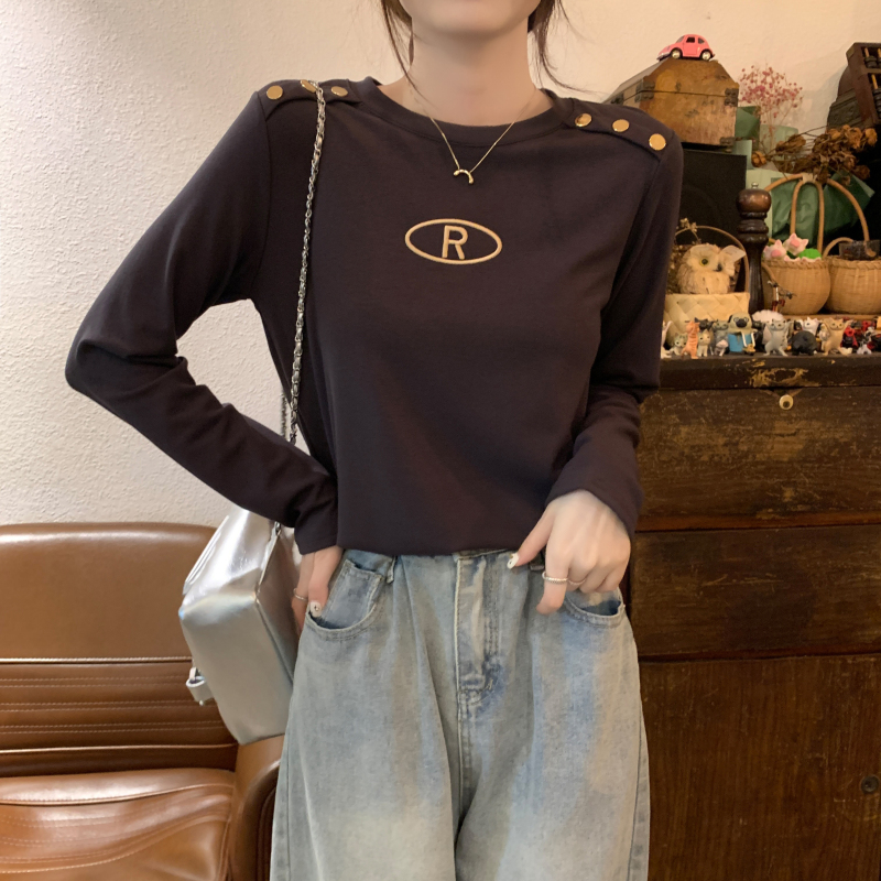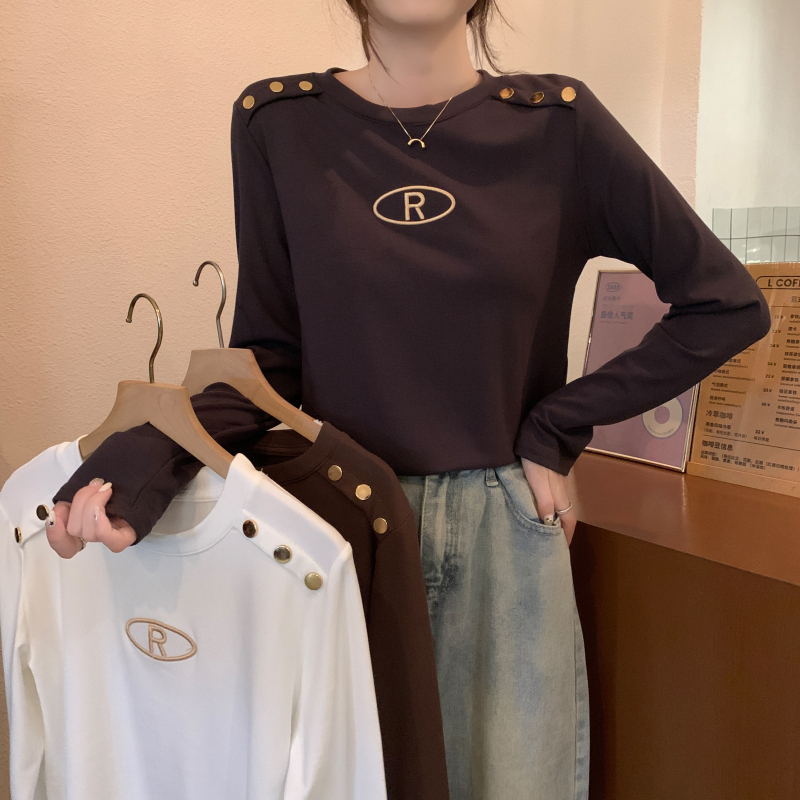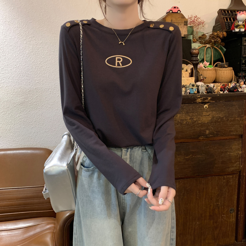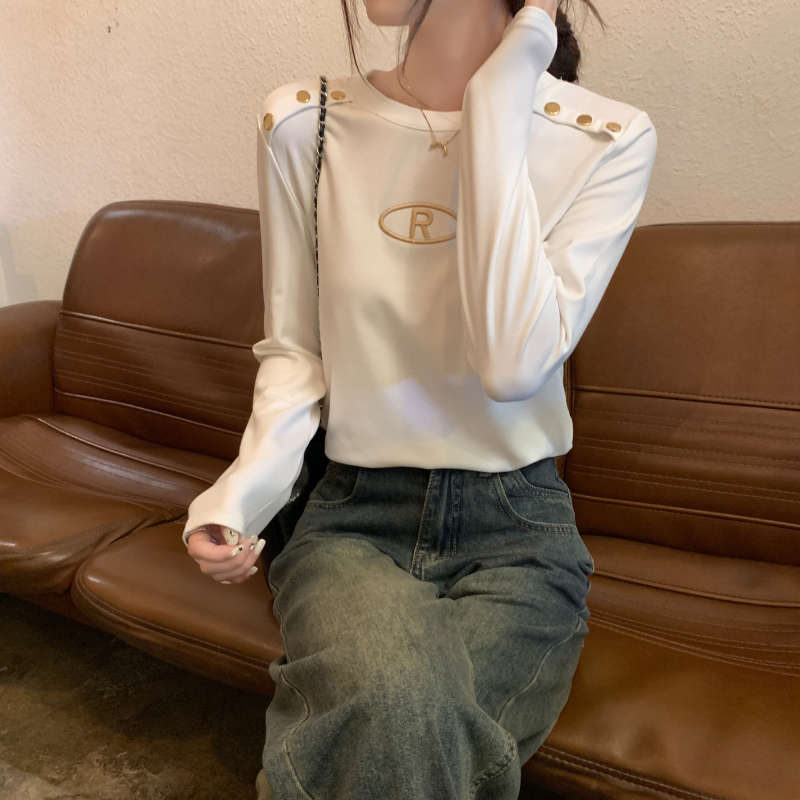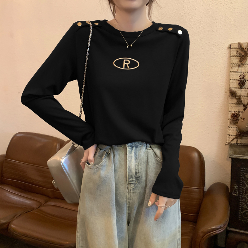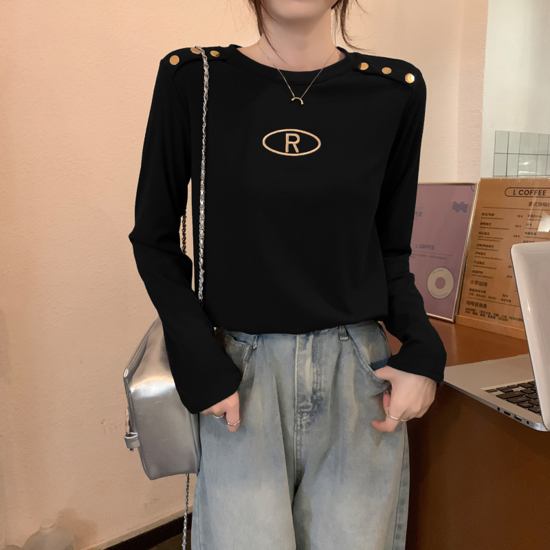 RM29984#加绒重工字母刺绣修身显瘦打底衫女洋气修身长袖T恤上衣