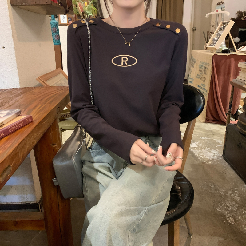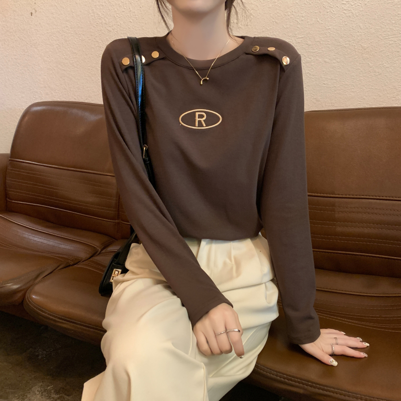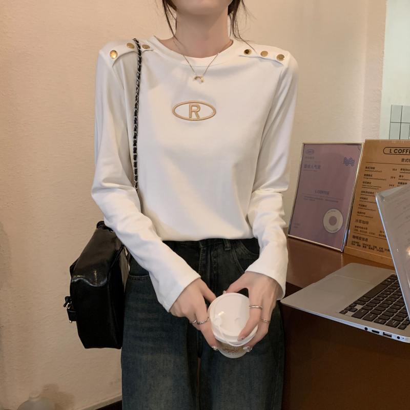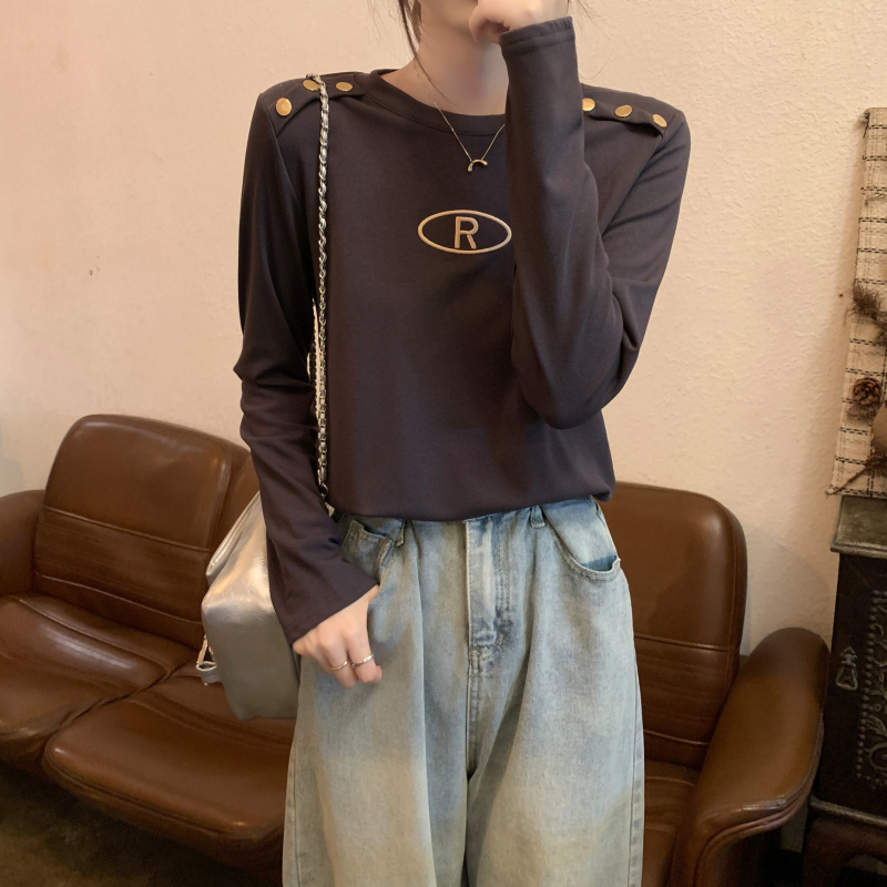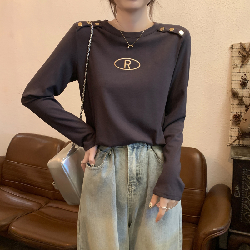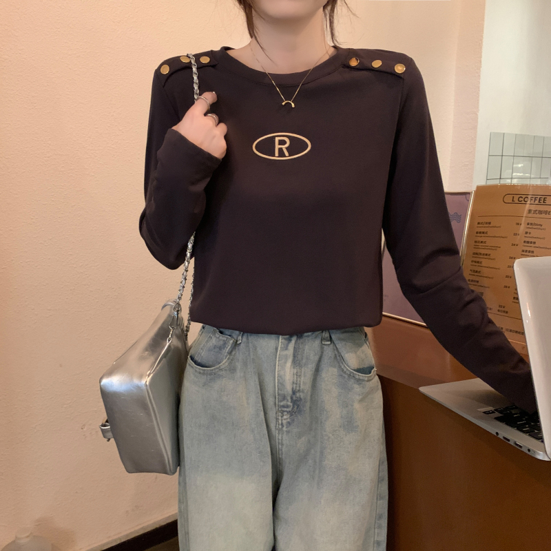 RM29984#加绒重工字母刺绣修身显瘦打底衫女洋气修身长袖T恤上衣