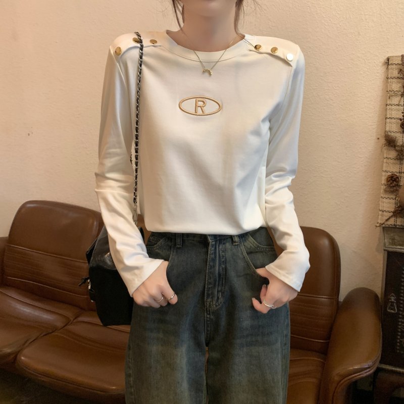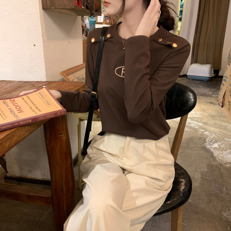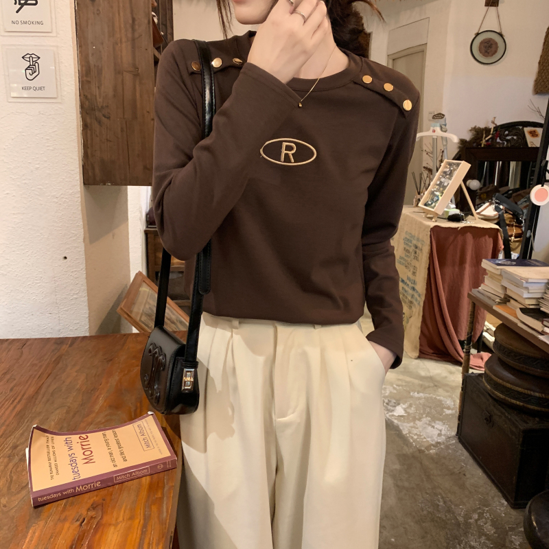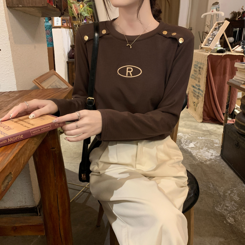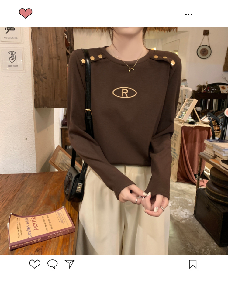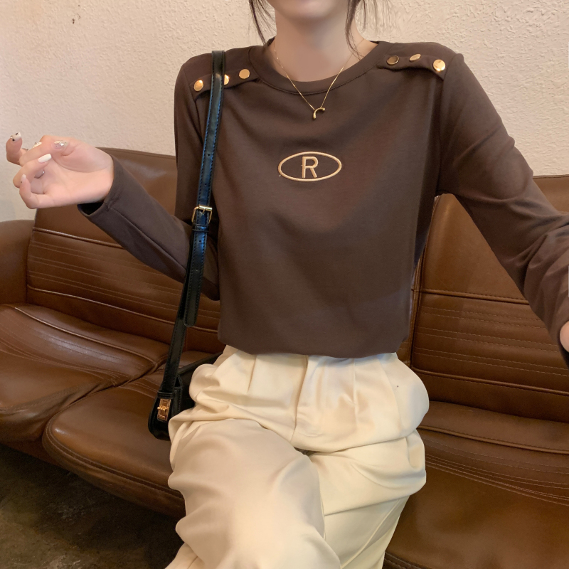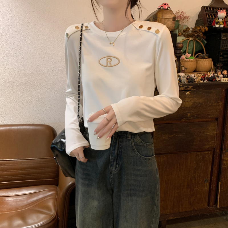 RM29984#加绒重工字母刺绣修身显瘦打底衫女洋气修身长袖T恤上衣