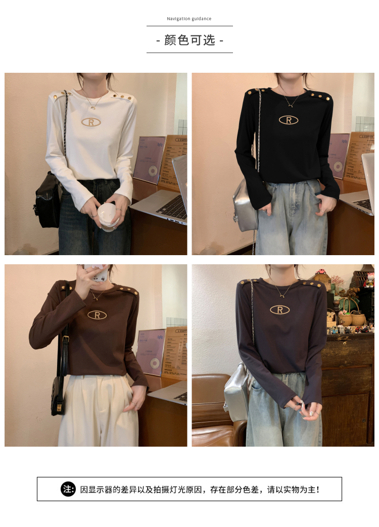 PF28476#德绒时尚圆领修身图案设计感潮流百搭内搭打底衫T恤长袖女裝貨...
