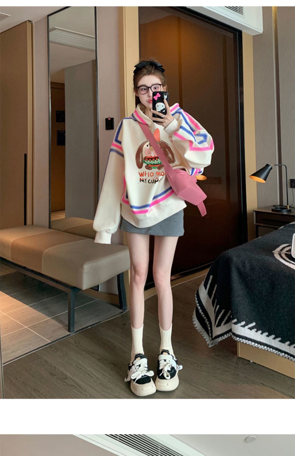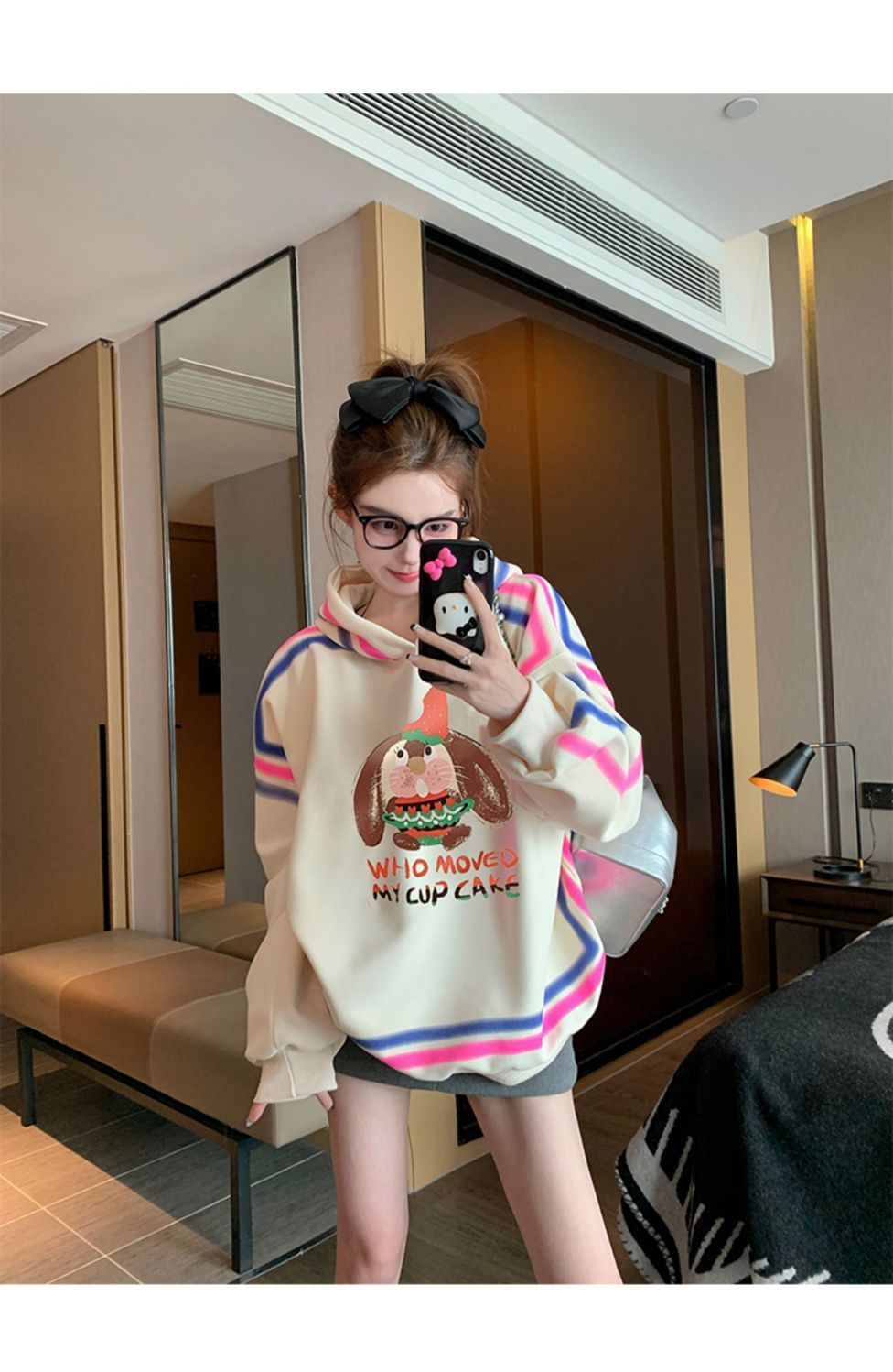 RM30014#加绒设计感小众连帽卫衣女休闲百搭oversize慵懒风套头上衣潮