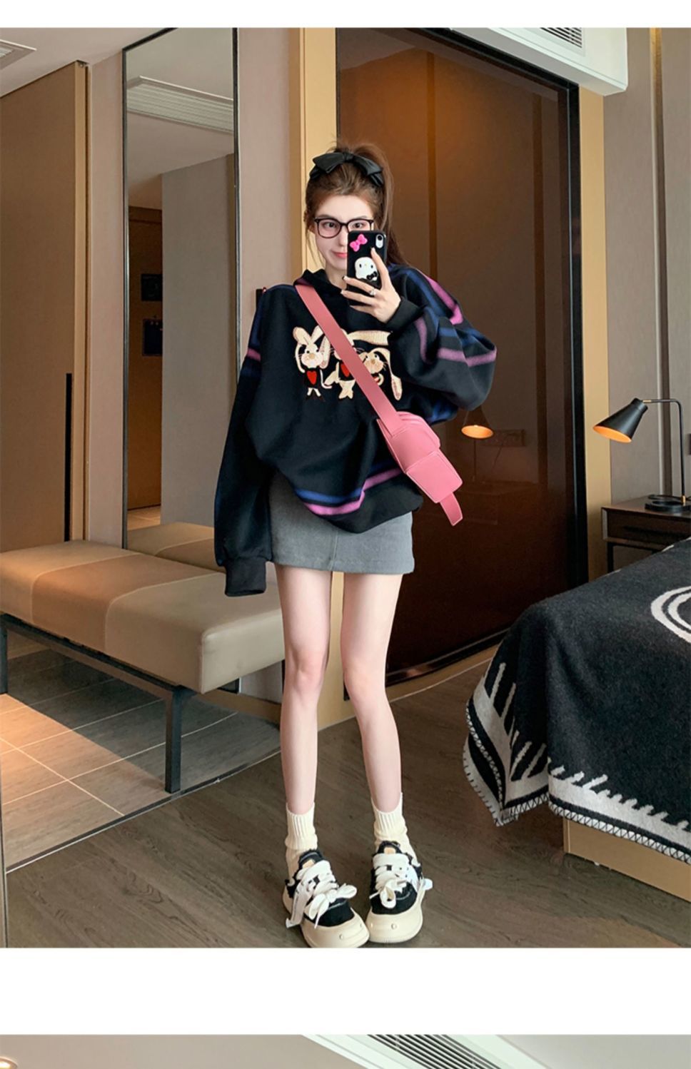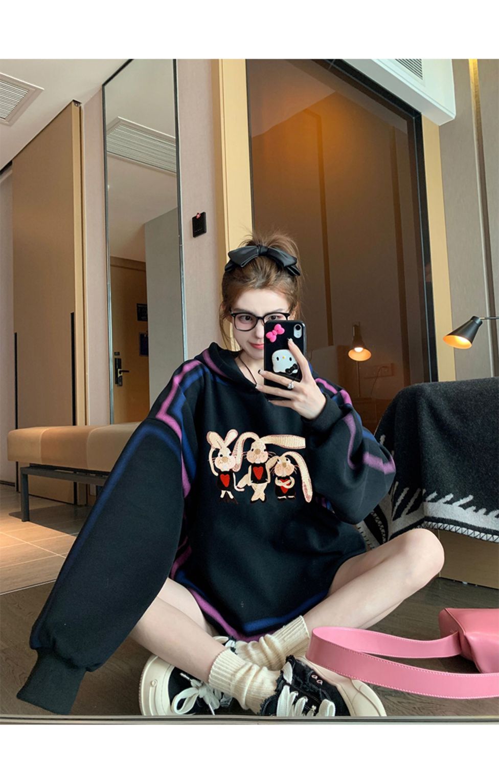 RM30015#黑色印花连帽卫衣女秋冬加绒加厚小众复古高级感超好看套头上衣潮