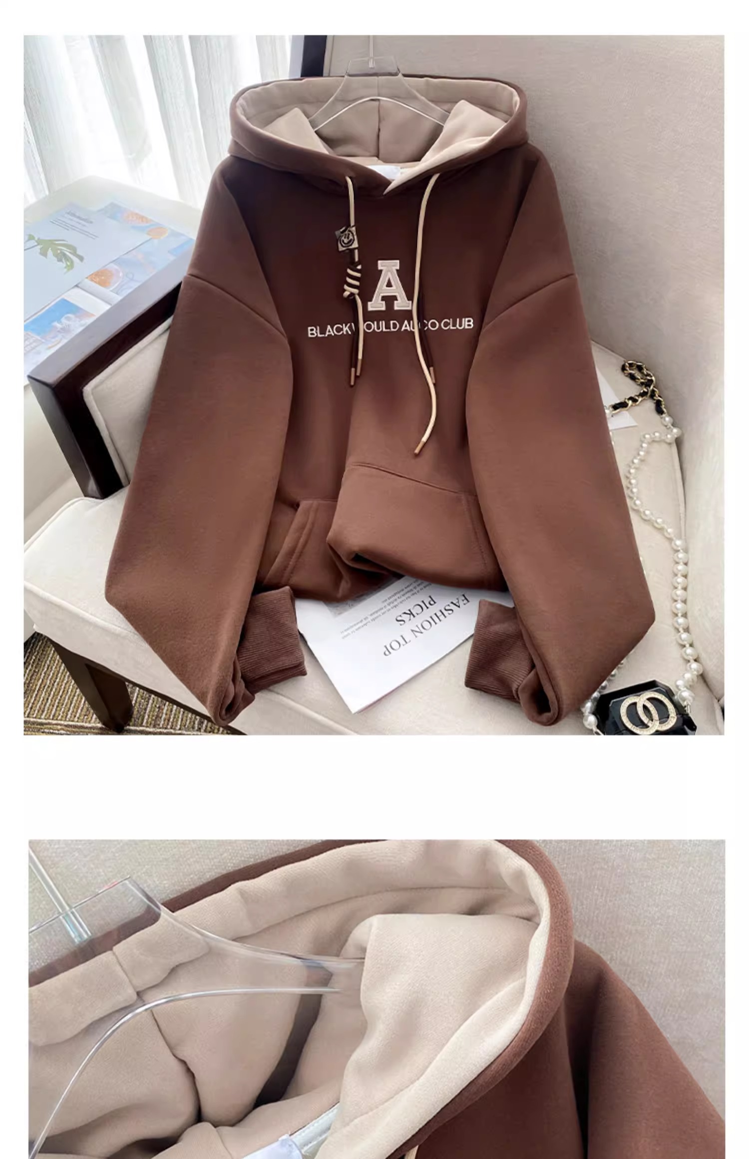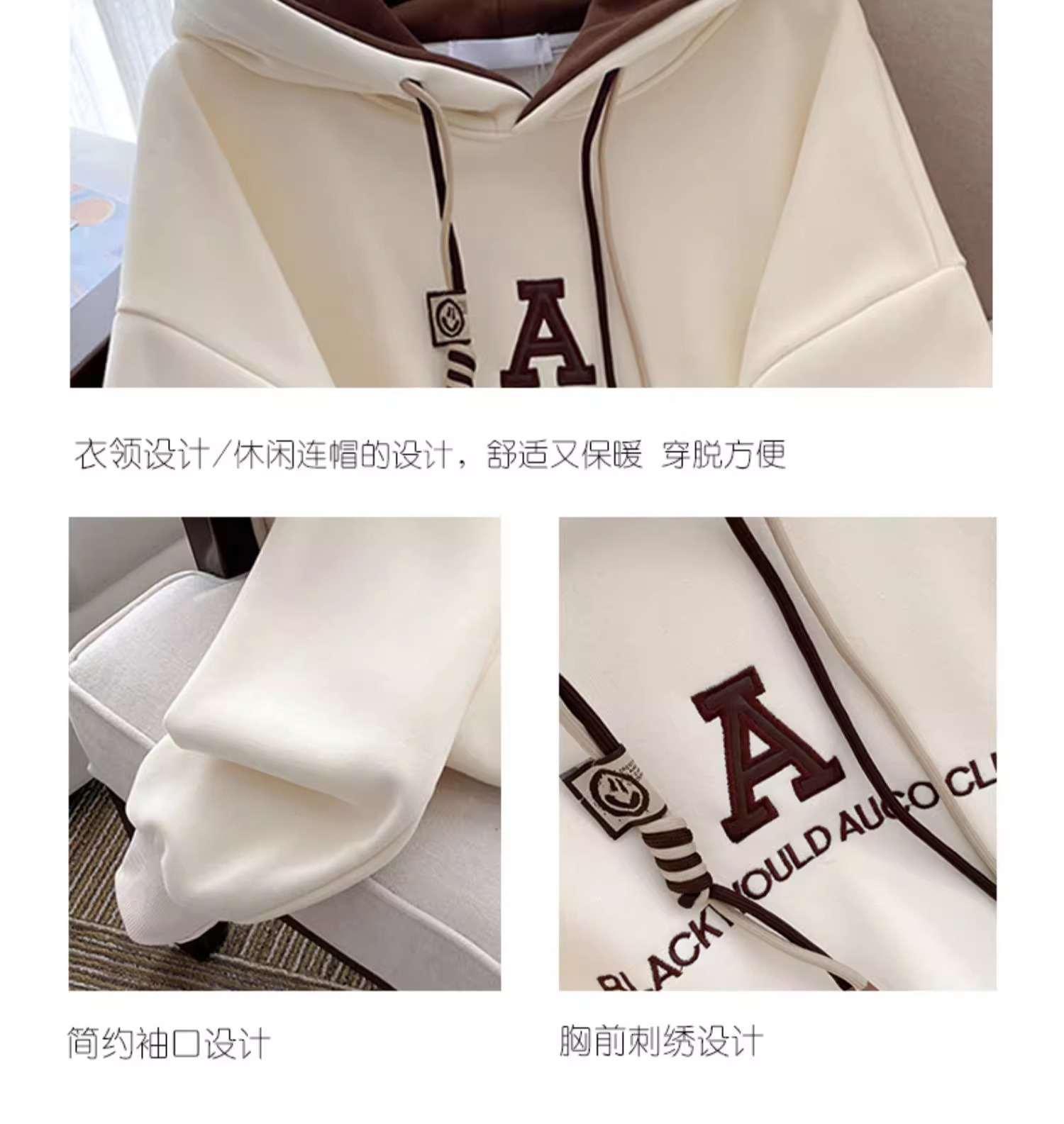 RM30019#韩系风格穿搭卫衣女2023后领包边韩系穿搭卫衣女秋冬加绒加厚上衣