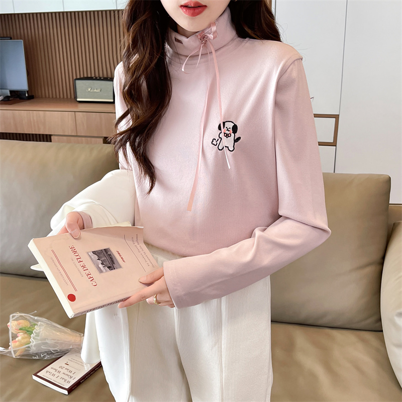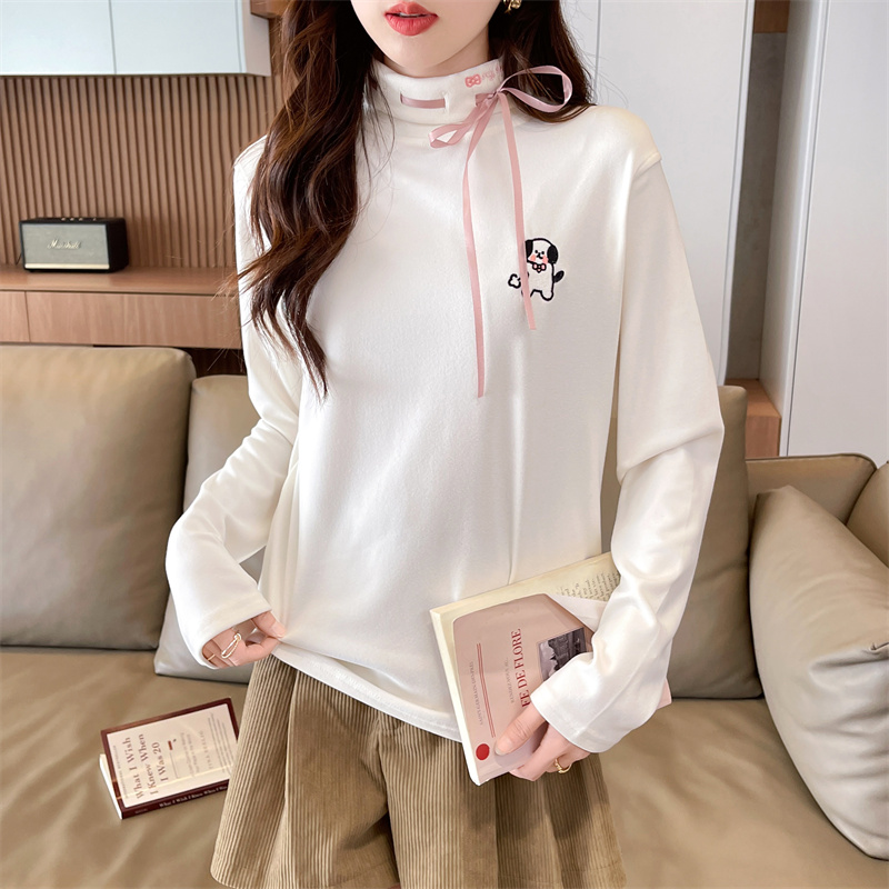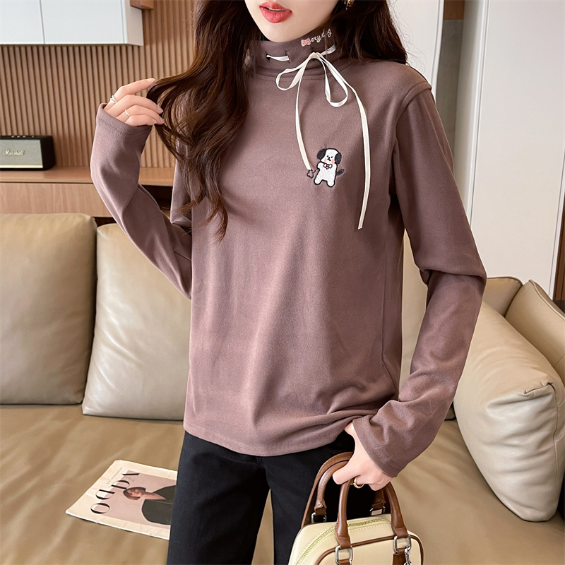 RM30025#纯色德绒加厚次序半高领打底衫T恤女