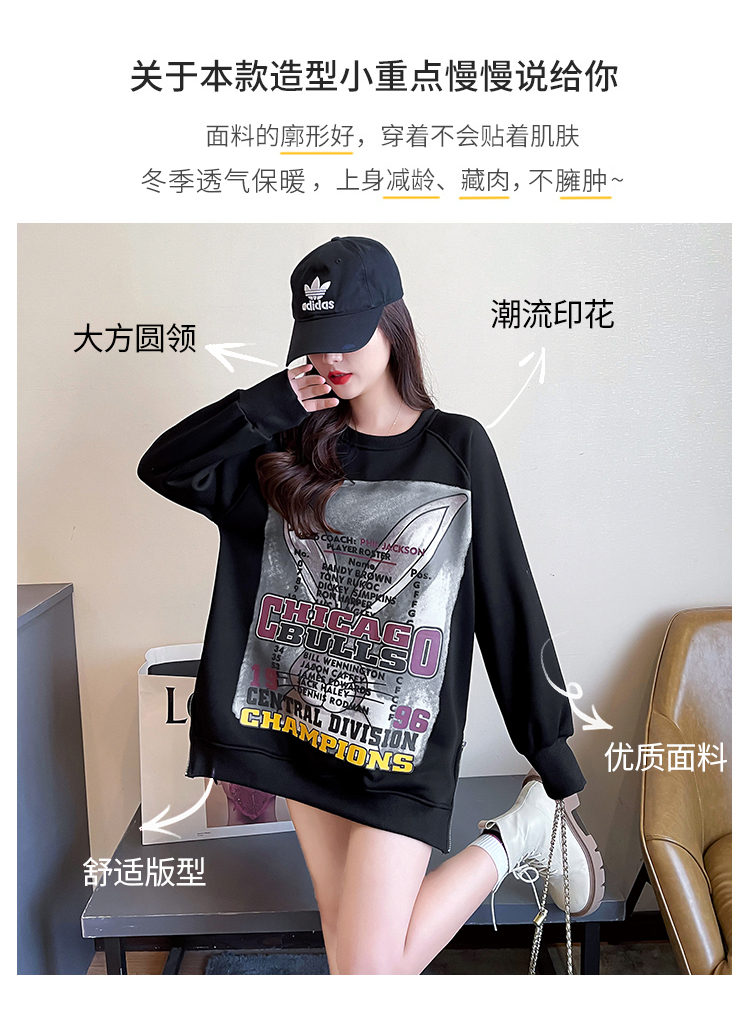 RM30032#华棉复合真超加绒加厚卫衣女秋冬圆领保暖上衣大码女装200斤