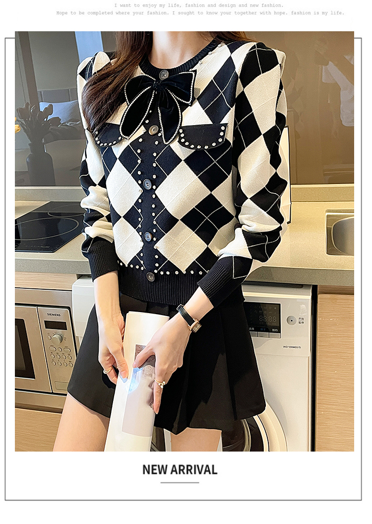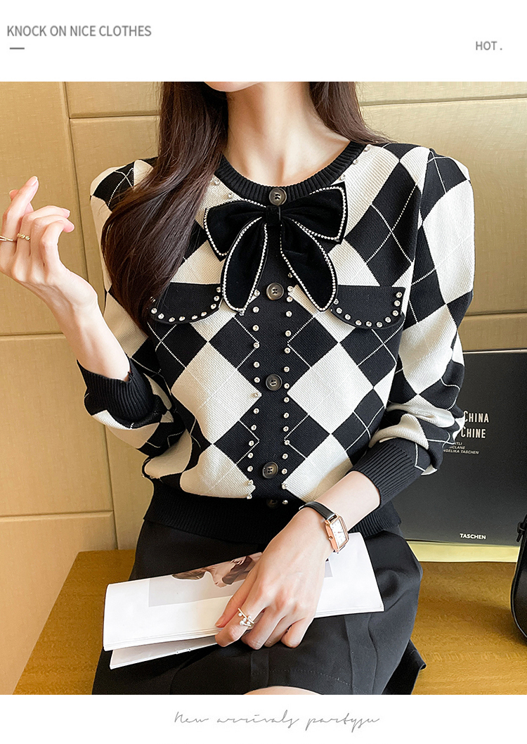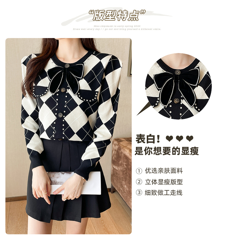 RM30071#新款韩版圆领蝴蝶结加厚毛衣气质小众设计感重工针织上衣
