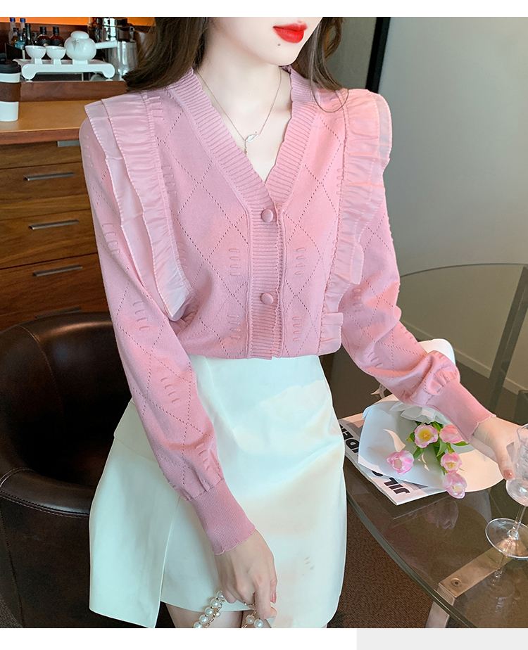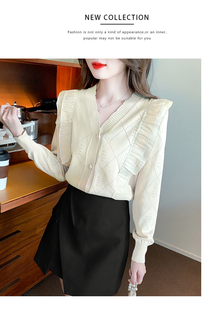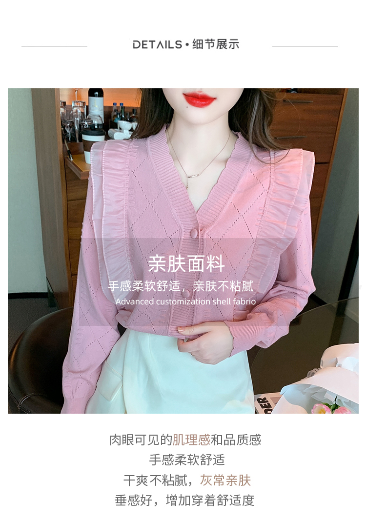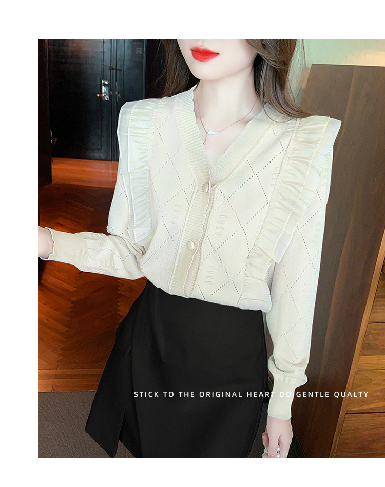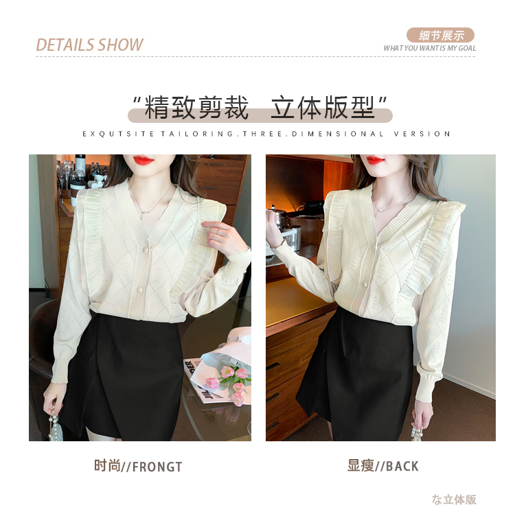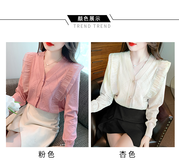 RM30074#新款韩版气质V领针织衫上衣洋气显瘦荷叶边内搭漂亮毛衣