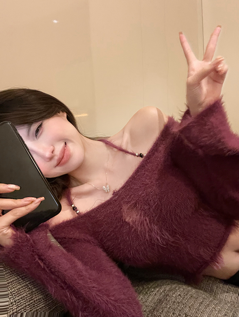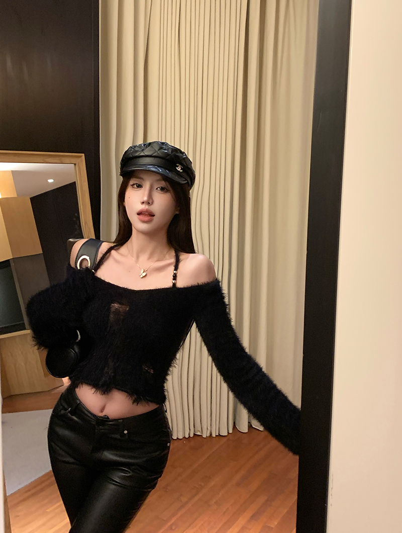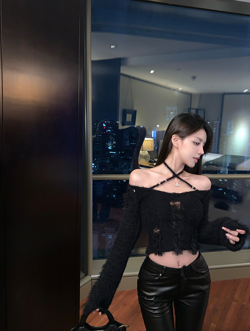 RM30086#性感甜酷辣妹秋冬软糯毛茸茸长袖针织衫