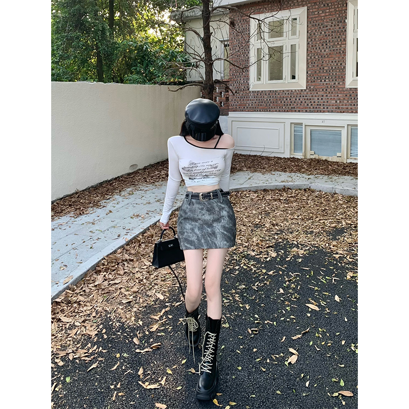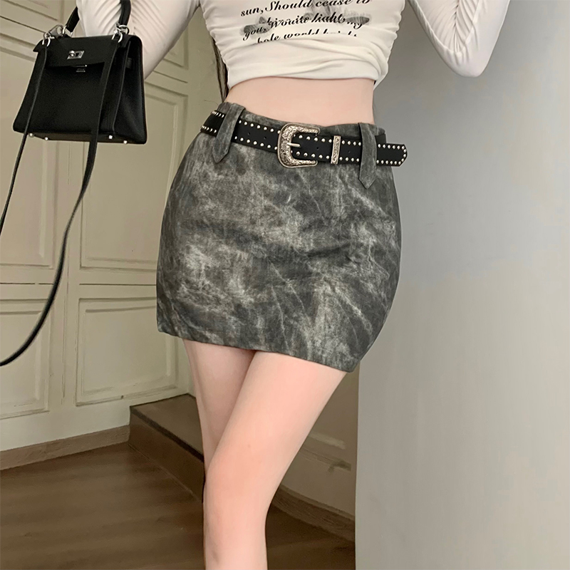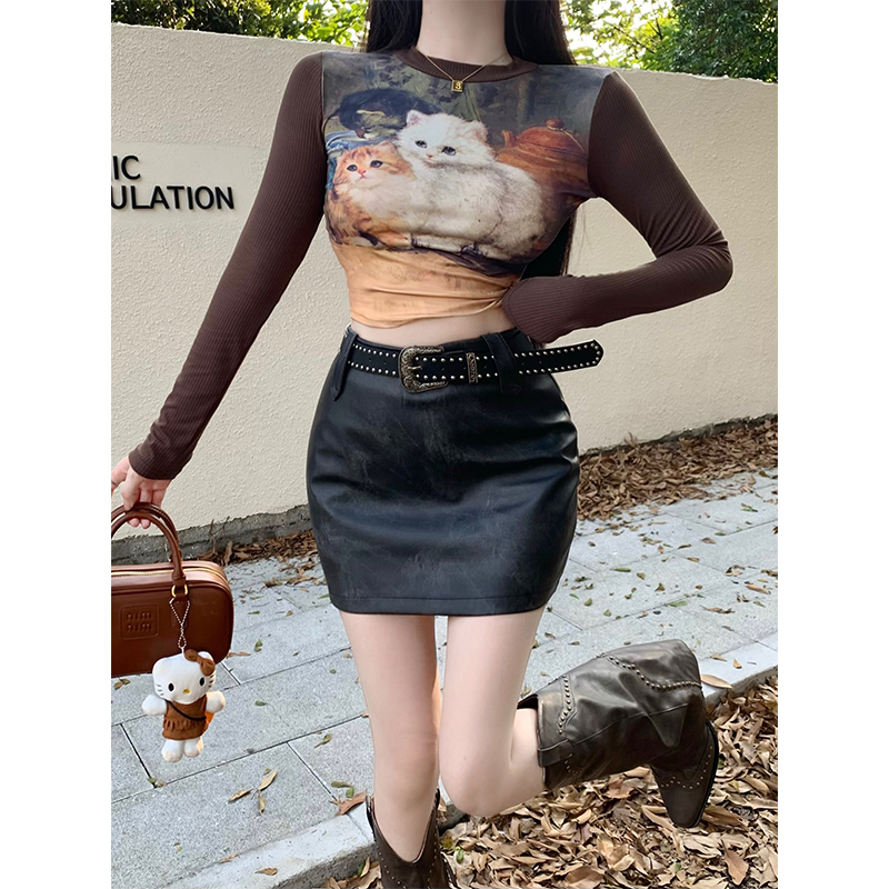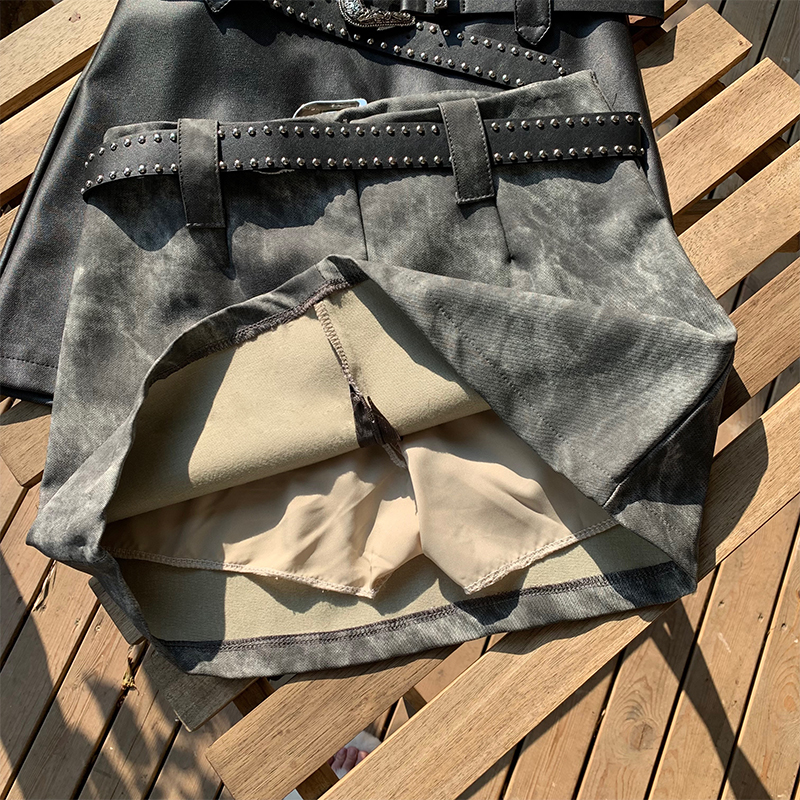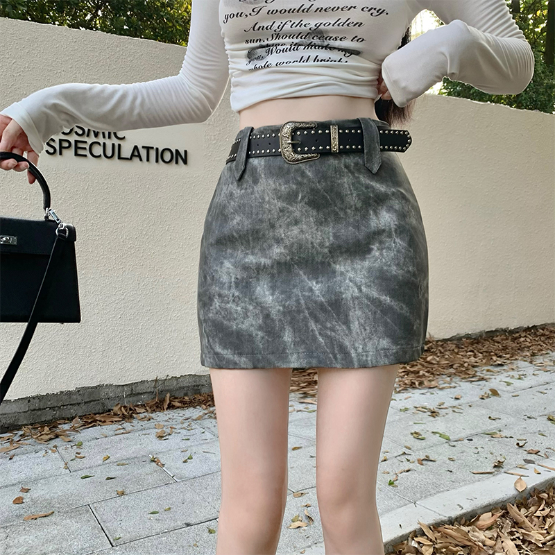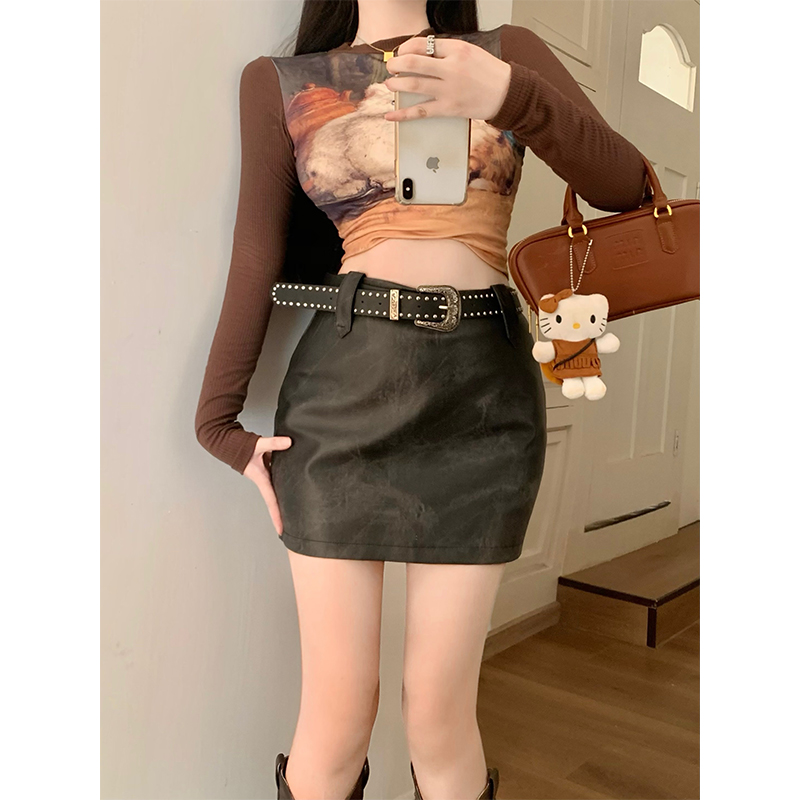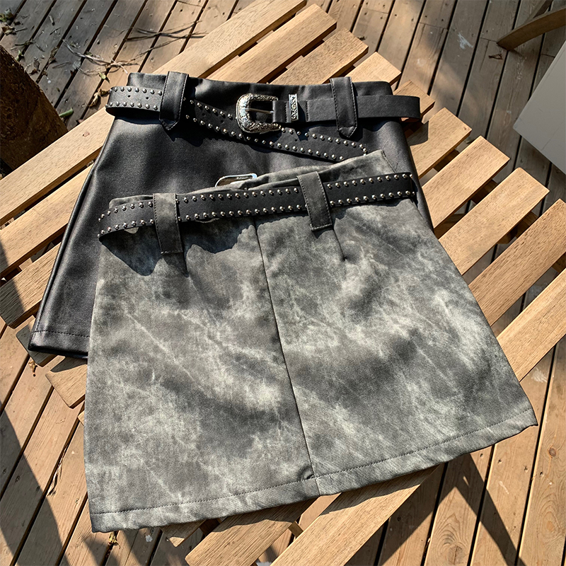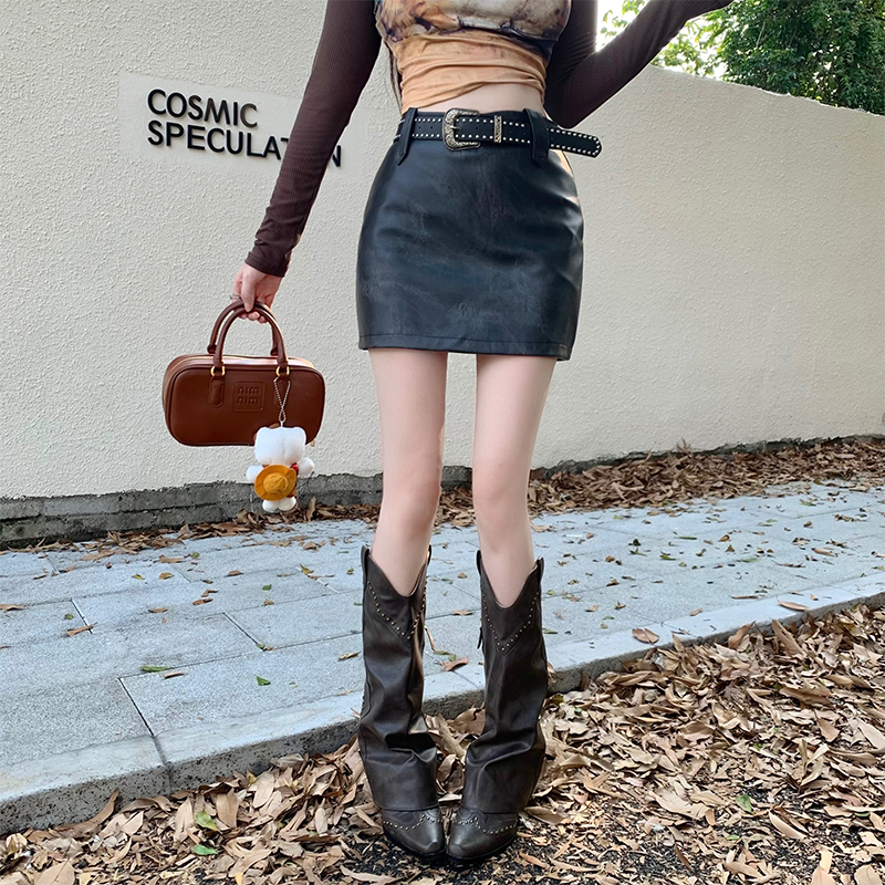 RM30090#辣妹复古pu皮裙半身裙女高腰显瘦A字包臀裙短裙