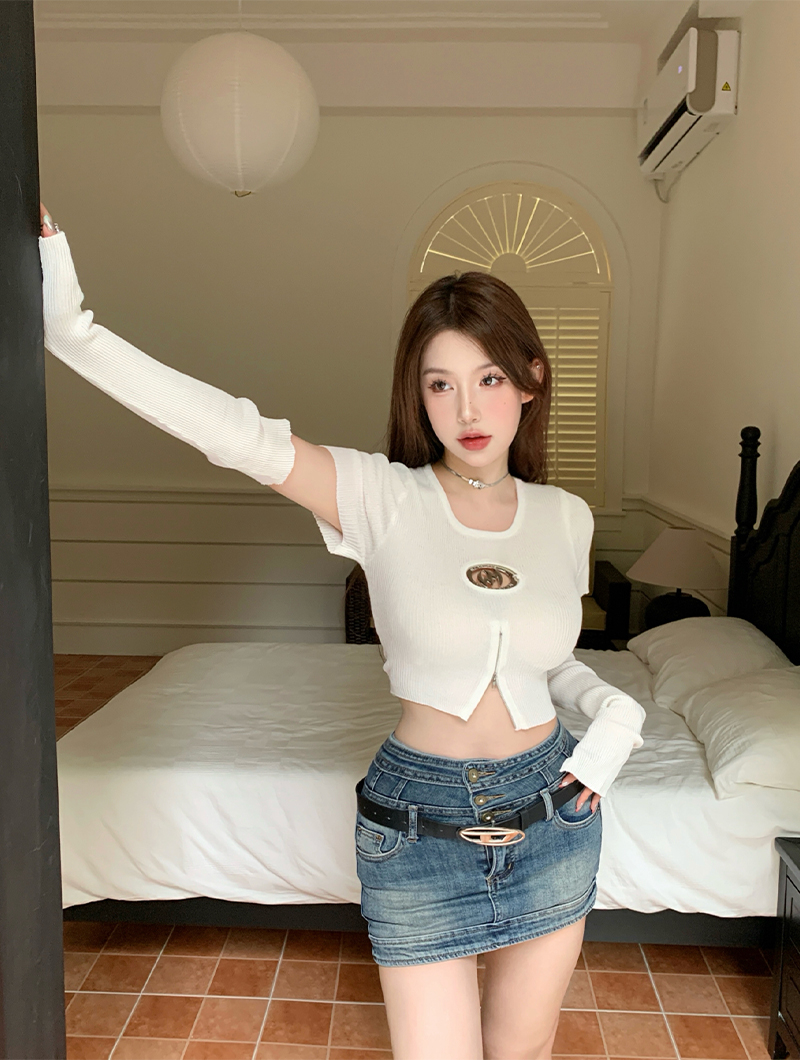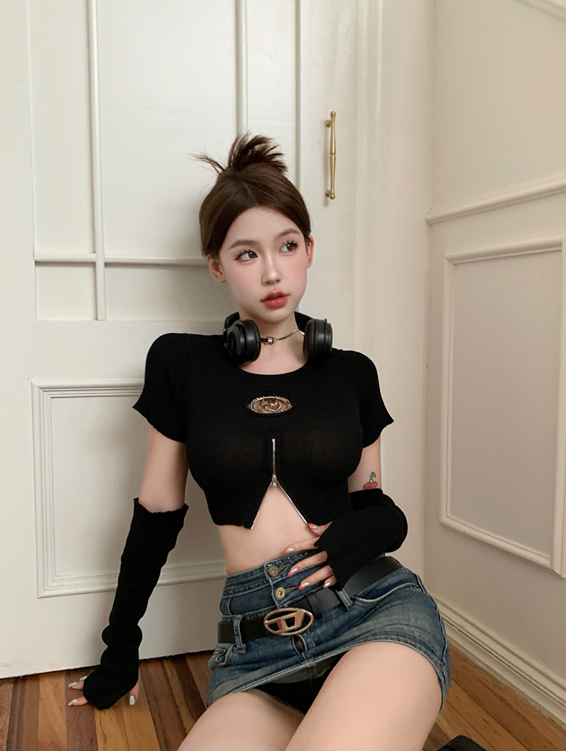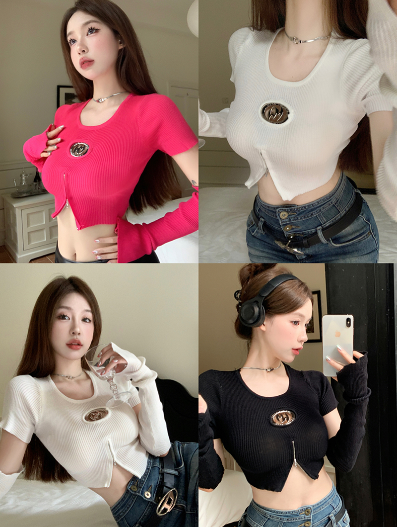 RM30093#拉链款美式修身针织衫早秋新款纯欲辣妹修身短款上衣