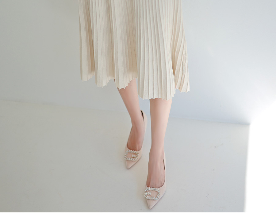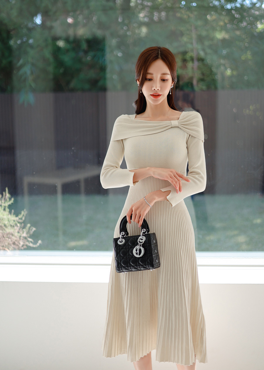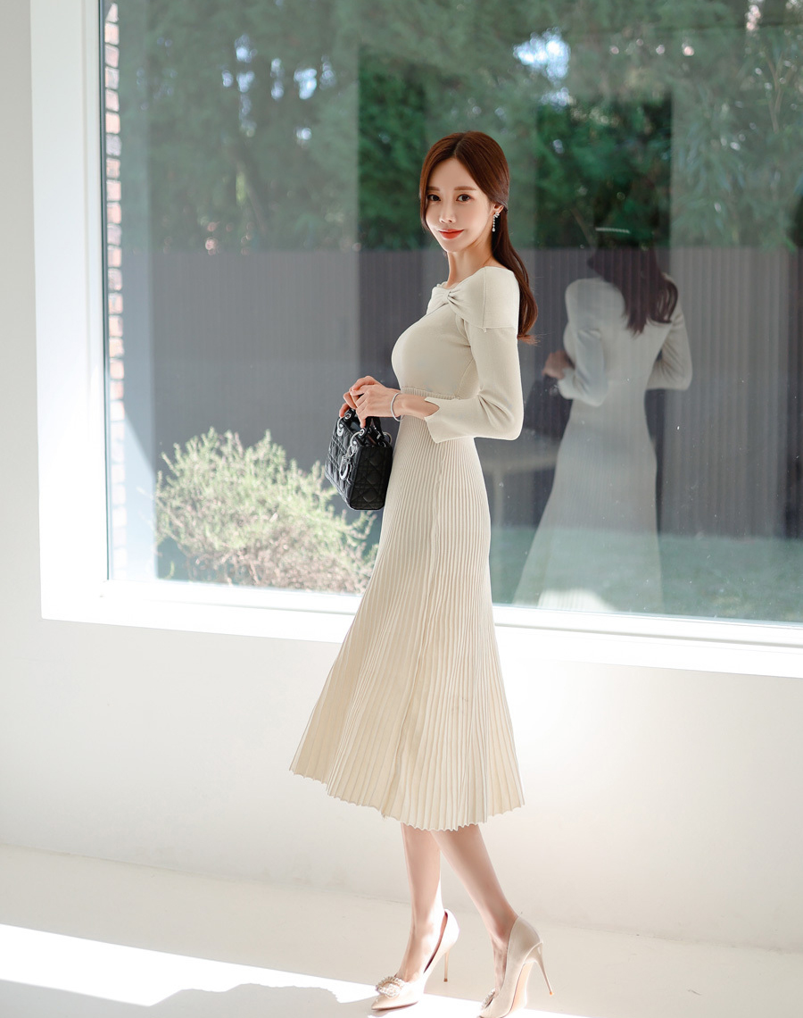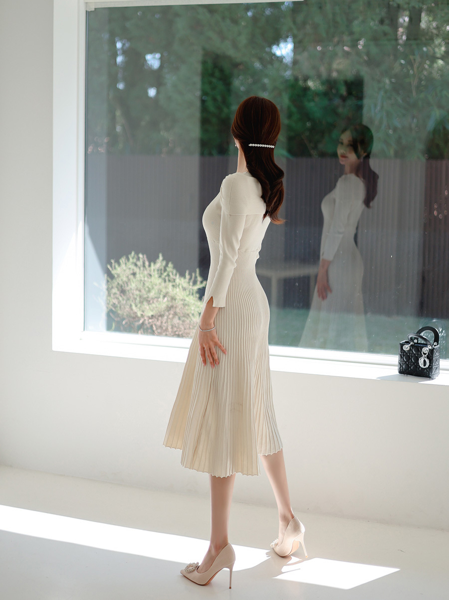 RM30115#新款包芯纱低圆领长袖修身针织连衣裙女荷叶边中裙