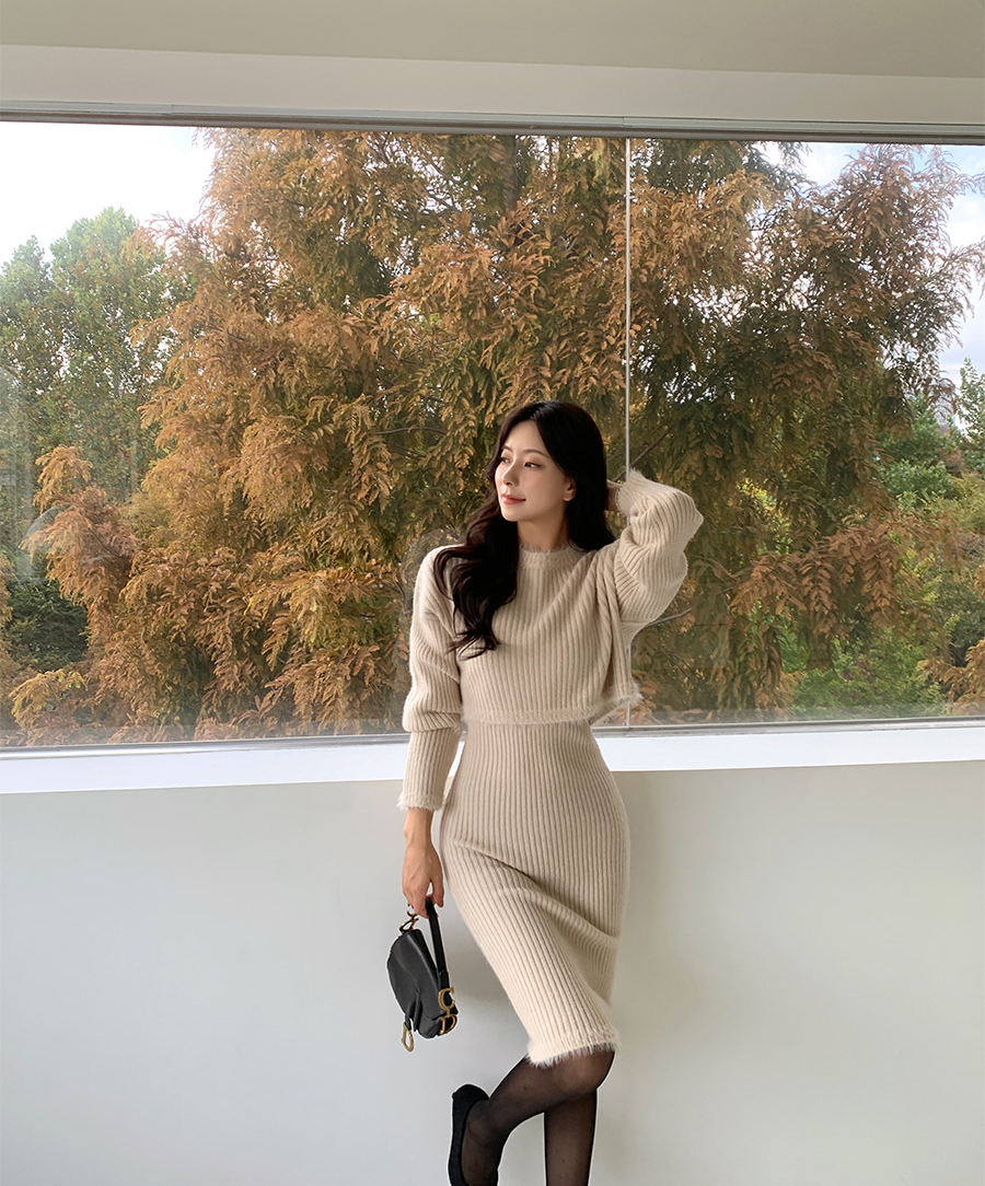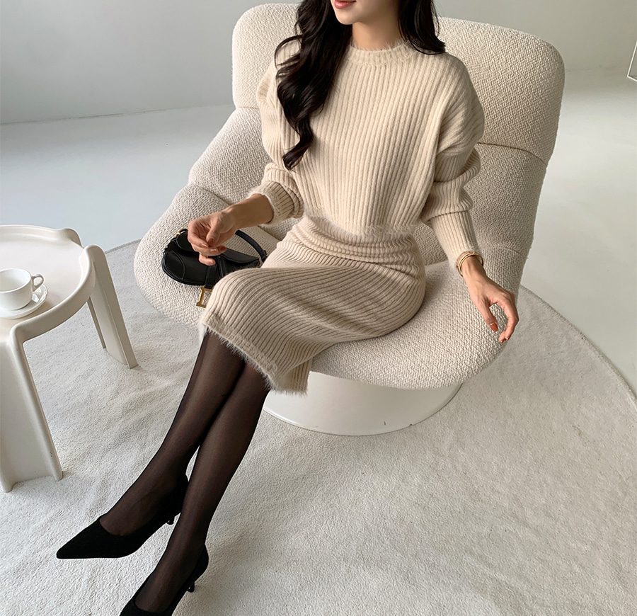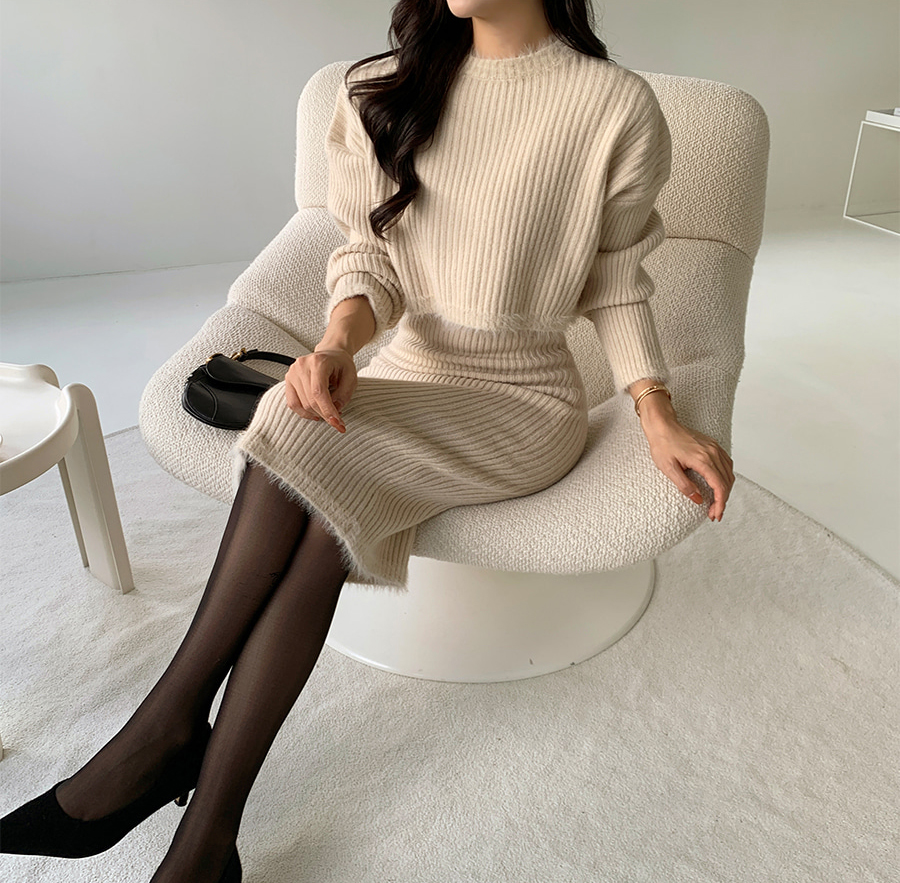 RM30118#新款两件套修身背心针织连衣裙+宽松上衣小衫套装