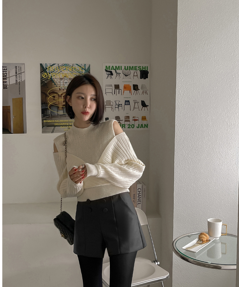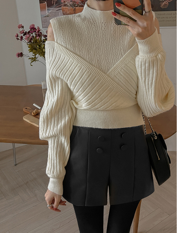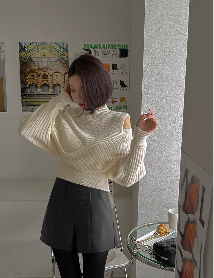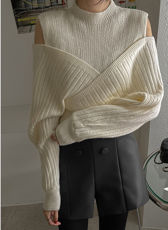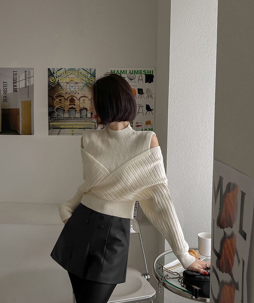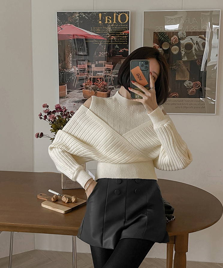 RM30121#好质量包芯纱 韩版秋冬装新款圆领露肩长袖上衣女宽松小衫