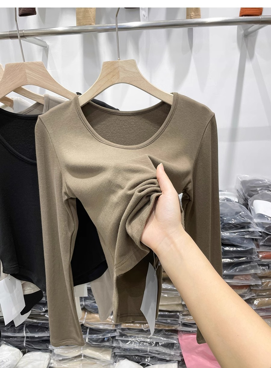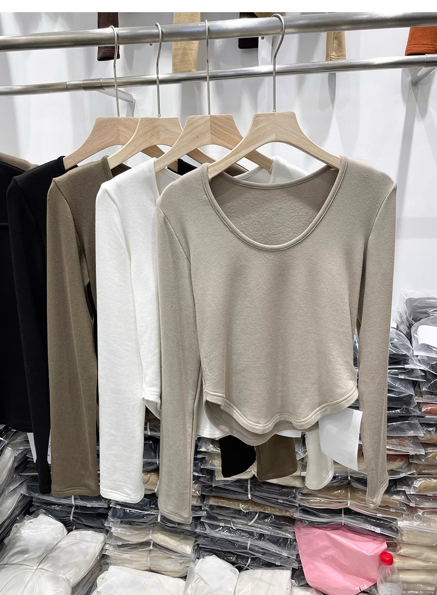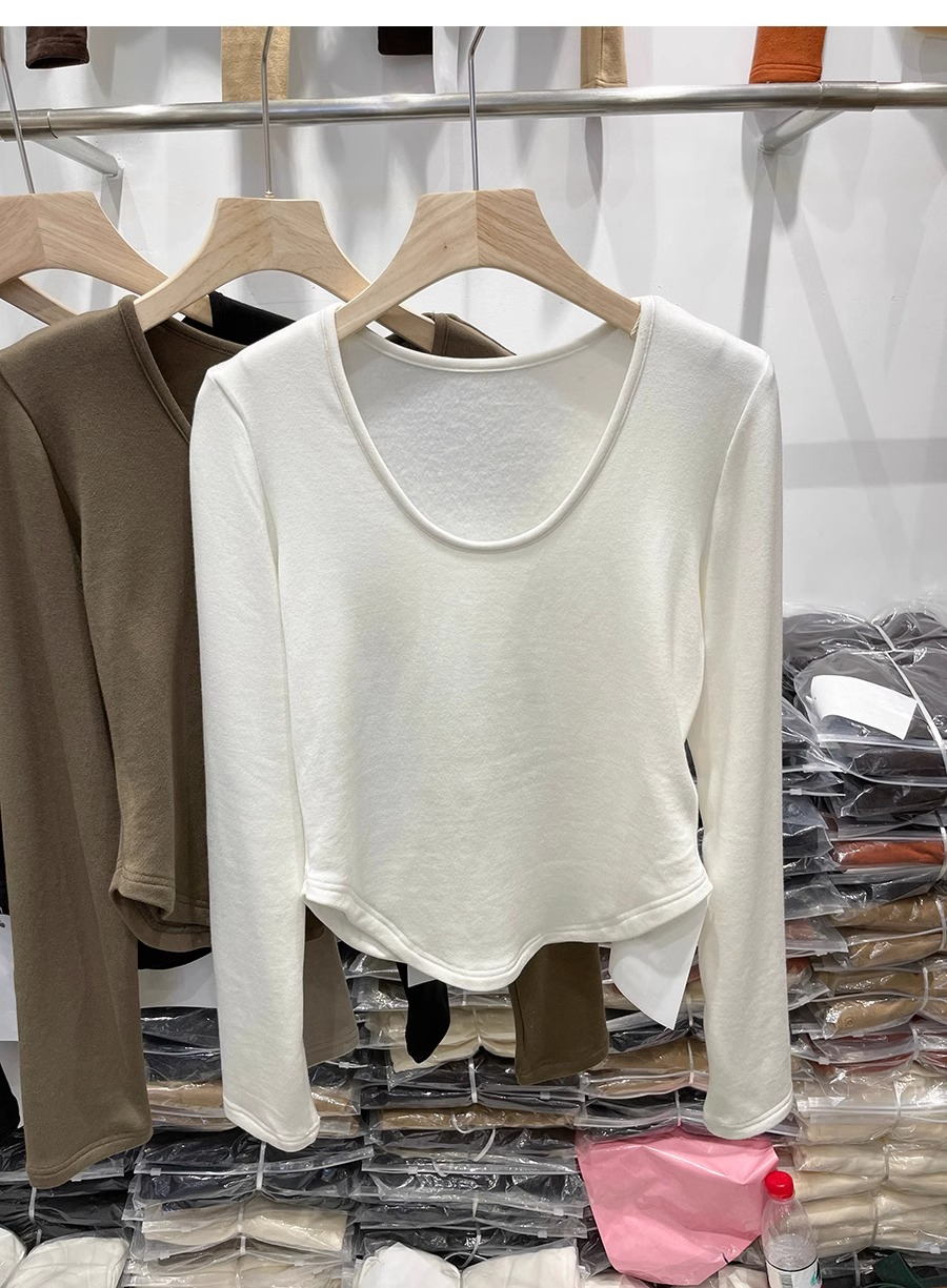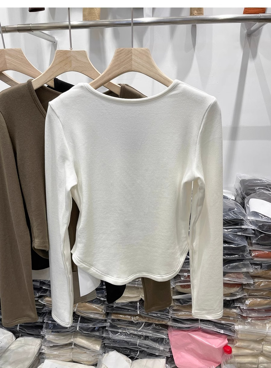 RM30170#德绒磨毛t恤女长袖修身时尚洋气不规则收腰打底衫女内搭上衣秋冬