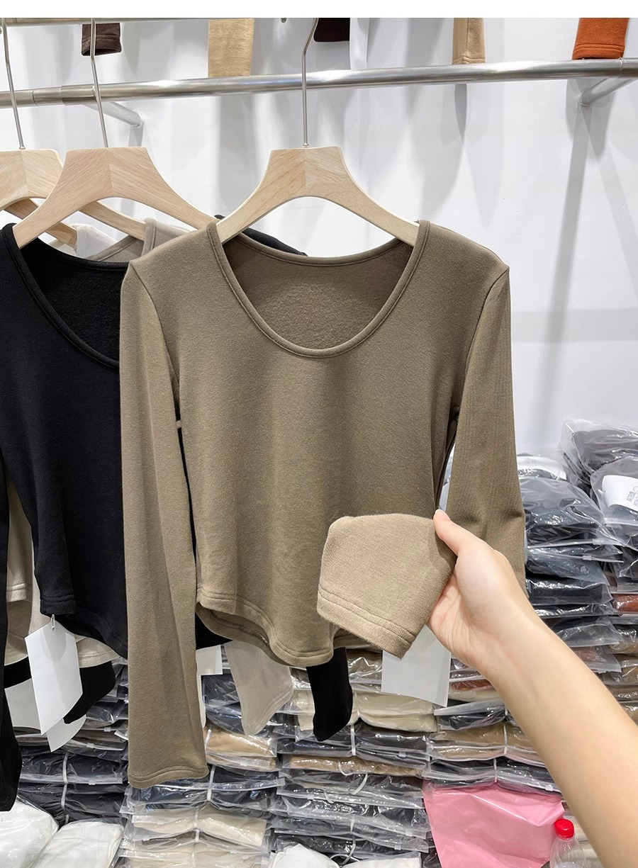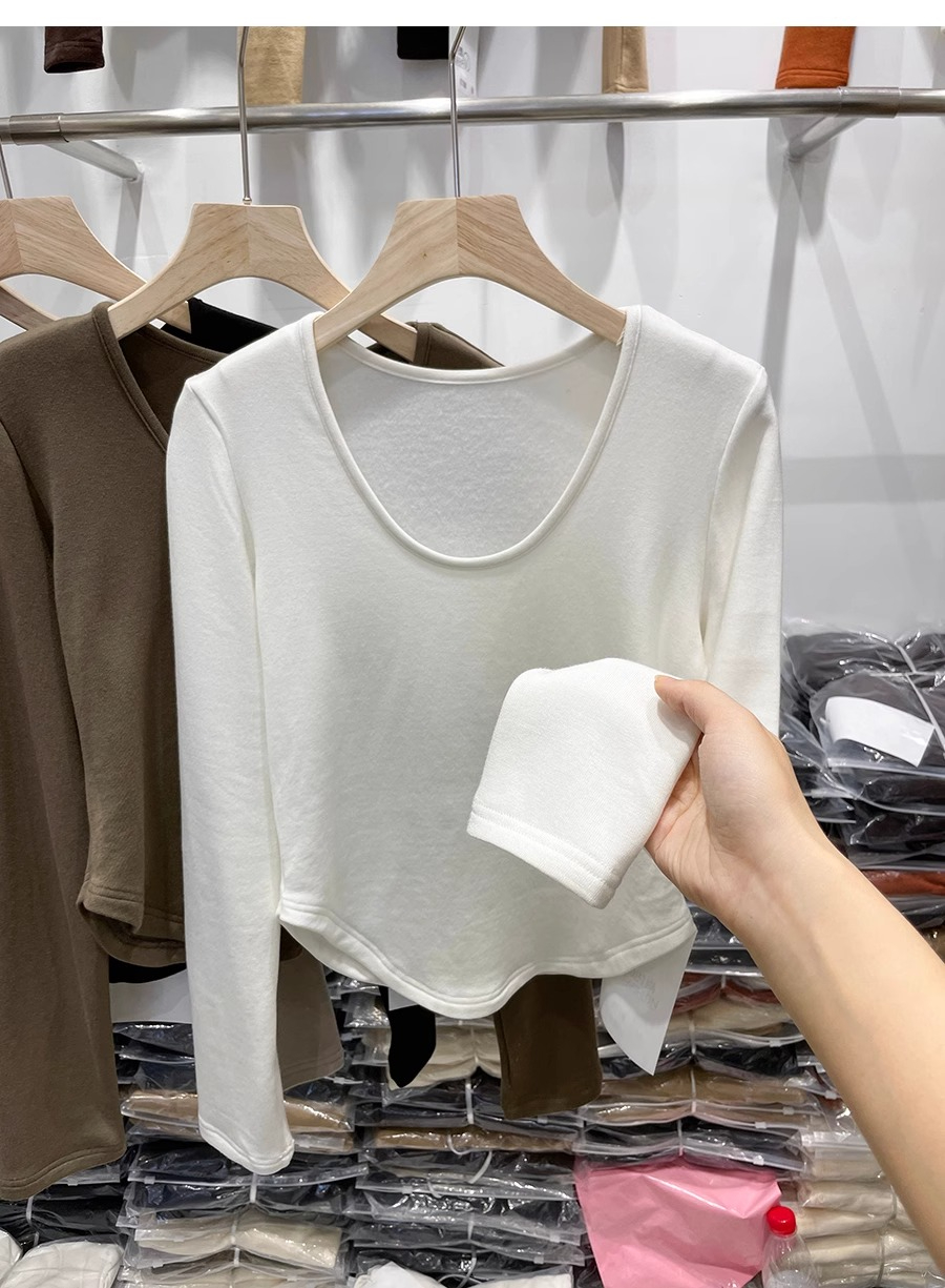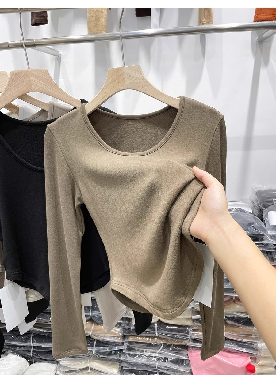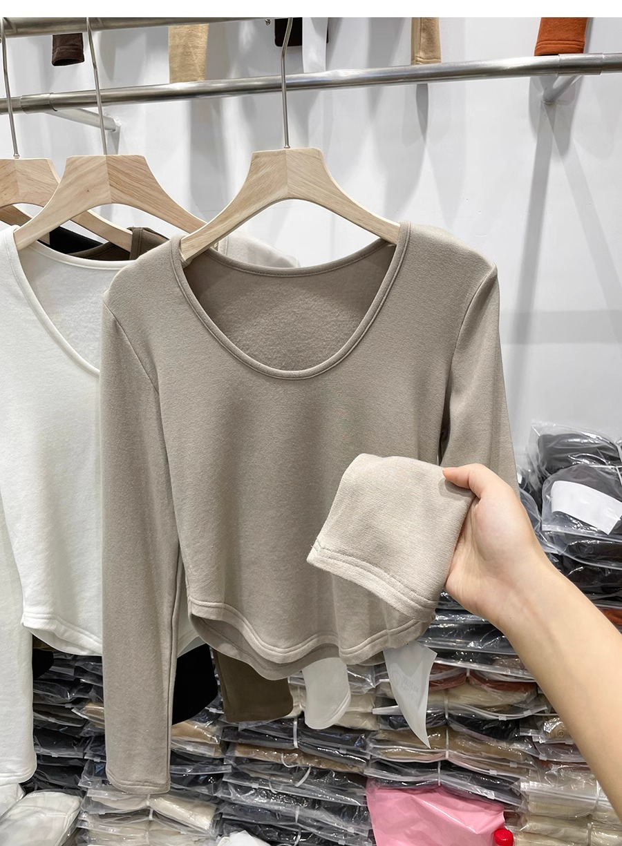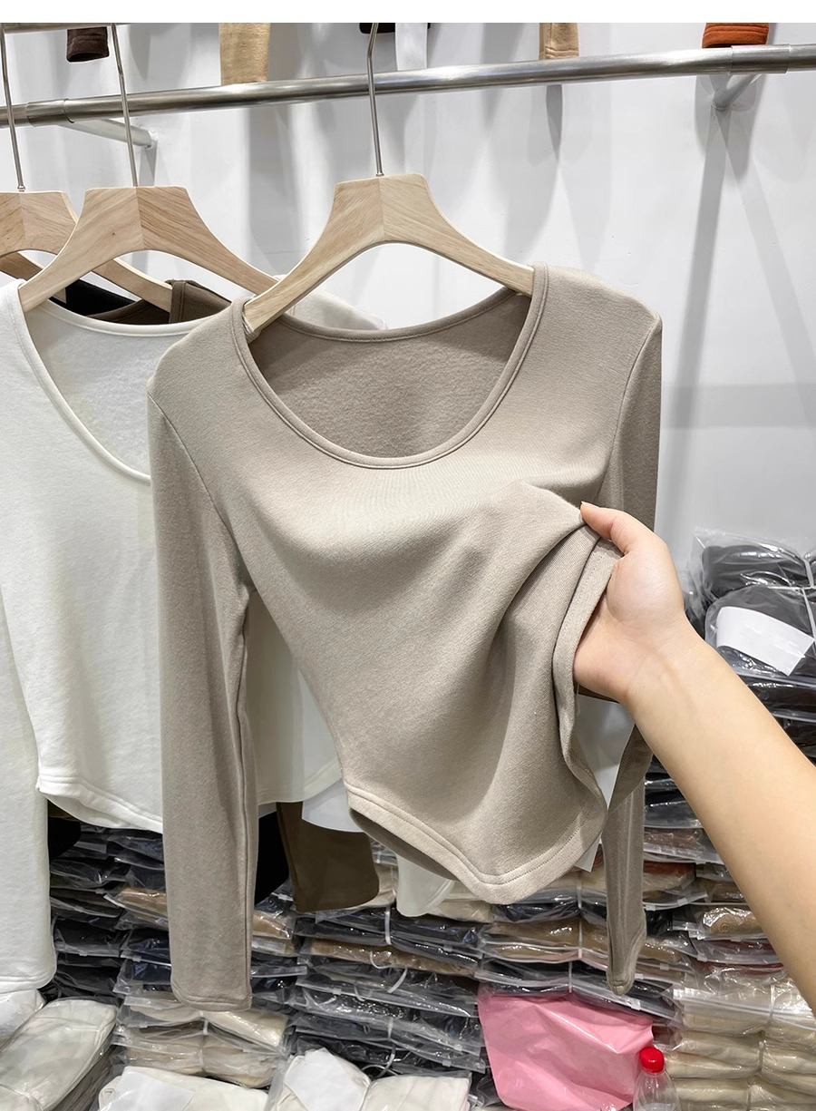 RM30170#德绒磨毛t恤女长袖修身时尚洋气不规则收腰打底衫女内搭上衣秋冬