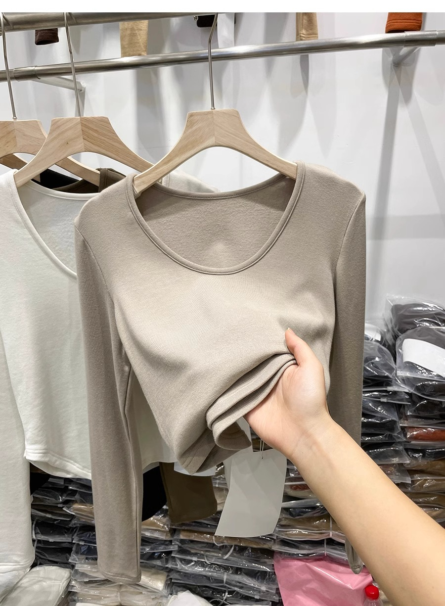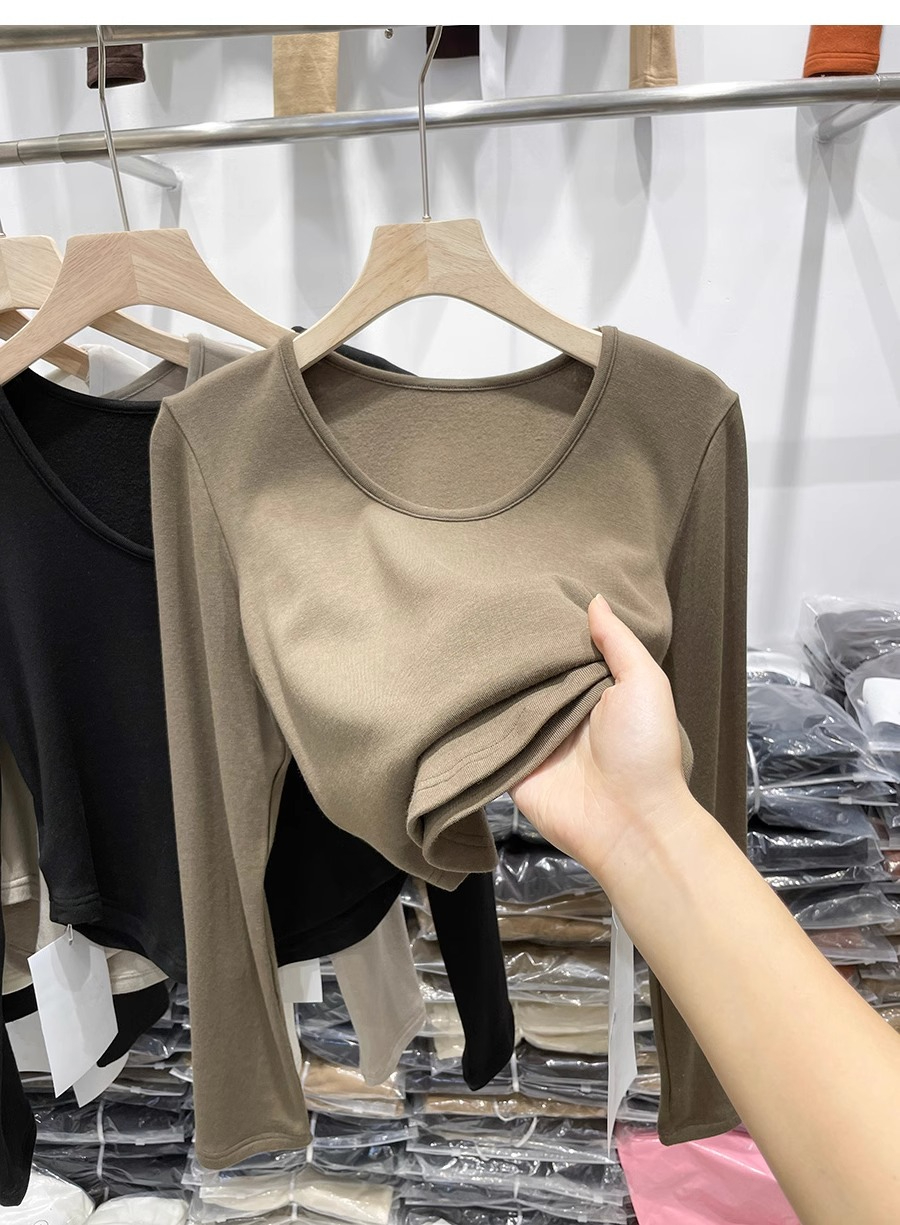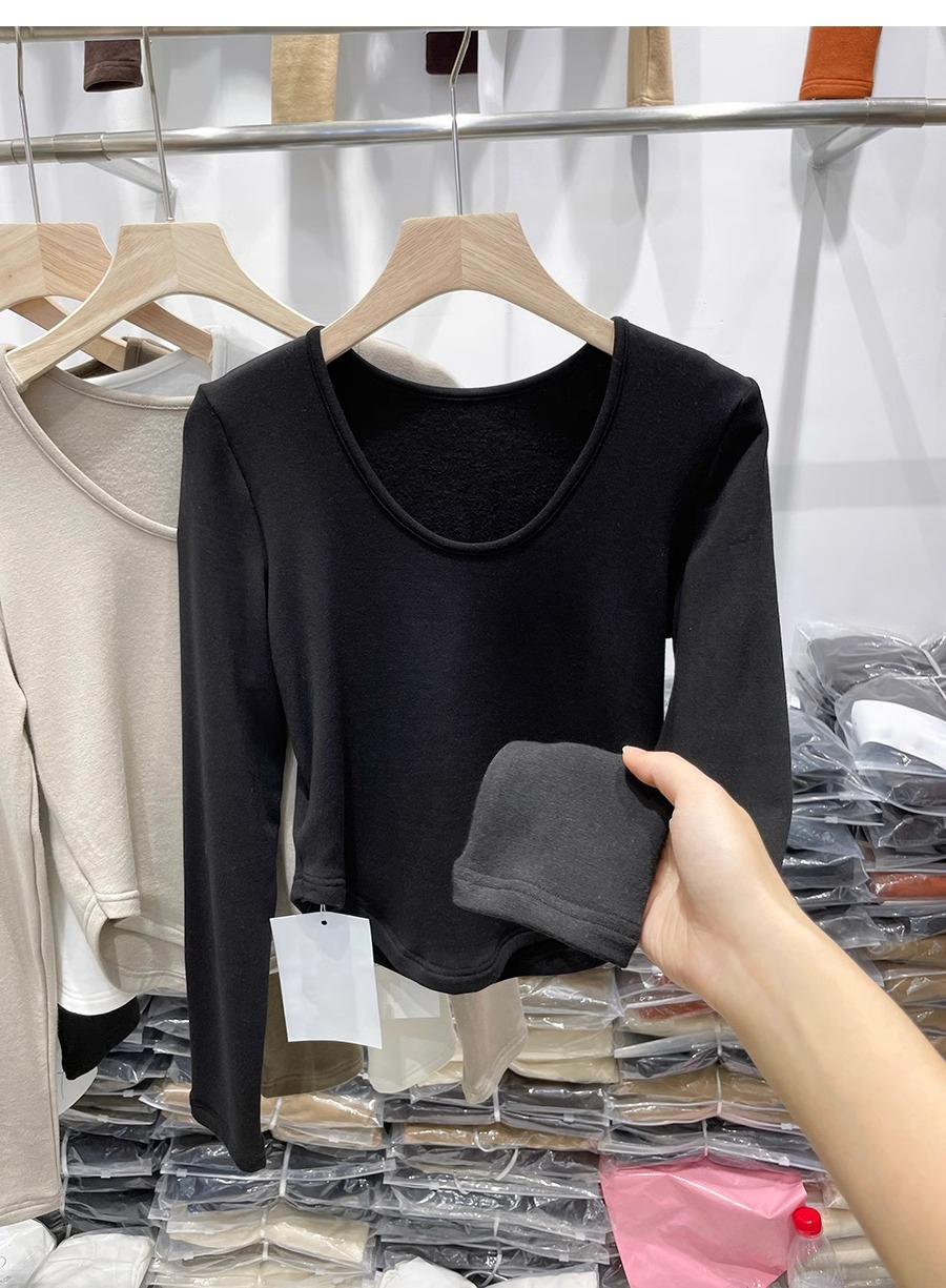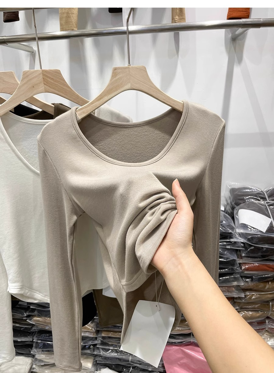 RM30170#德绒磨毛t恤女长袖修身时尚洋气不规则收腰打底衫女内搭上衣秋冬