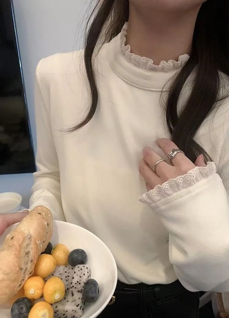 RM30174#半高领双面德绒打底衫女2023秋冬新款纯色内搭简约修身长袖上衣女