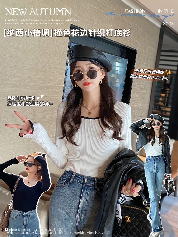 RM30176#打底衫女小香风内搭2023新款秋冬修身针织衫上衣高级感超好看毛衣