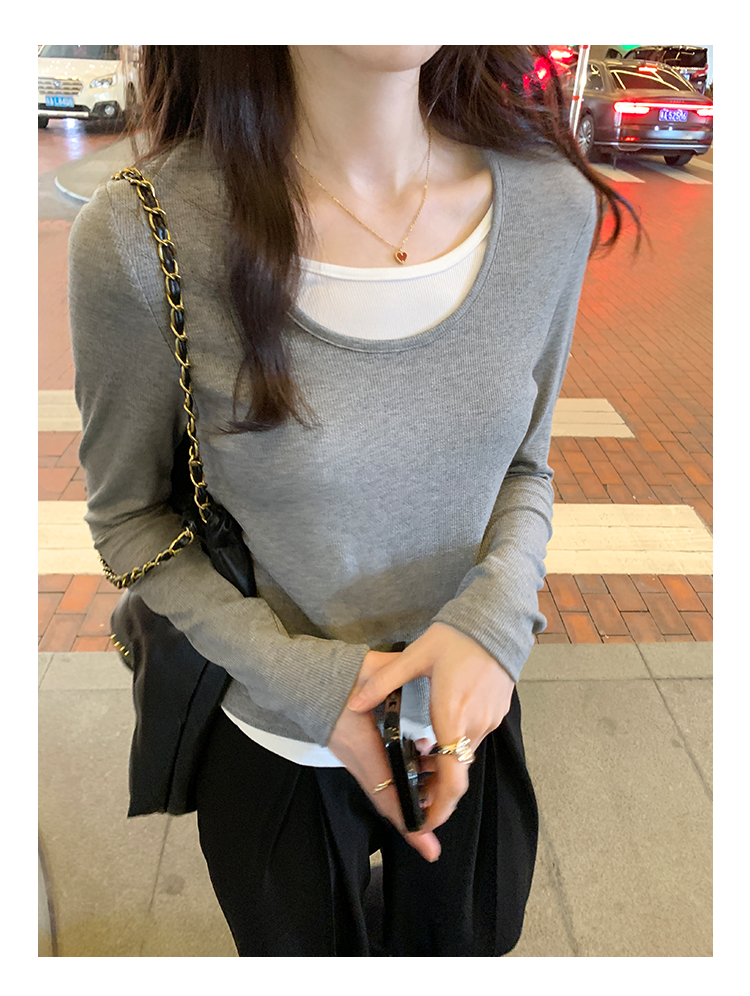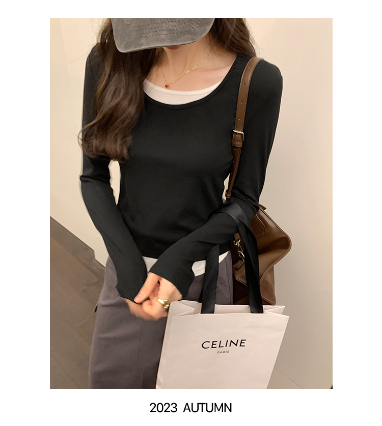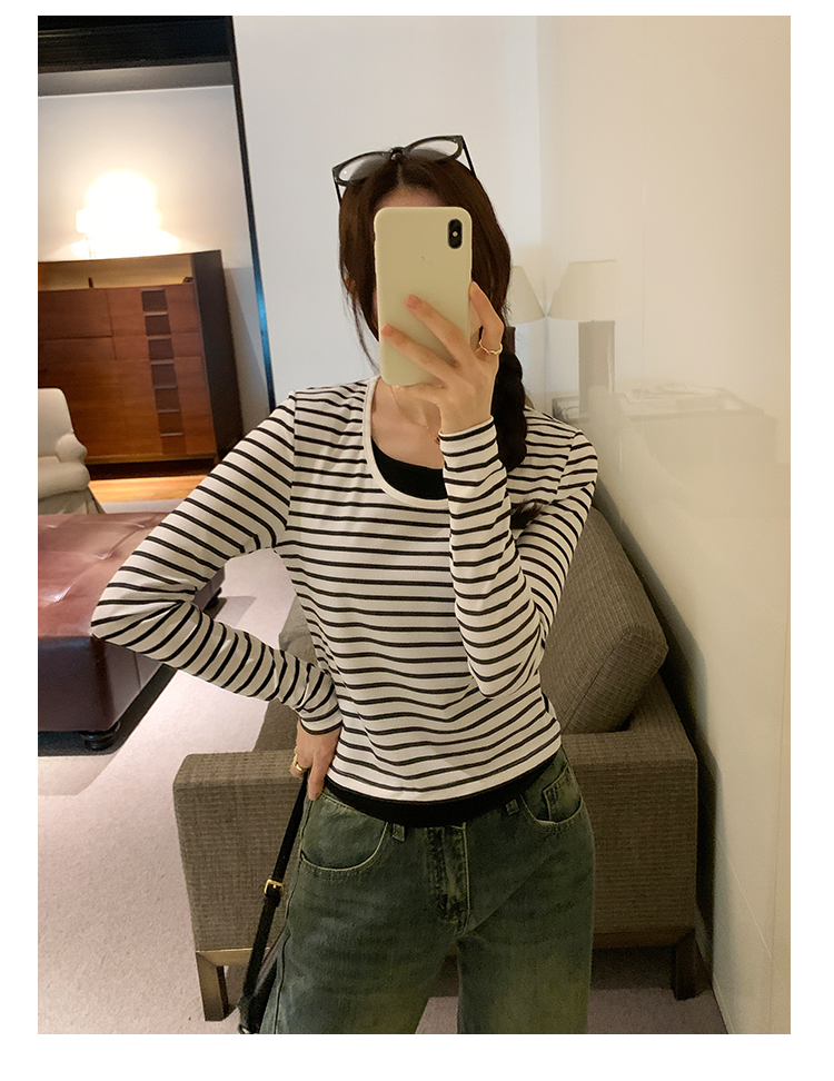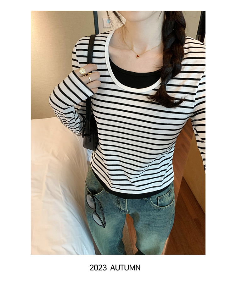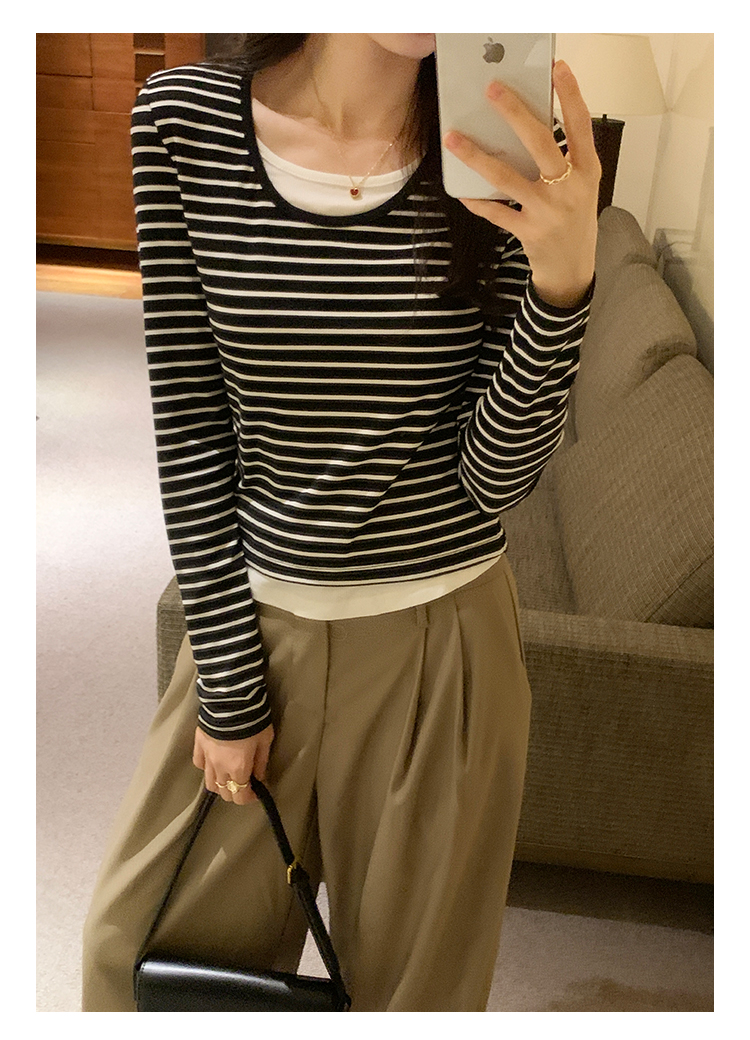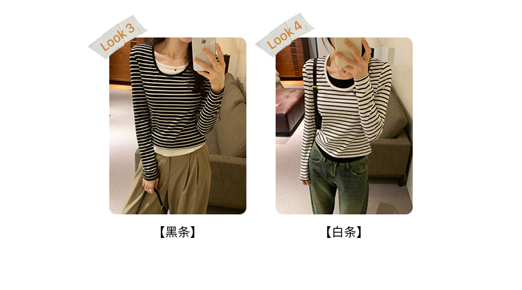 RM30177#打底衫毛衣简约假两件条纹撞色针织衫2023年秋冬新款