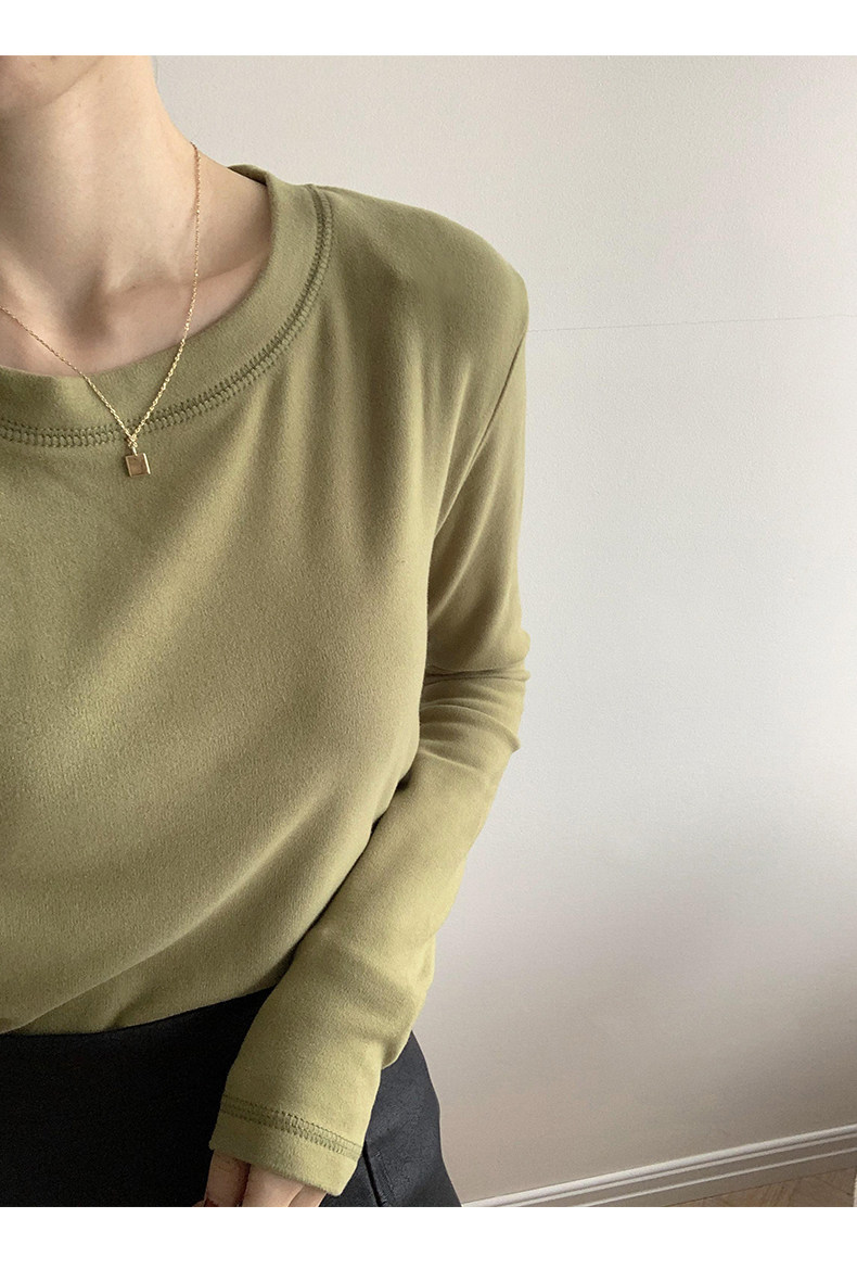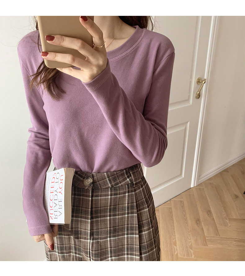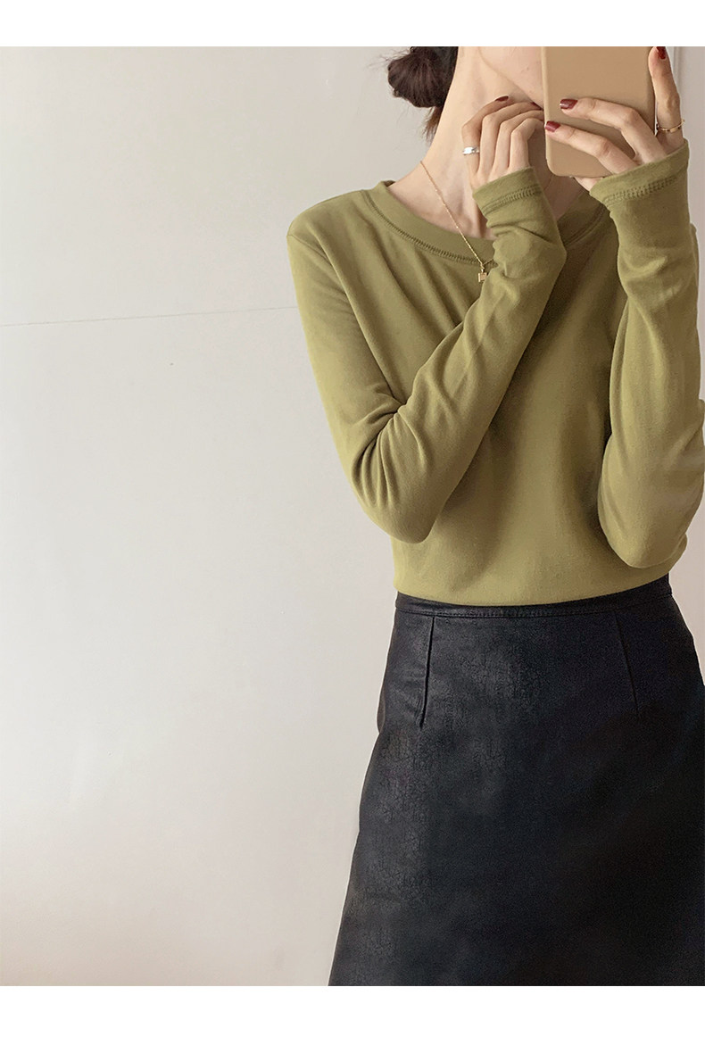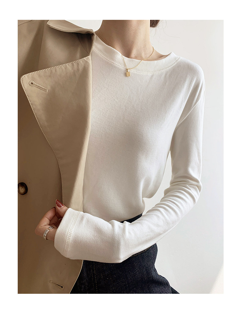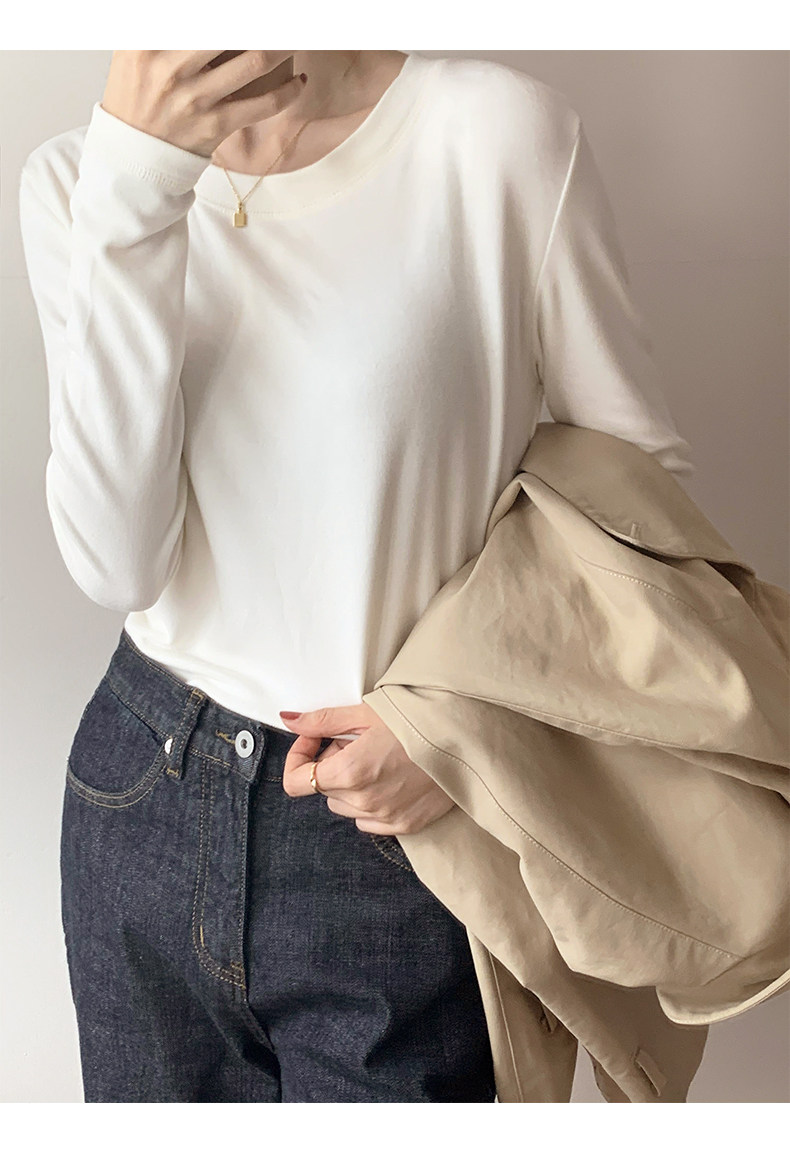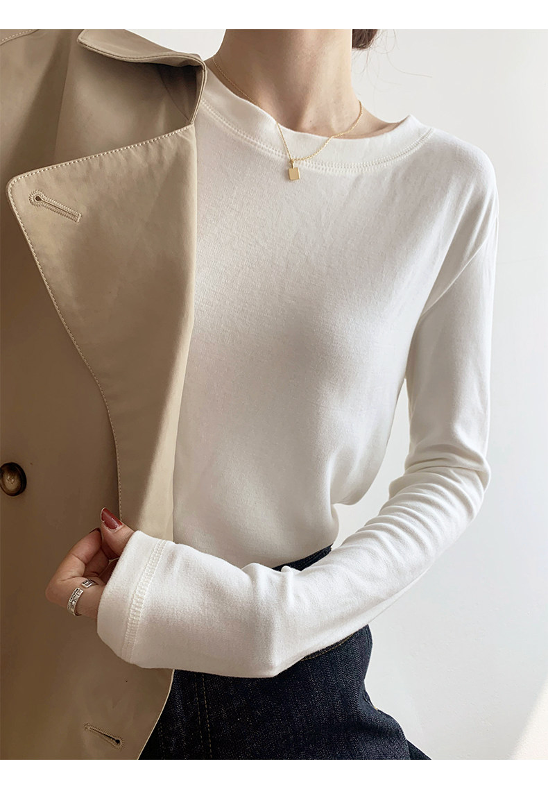 RM30184#双面德绒打底衫女内搭秋冬纯棉长袖加绒加厚韩版白色上衣