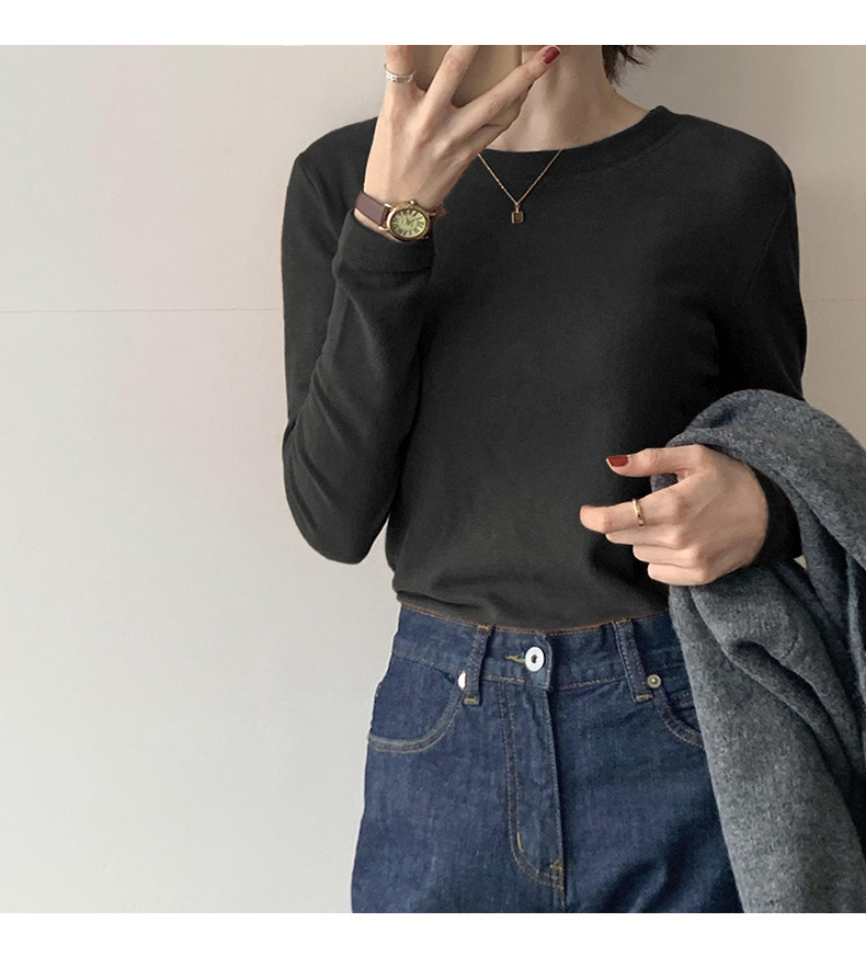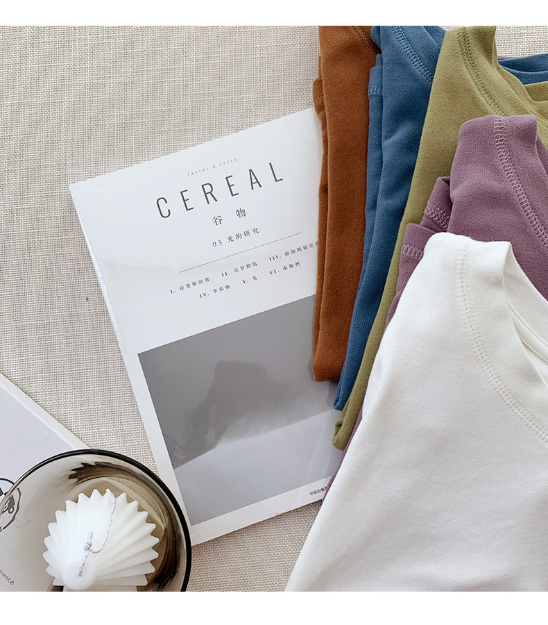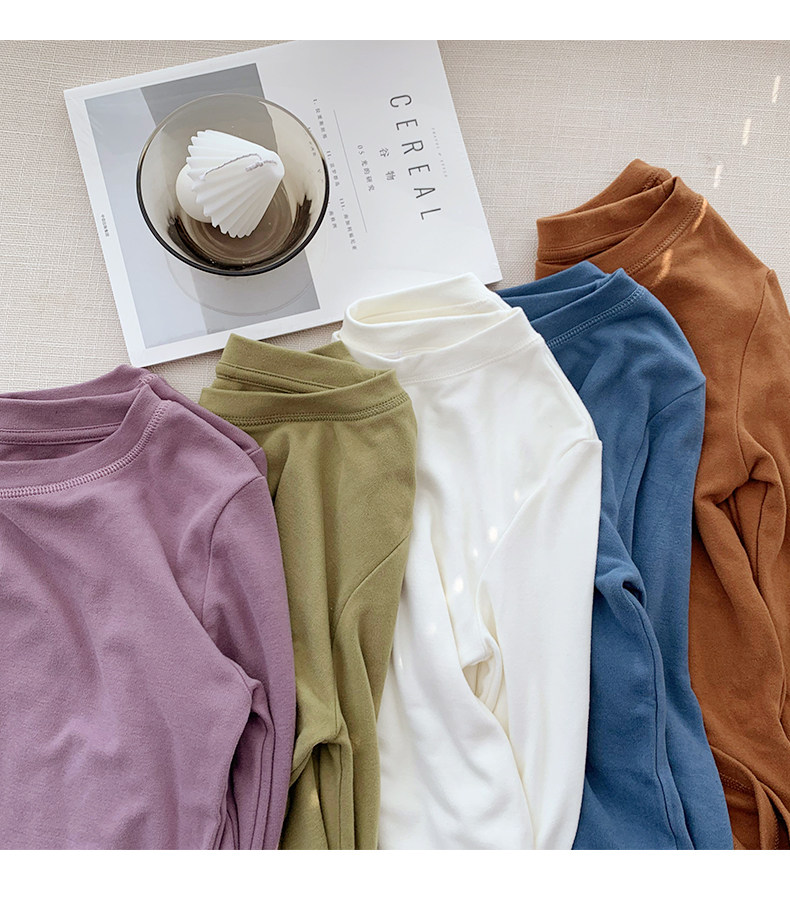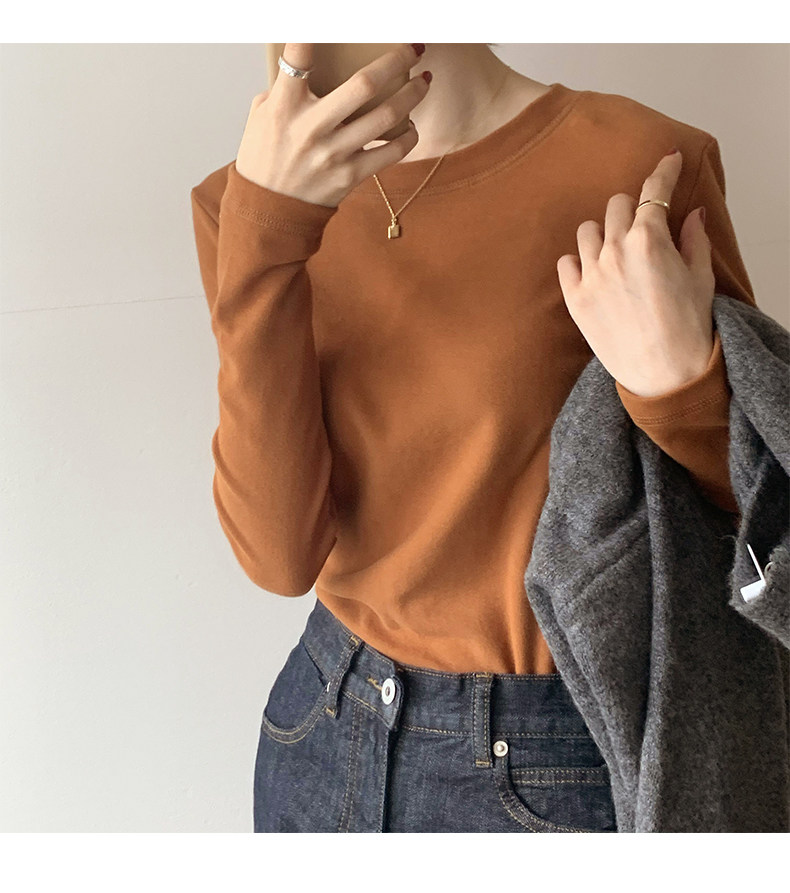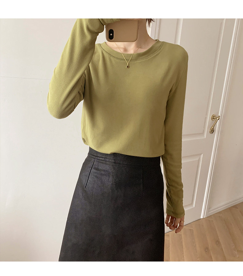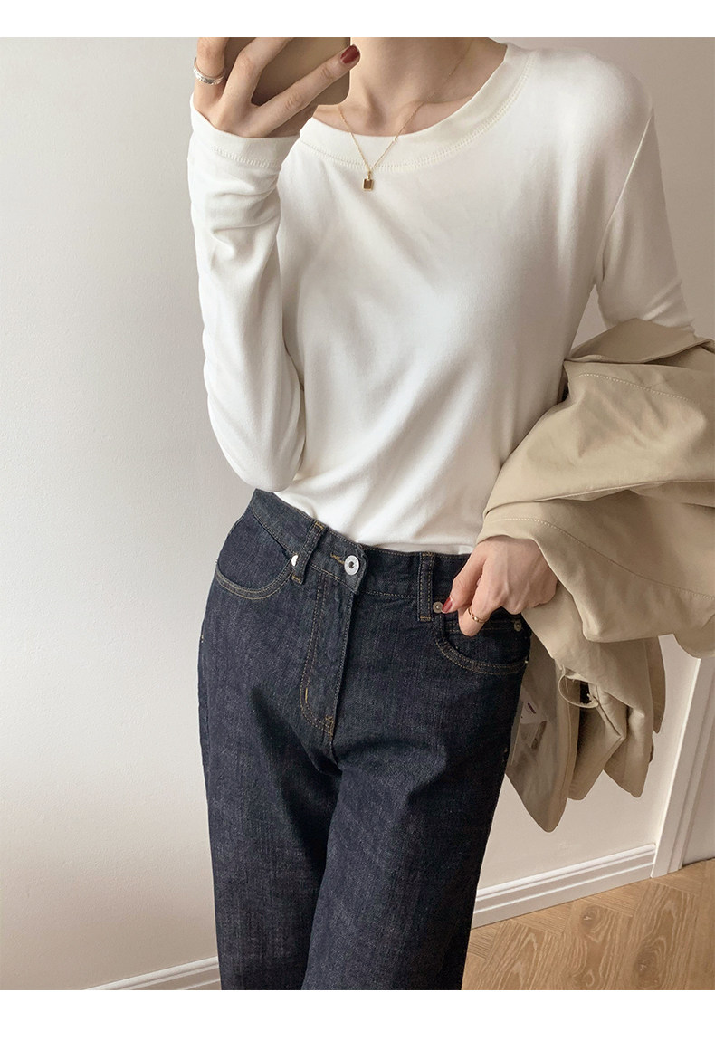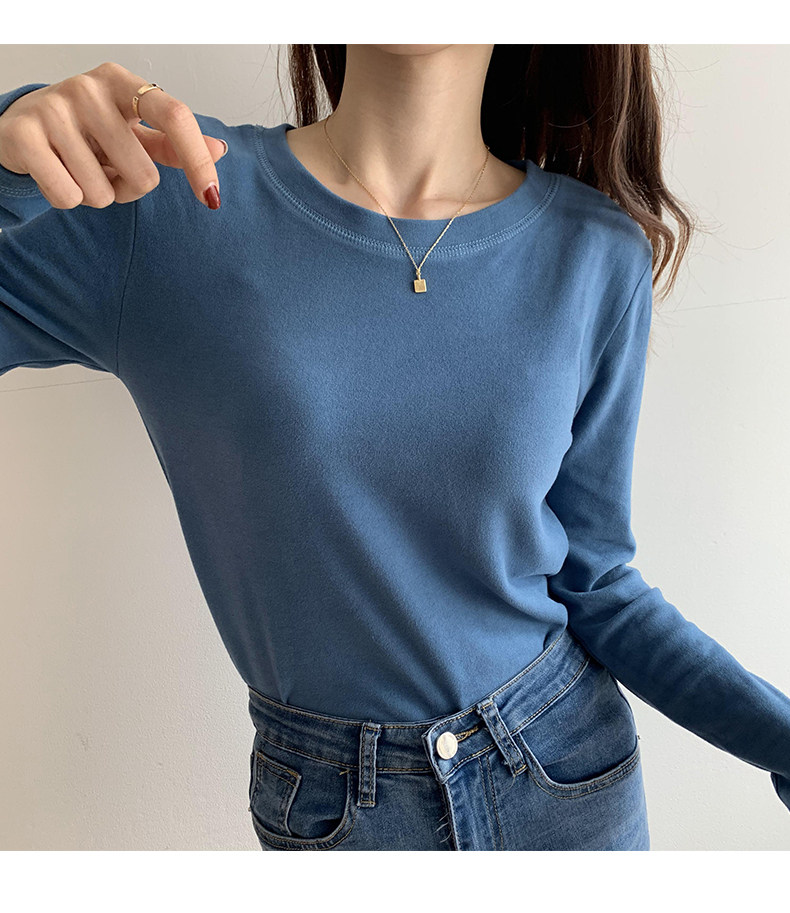 RM30184#双面德绒打底衫女内搭秋冬纯棉长袖加绒加厚韩版白色上衣