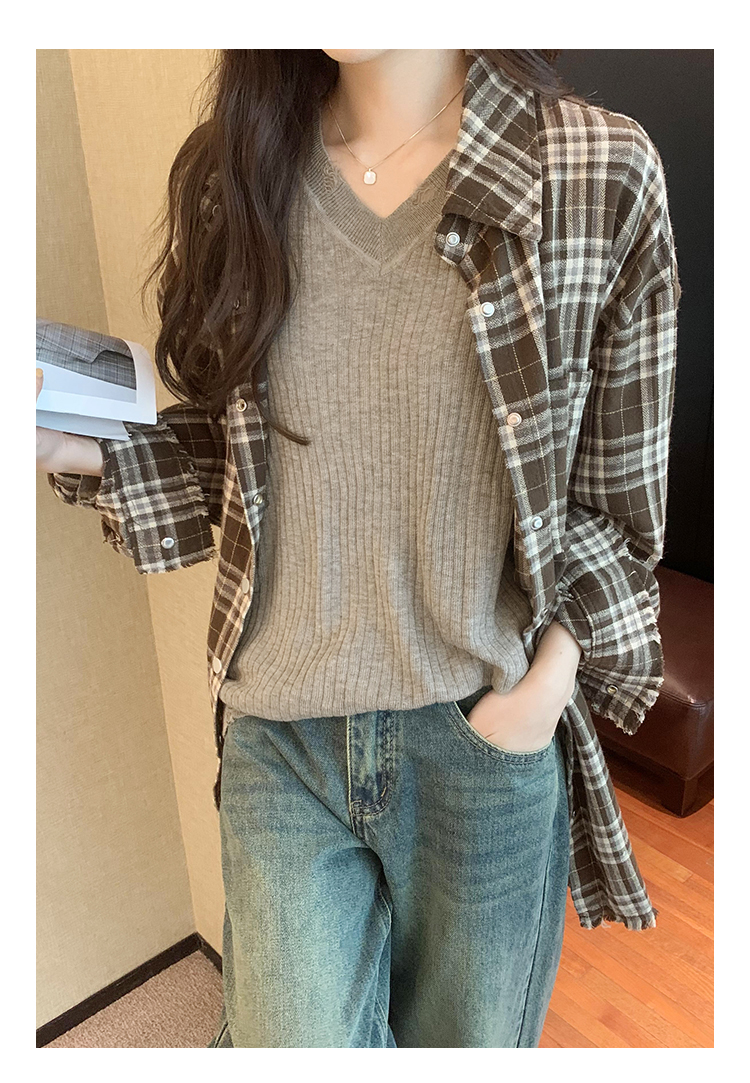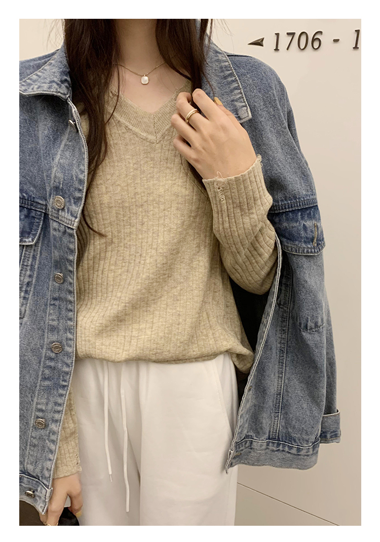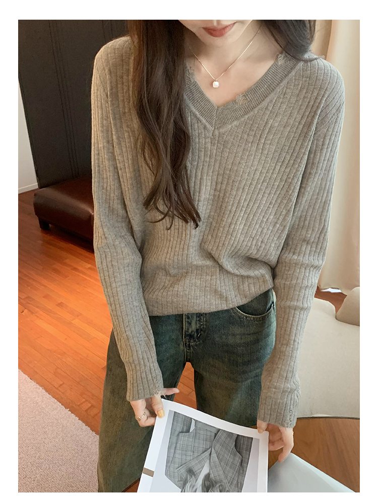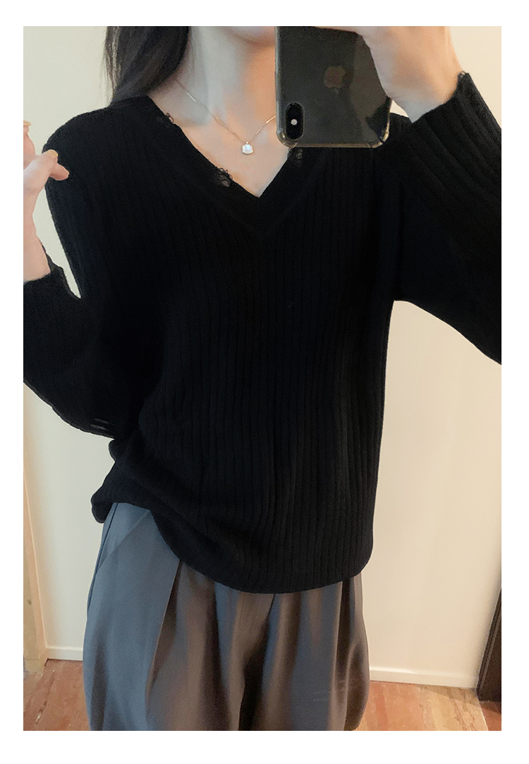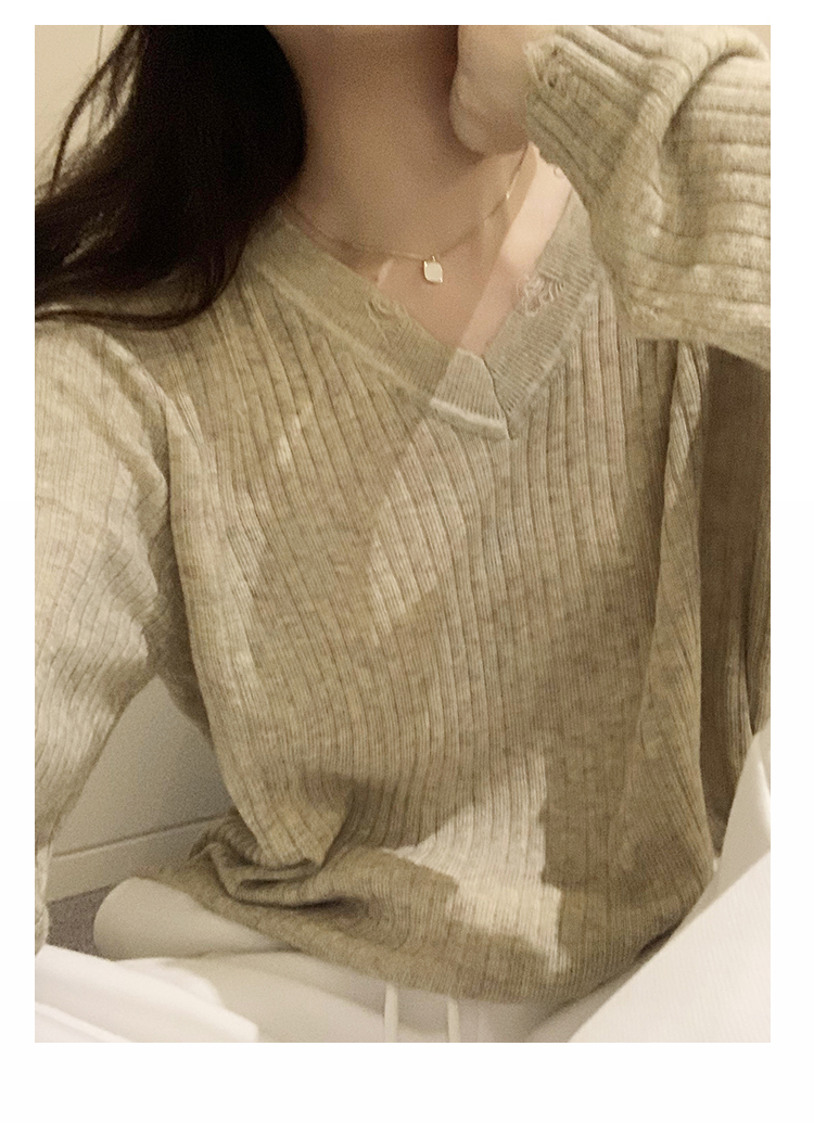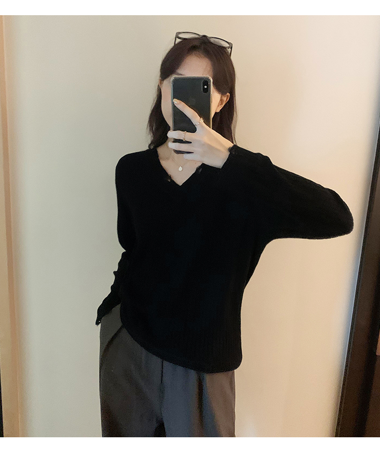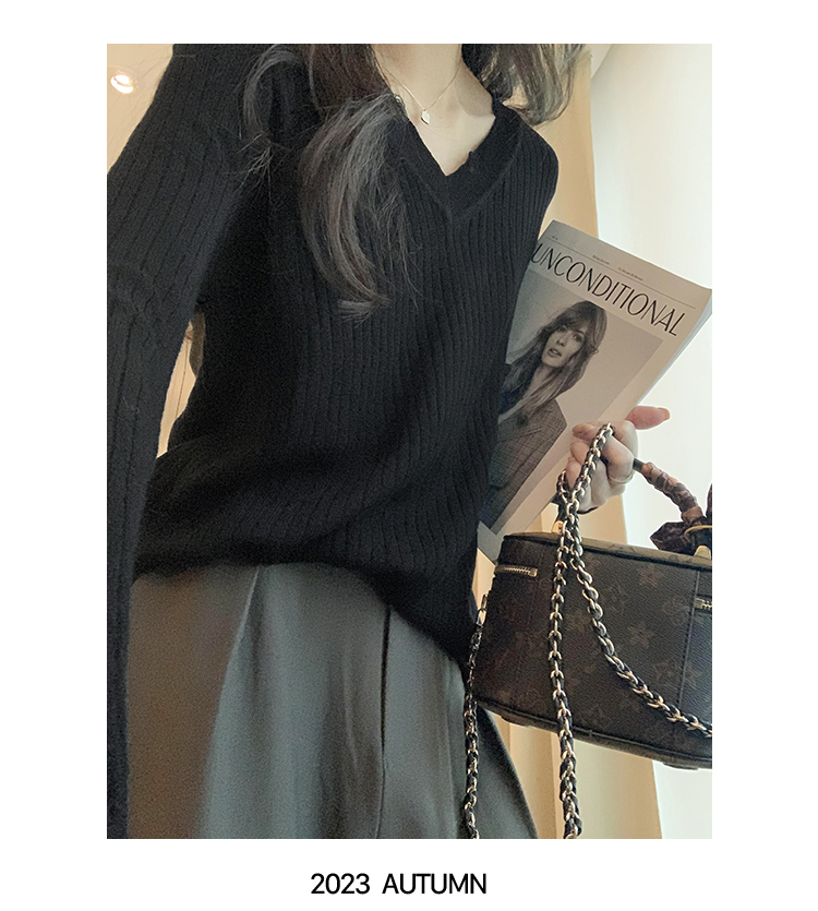 RM30185#V领显瘦羊毛针织衫女2023秋冬新款修身长袖内搭打底衫上衣