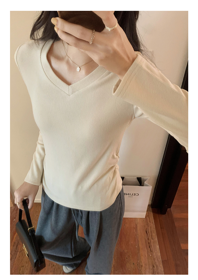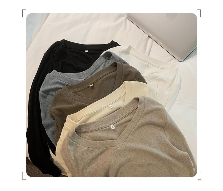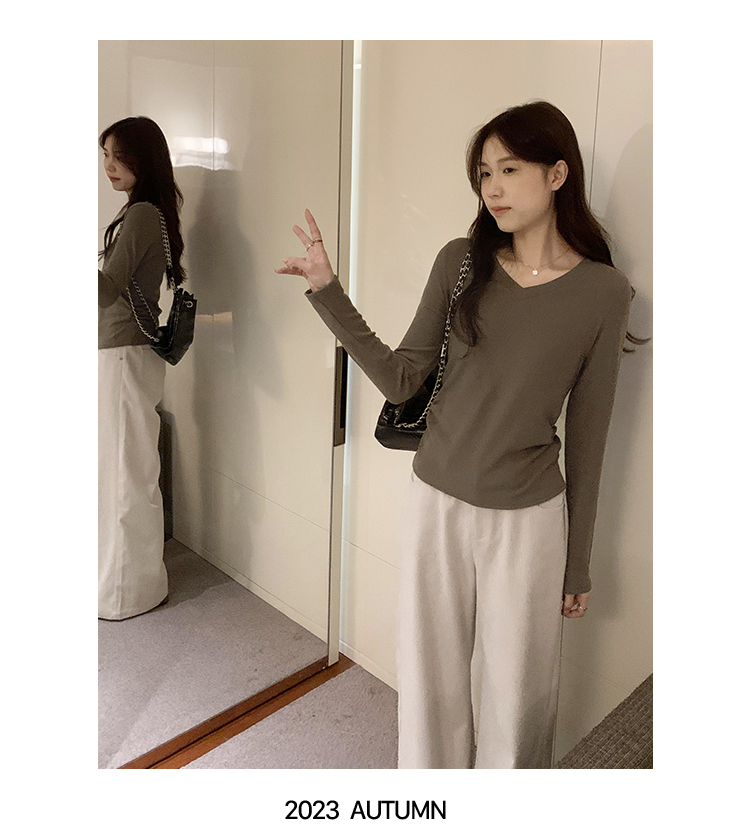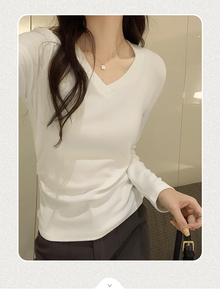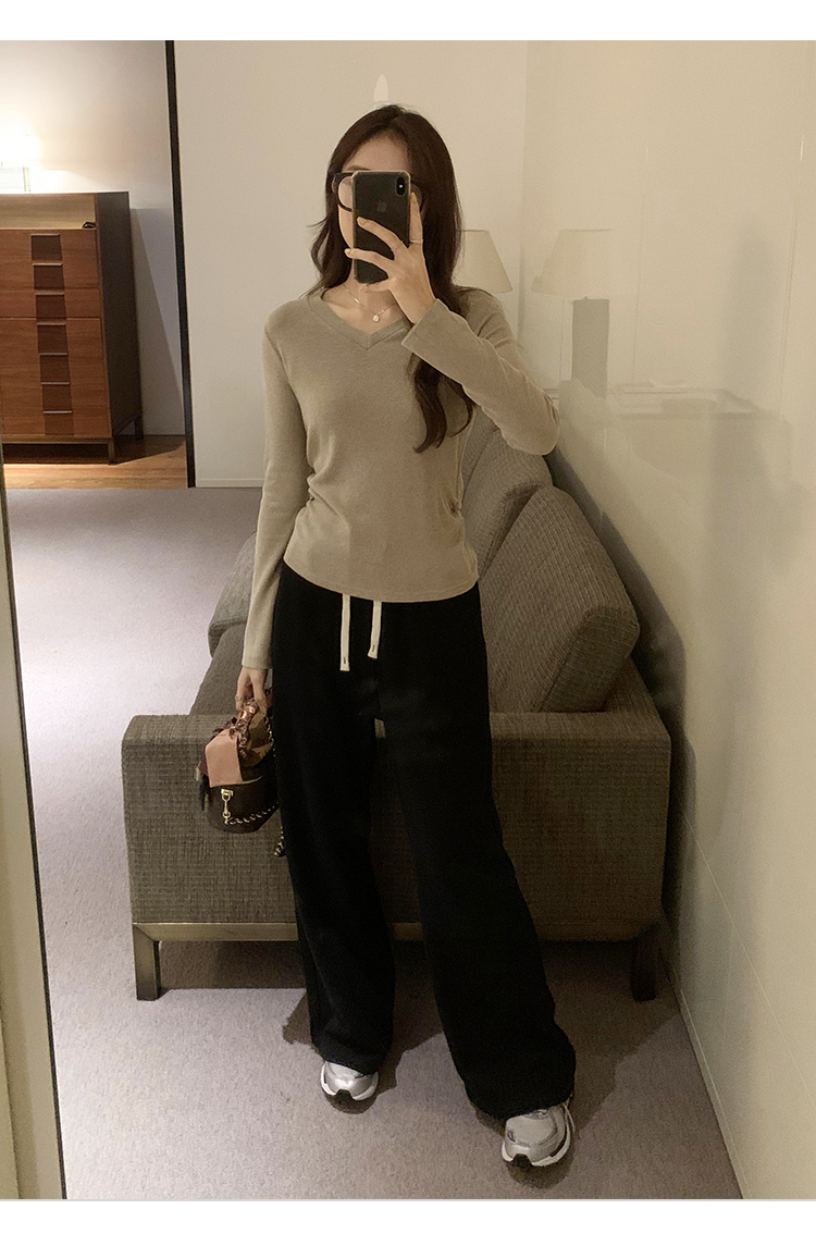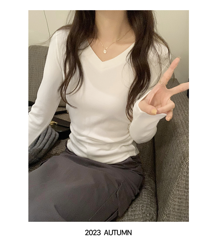 RM30190#慕斯羊绒小V领正肩螺纹纯欲显瘦2023秋冬新款百搭上衣