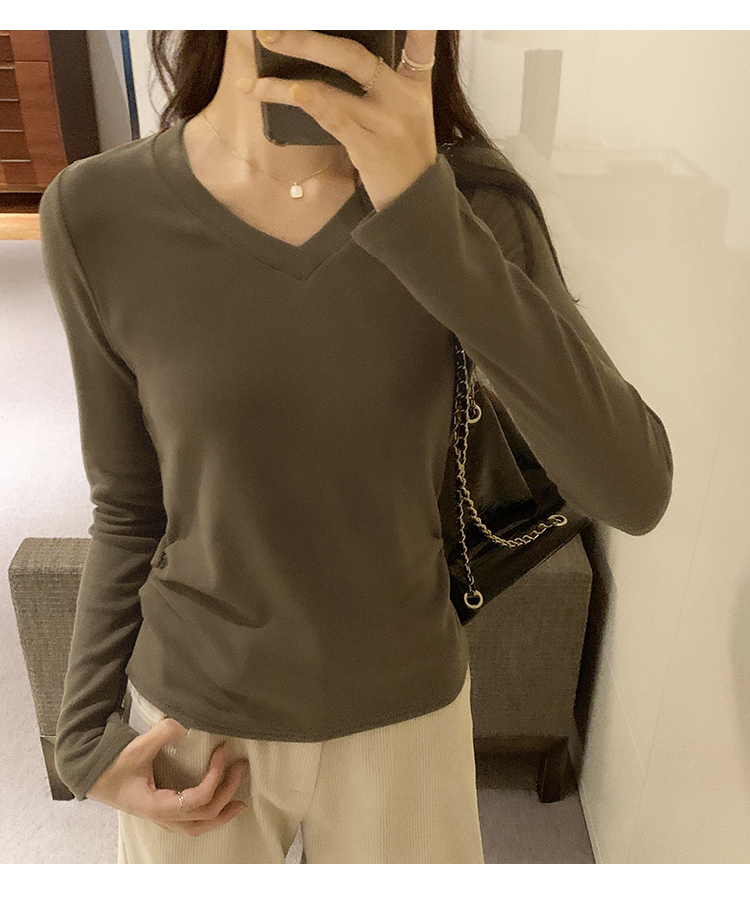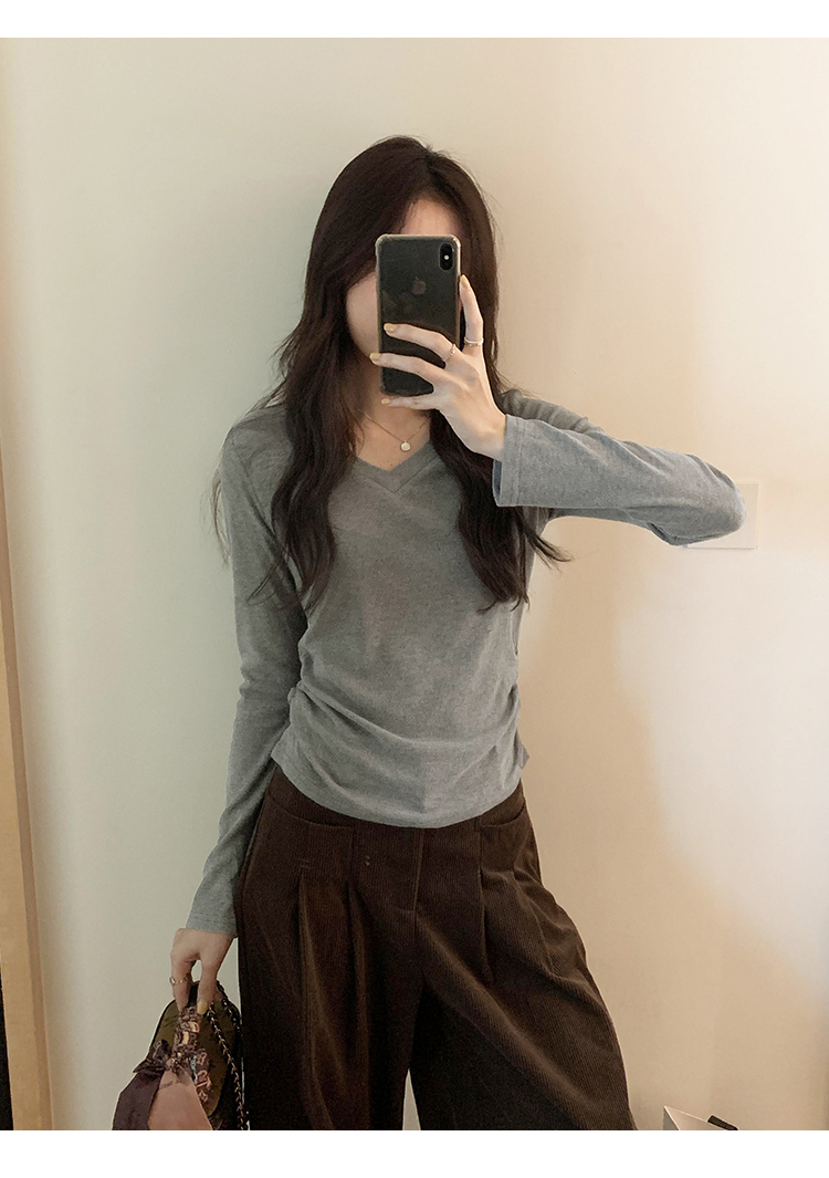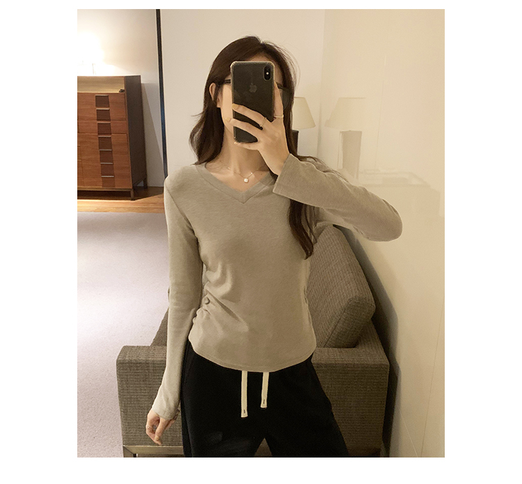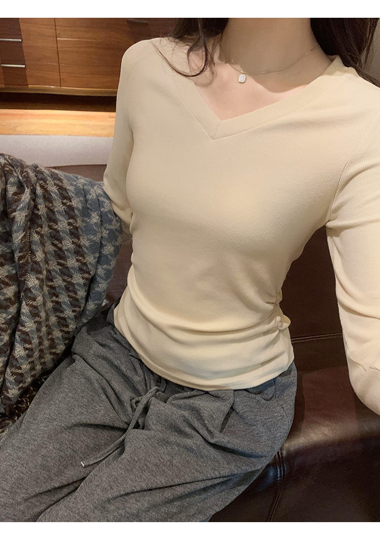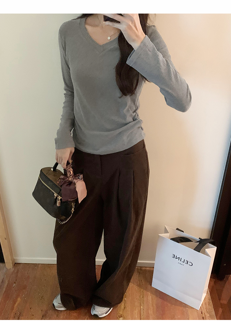 RM30190#慕斯羊绒小V领正肩螺纹纯欲显瘦2023秋冬新款百搭上衣