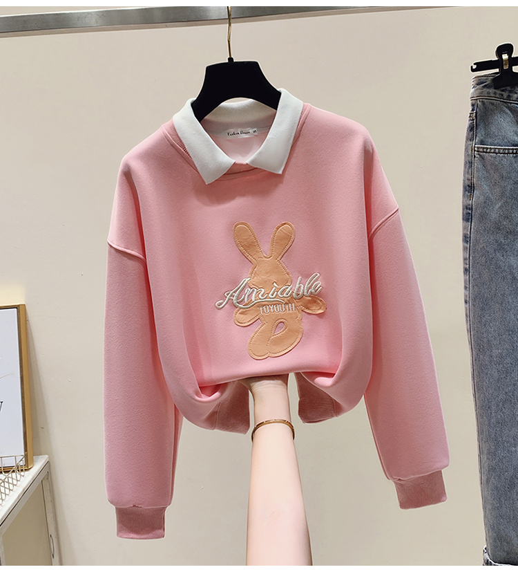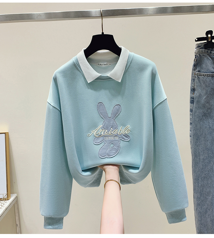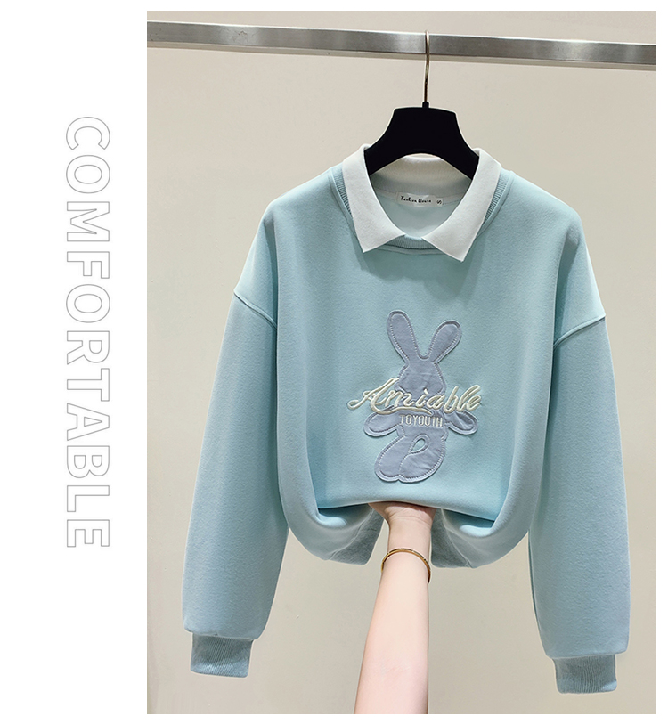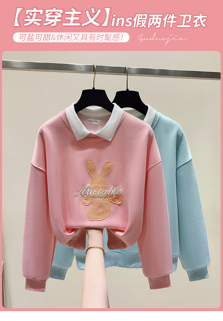 RM30195#娃娃领卫衣女2023年新款爆款假两件长袖上衣学院风