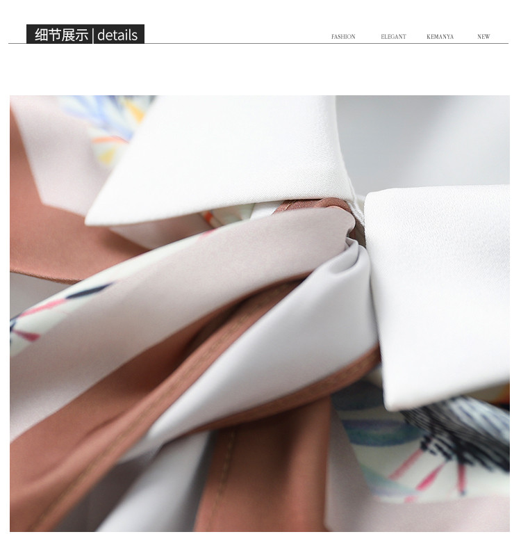 RM30205#新款秋季法式印花披肩白色领带长袖衬衫