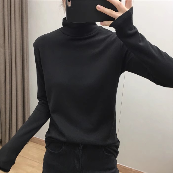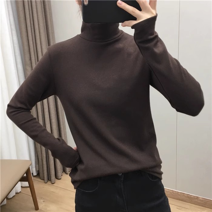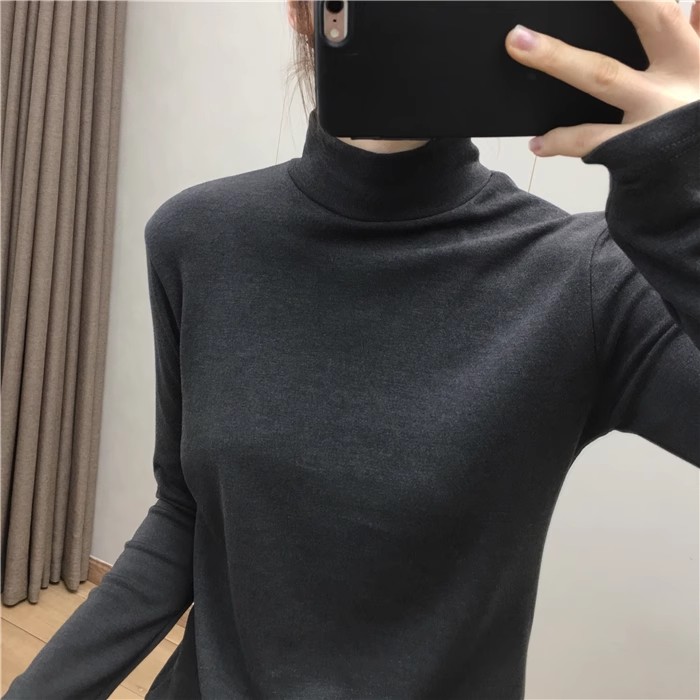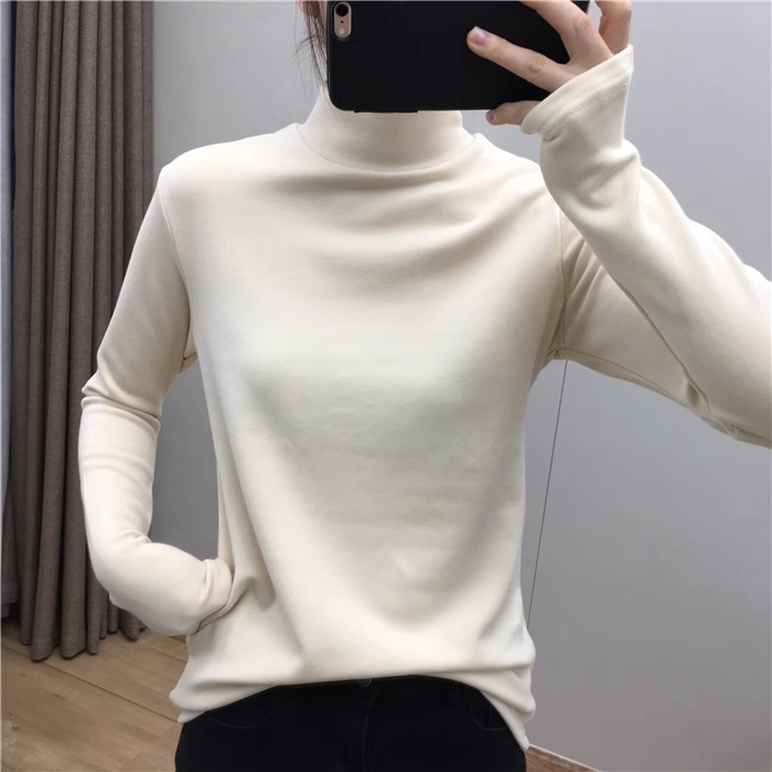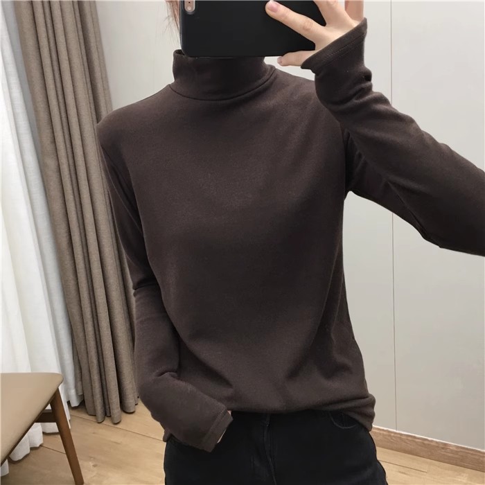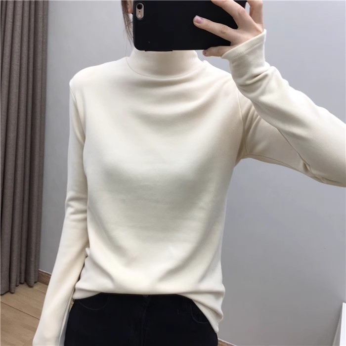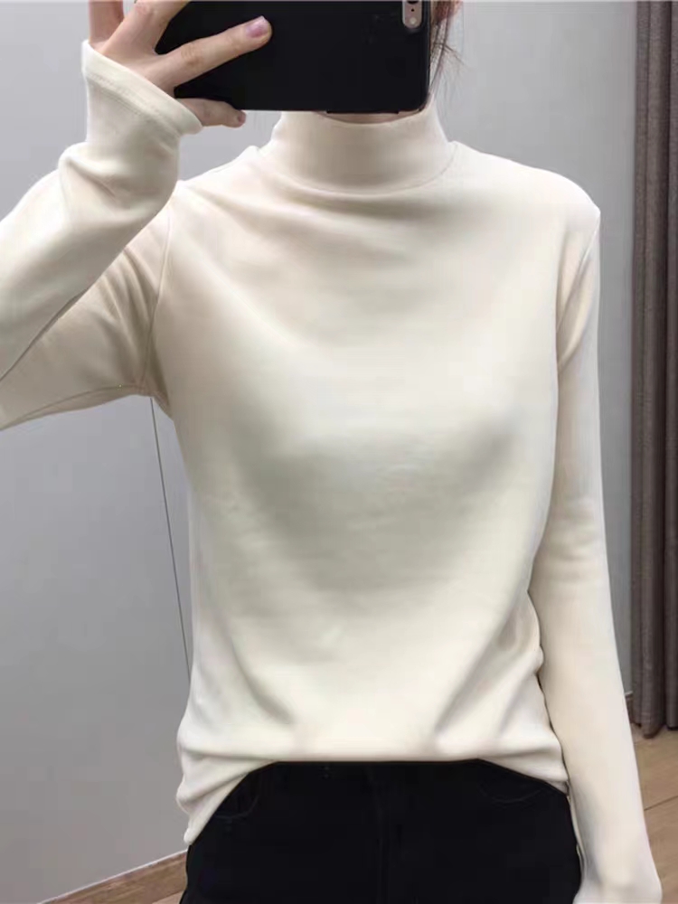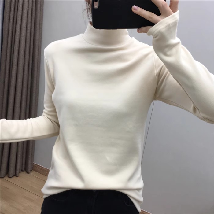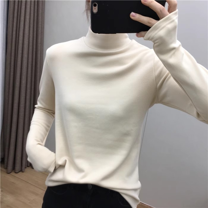 RM30206#打底衫女半高领秋冬新款洋气加绒加厚内搭T恤长袖
