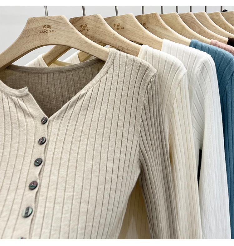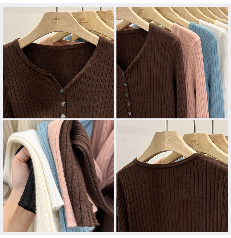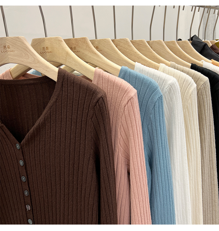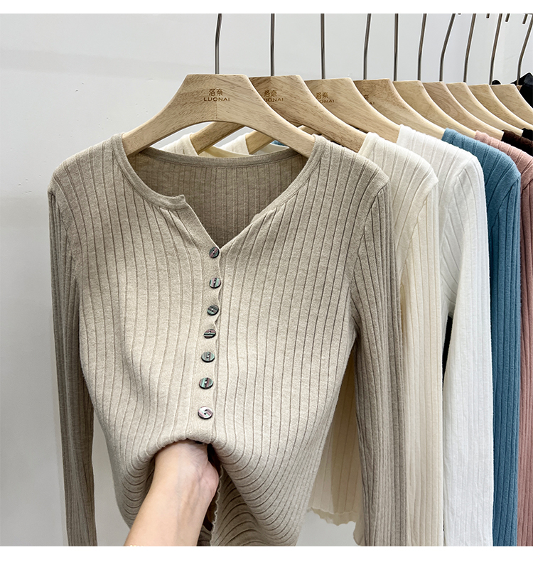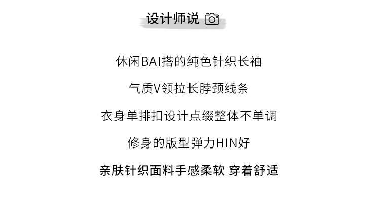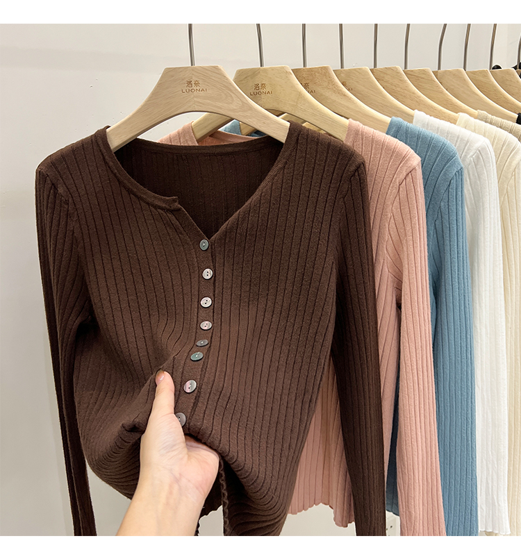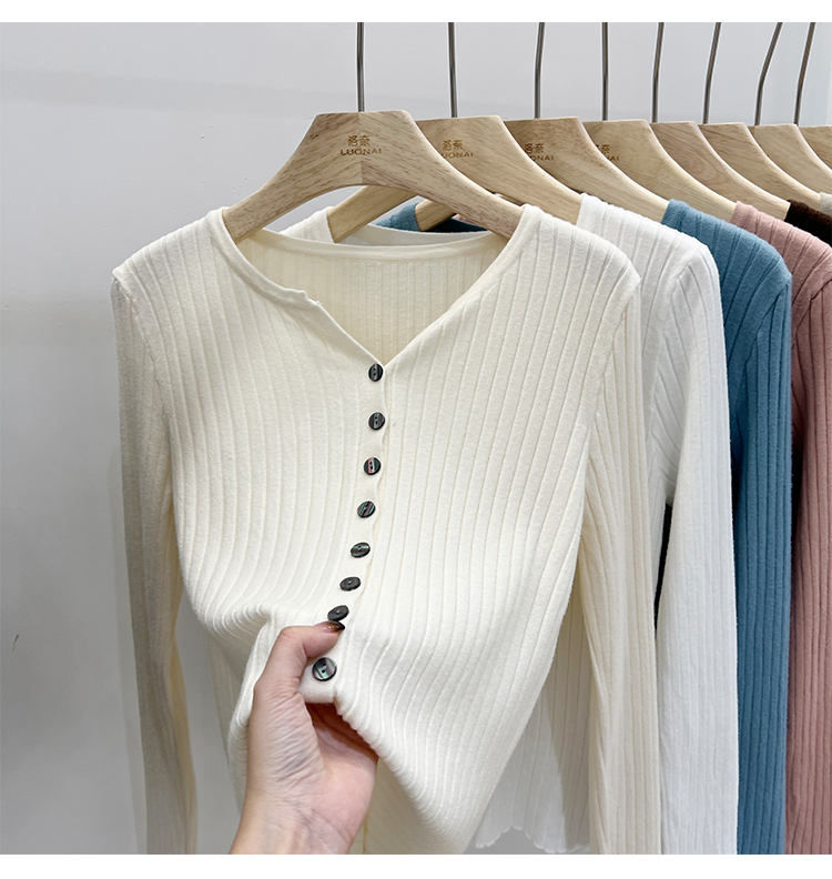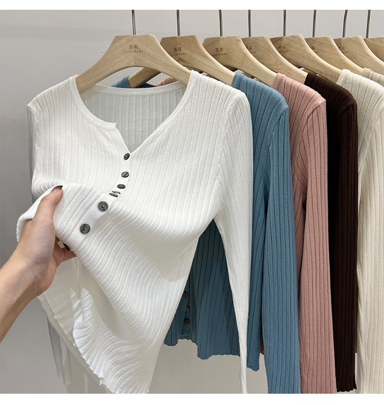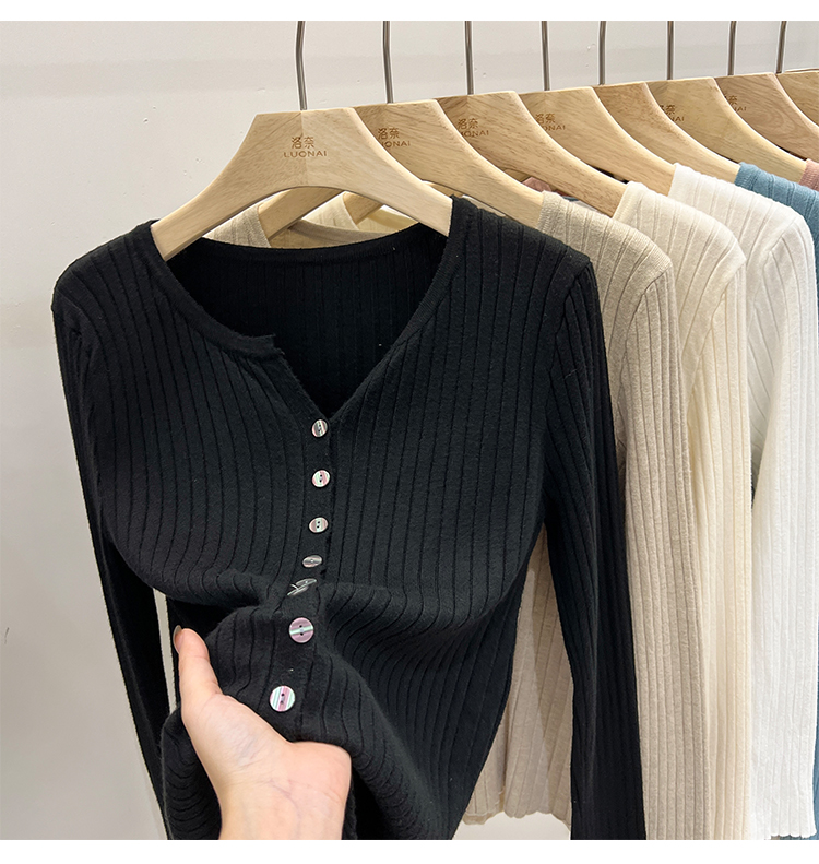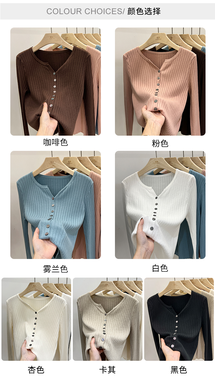 RM30233#设计感V领针织长袖打底衫2022新款扣设计简约通勤针织衫
