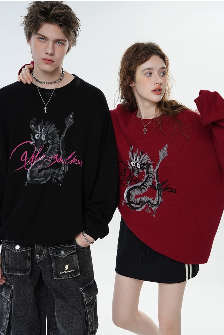 RM30237#呆呆龙慵懒风毛衣女秋冬潮重磅软糯套头针织衫男情侣外套