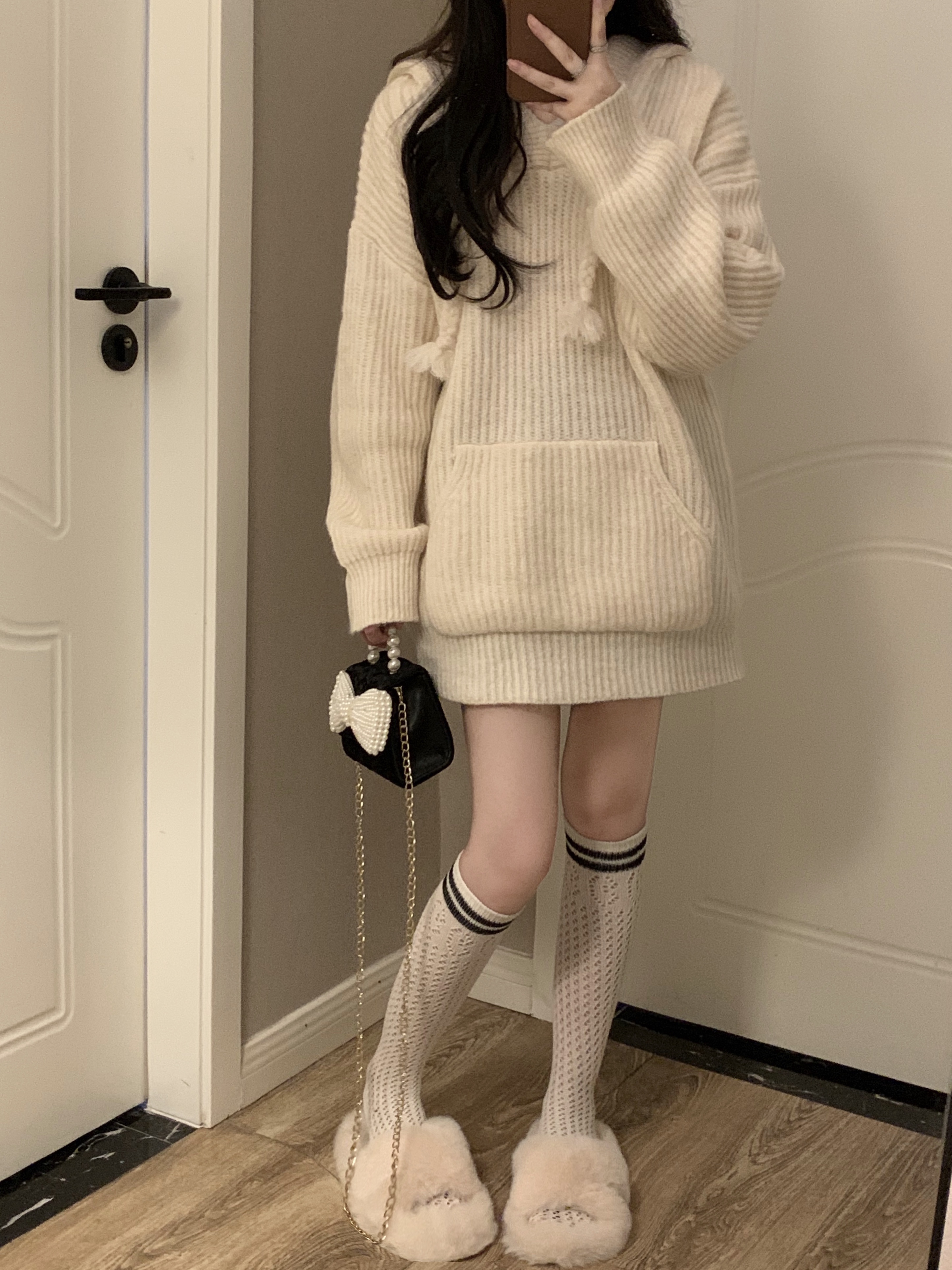 RM30411#温柔风软糯糯毛衣2023秋季新款女甜美宽松慵懒针织长袖中长款上衣