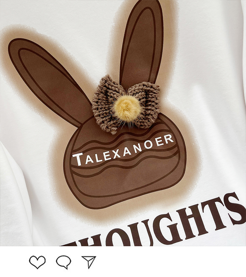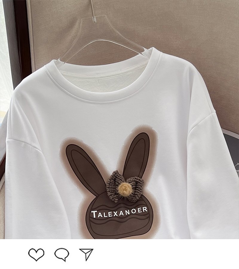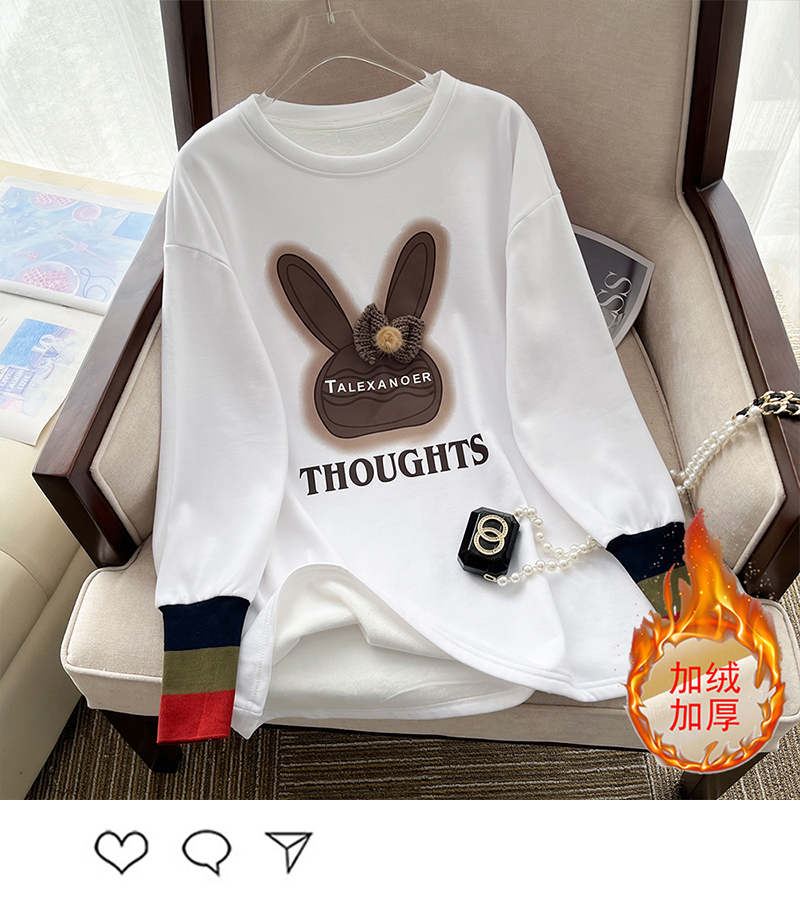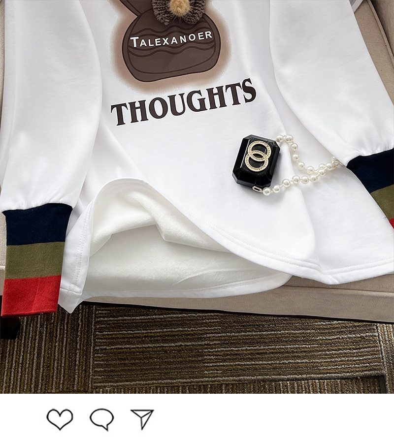 RM30421#立体毛线帽子印花卫衣女2023秋冬中长款圆领长袖T恤