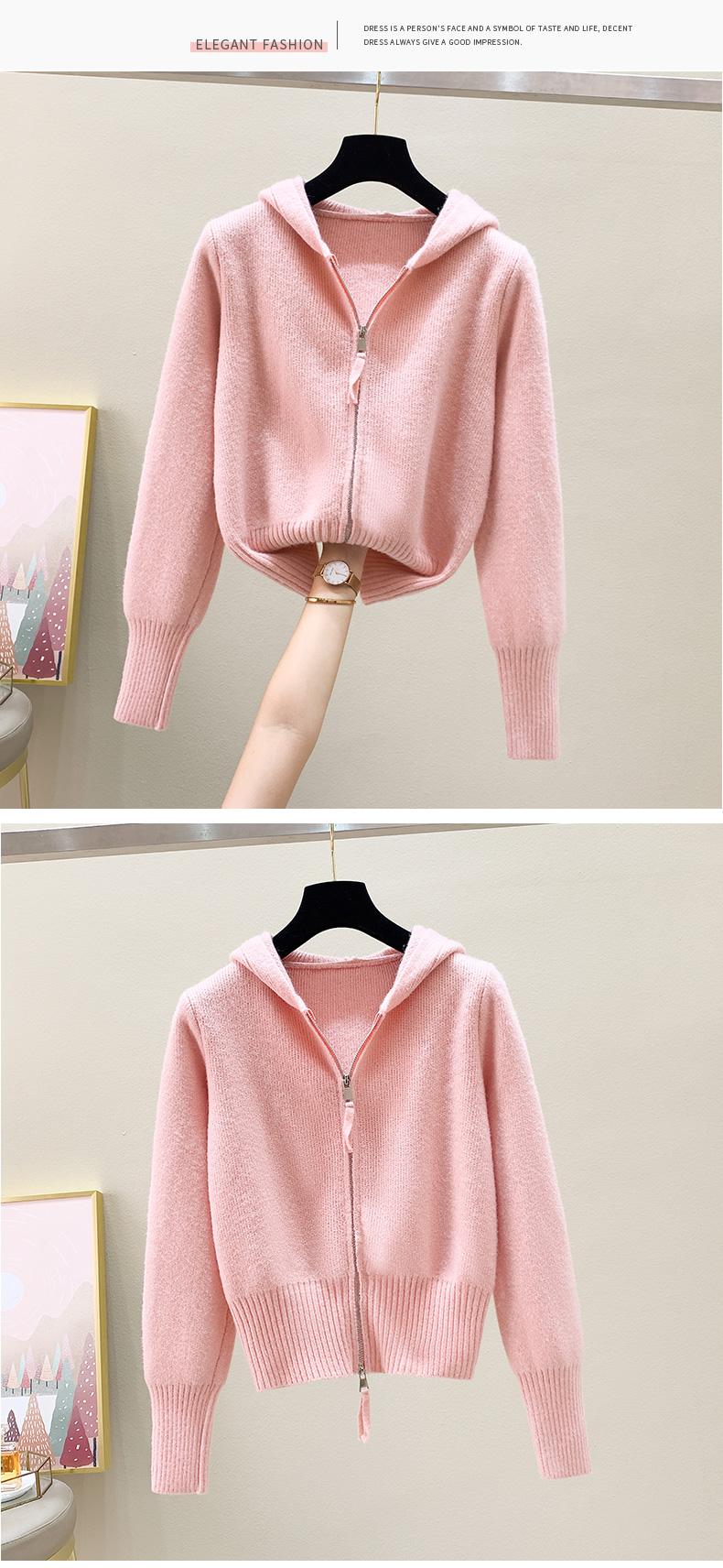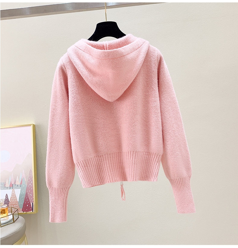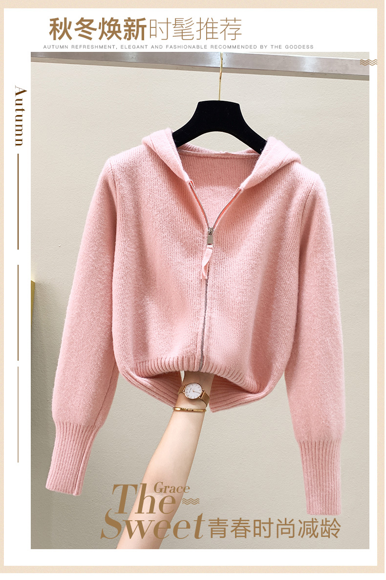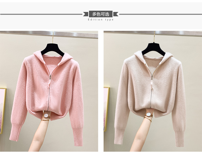 RM30435#羊绒针织开衫外套女2023秋季新款宽松外穿双拉链短款连帽毛衣