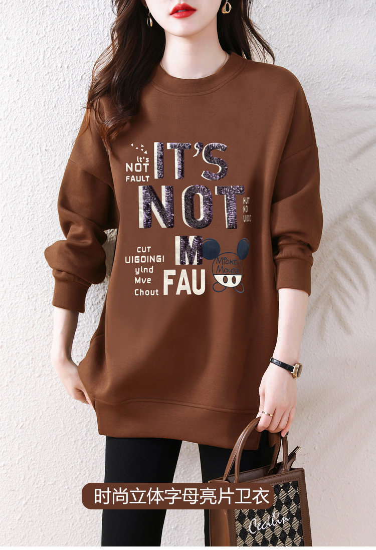 RM30457#新款卫衣女宽松显瘦中长款T恤欧货亮片大码时尚洋气上衣