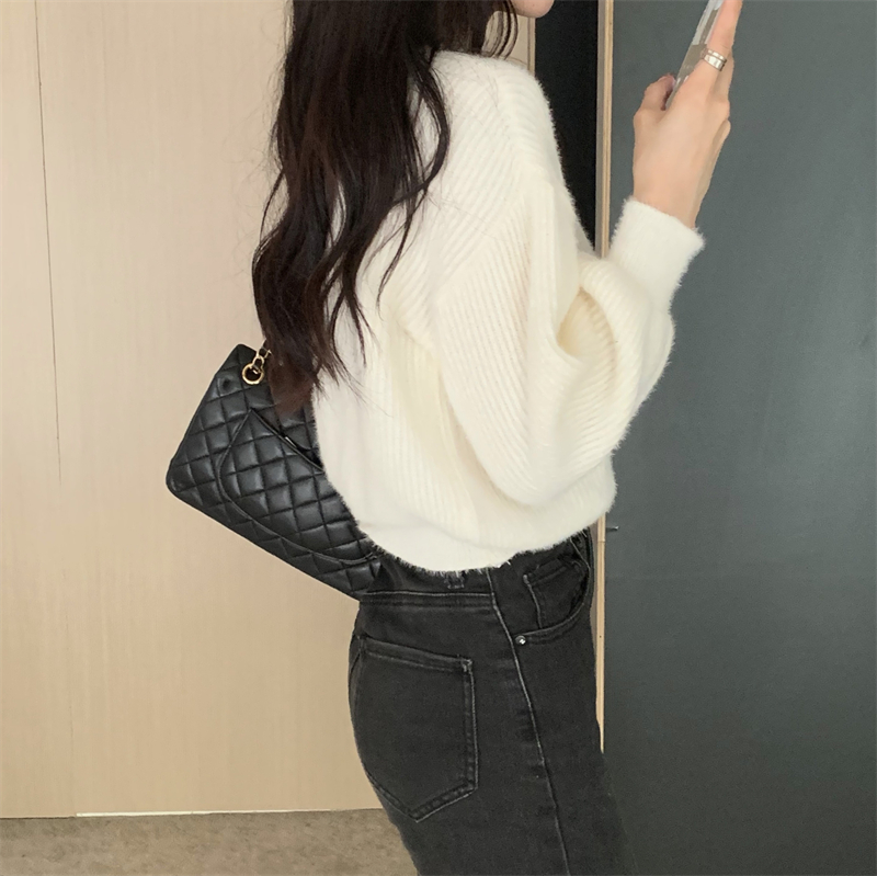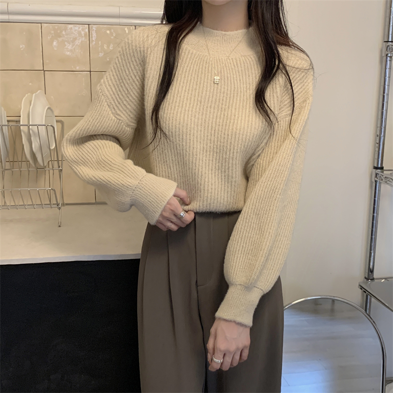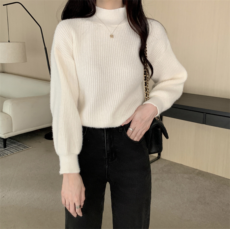 RM30463#保暖半高领设计感灯笼袖针织衫毛衣女