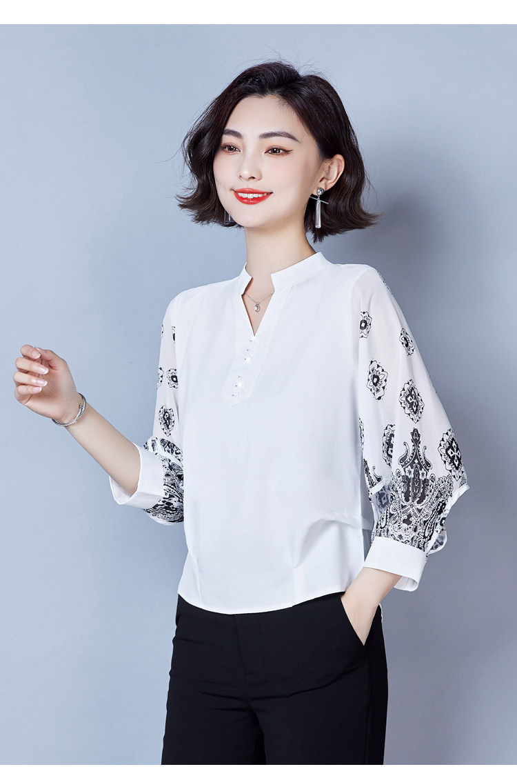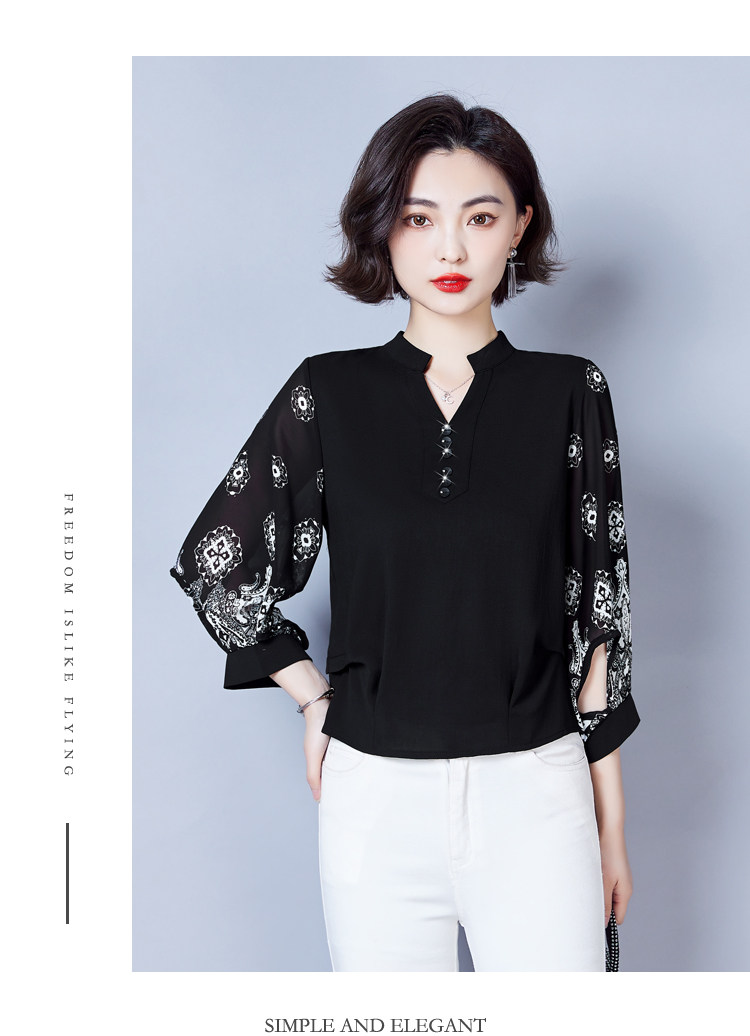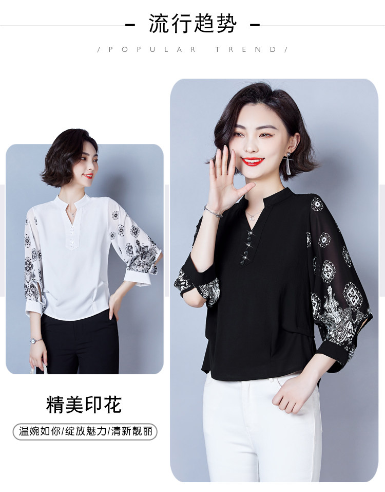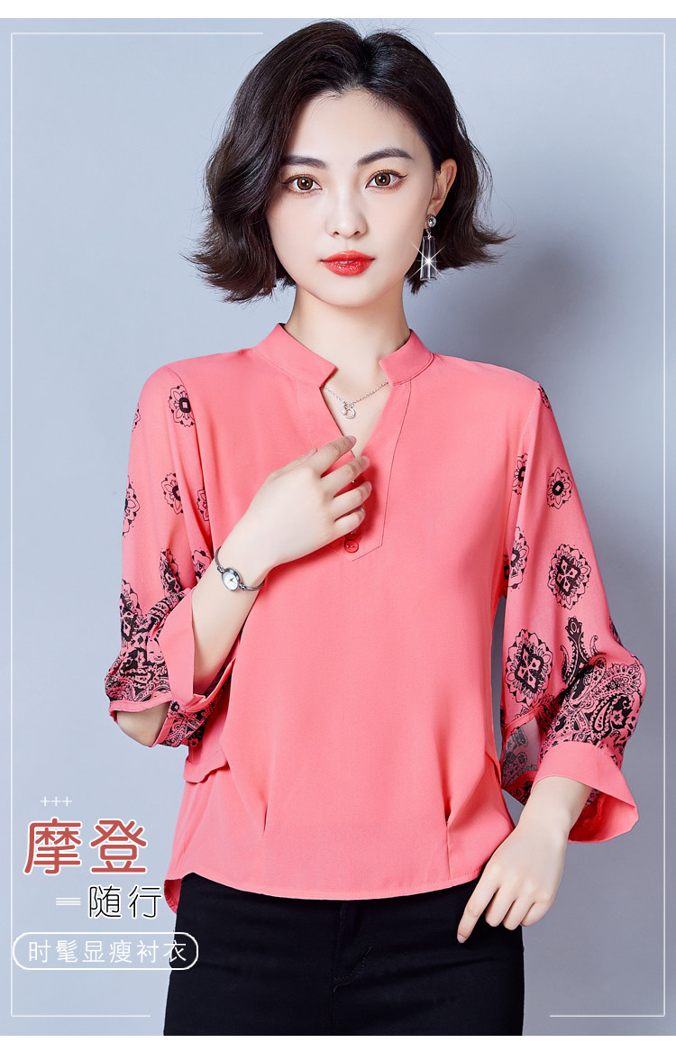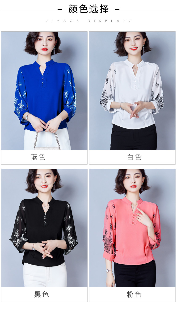 RY2026#春夏新款七分袖衬衫女百搭洋气雪纺上衣