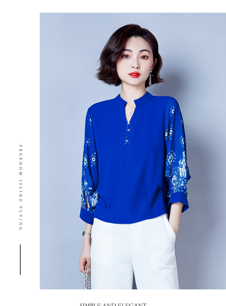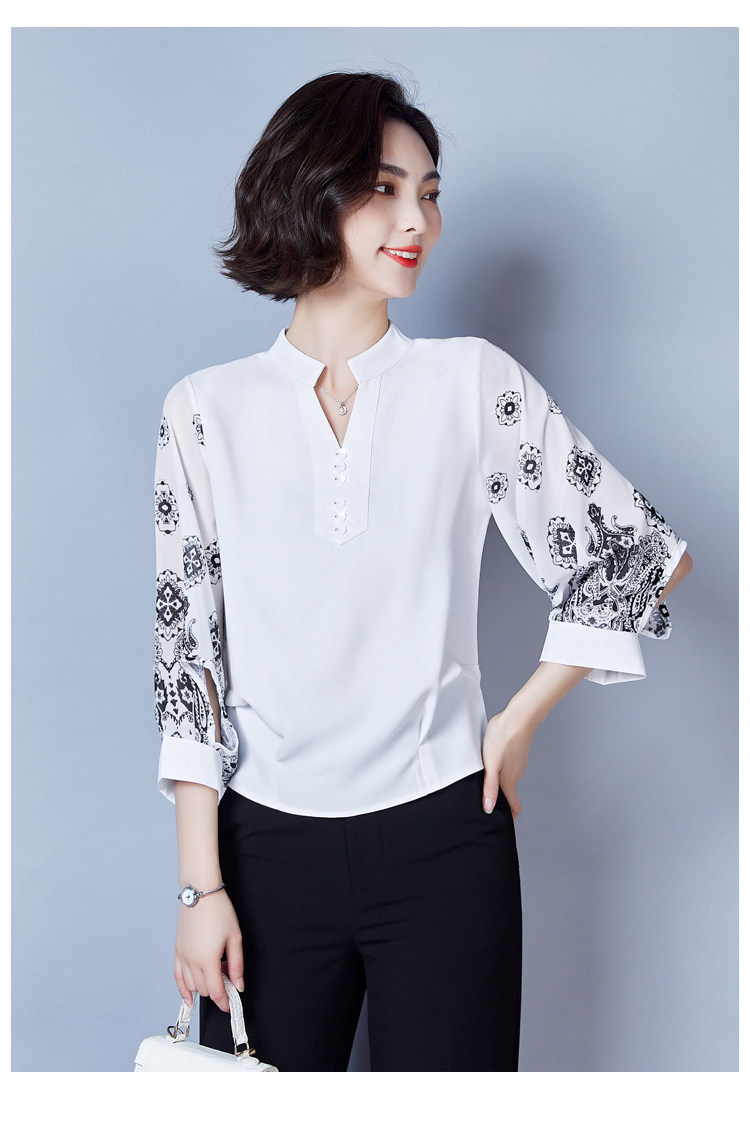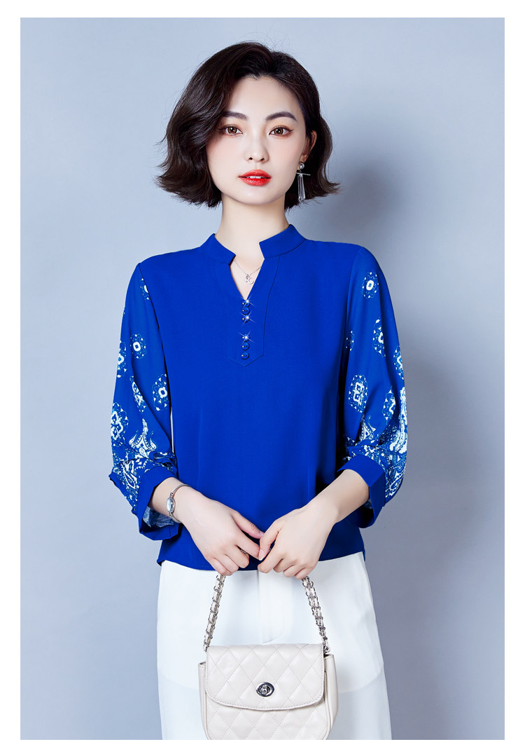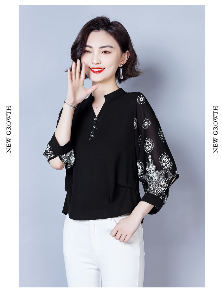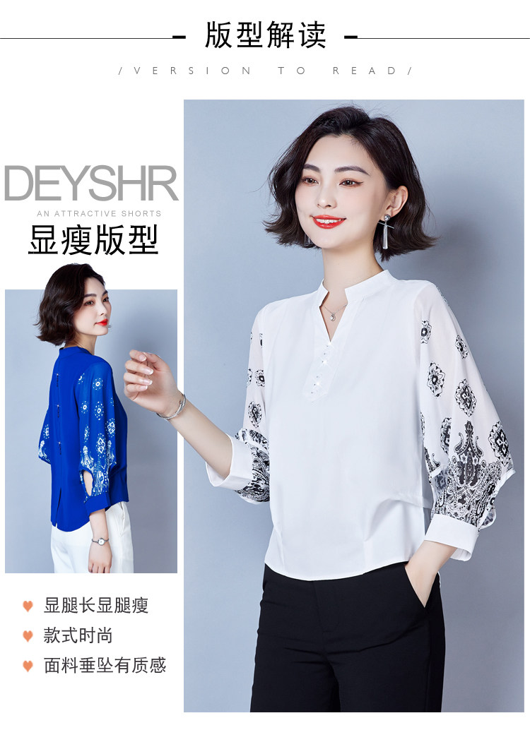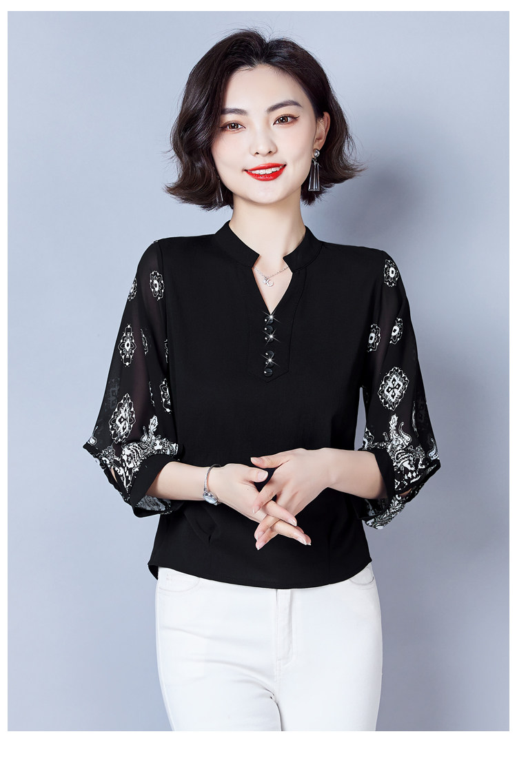 RY2026#春夏新款七分袖衬衫女百搭洋气雪纺上衣