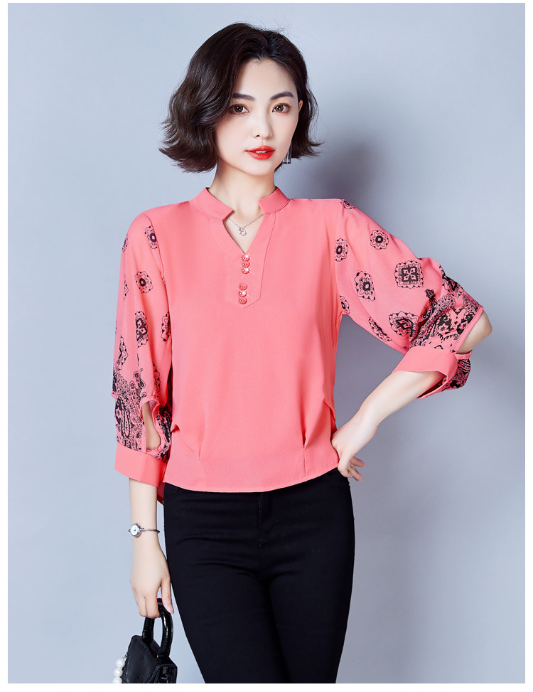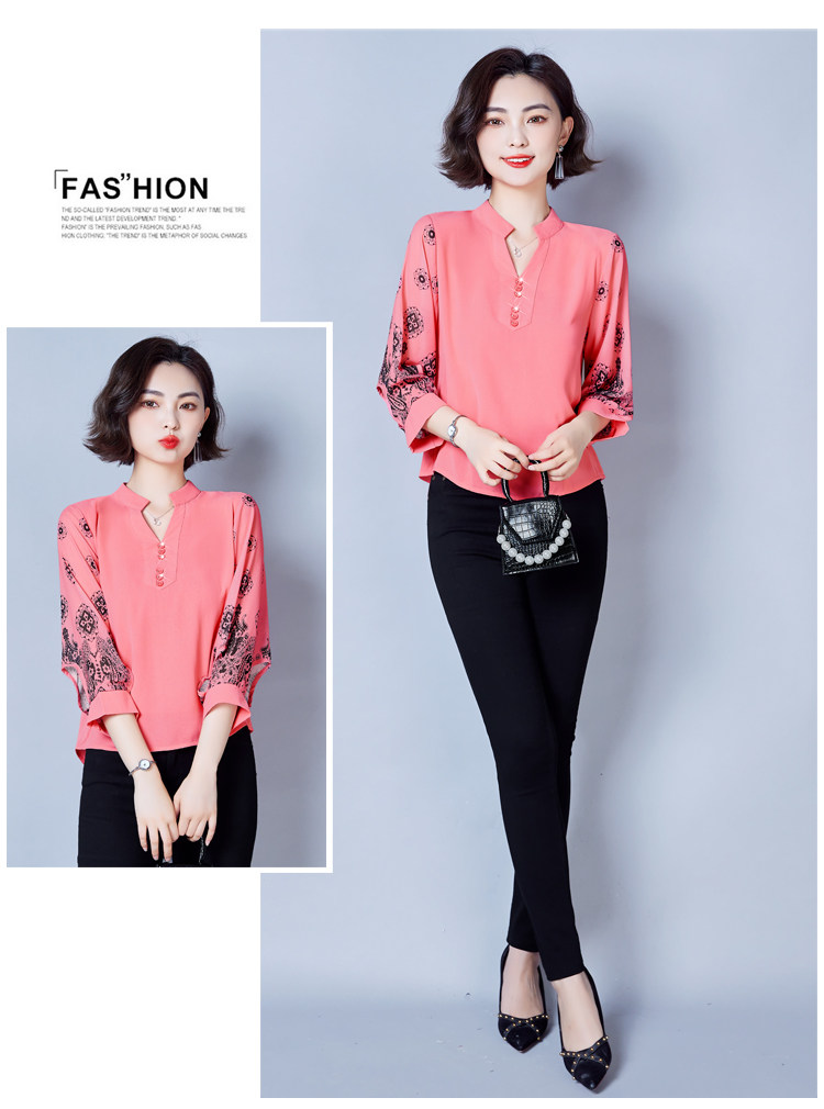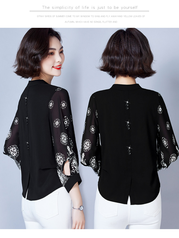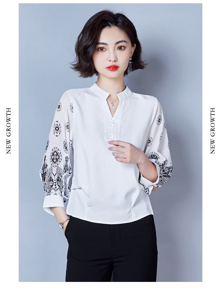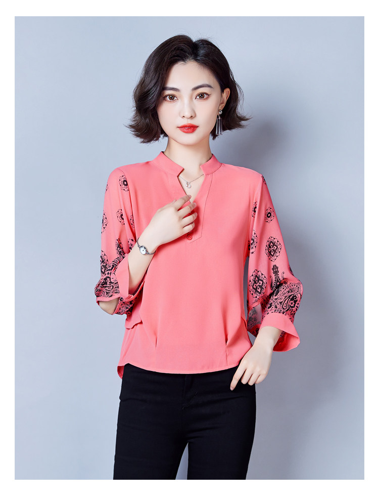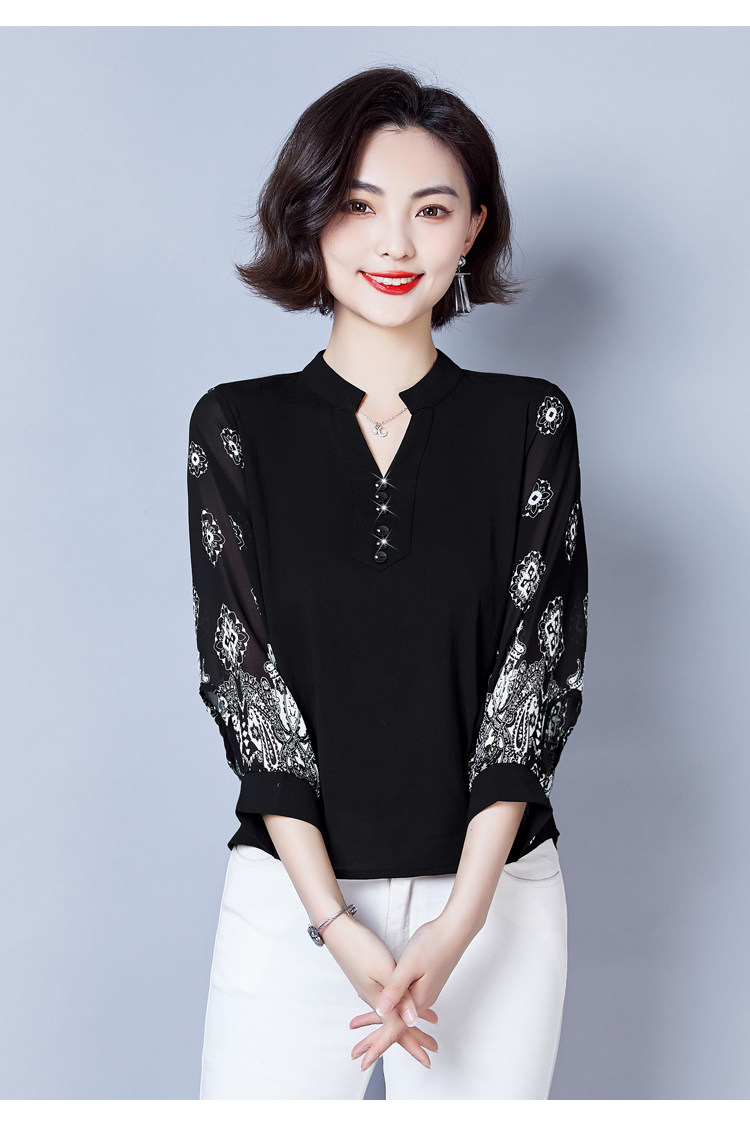 RY2026#春夏新款七分袖衬衫女百搭洋气雪纺上衣