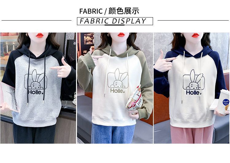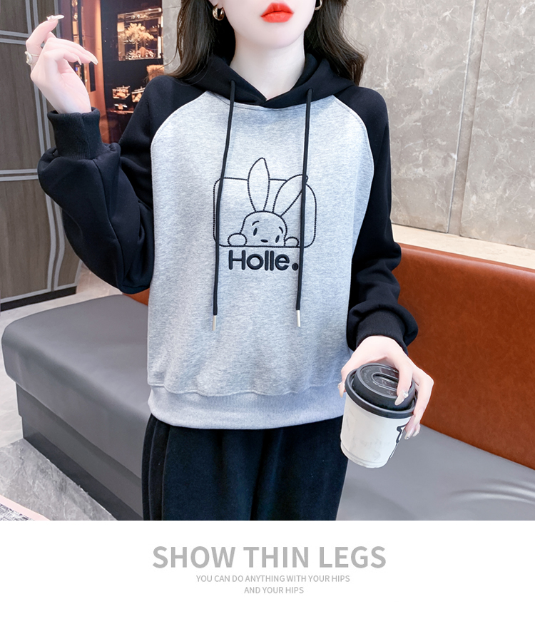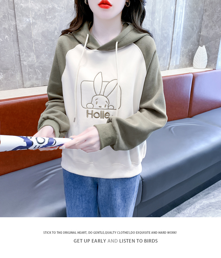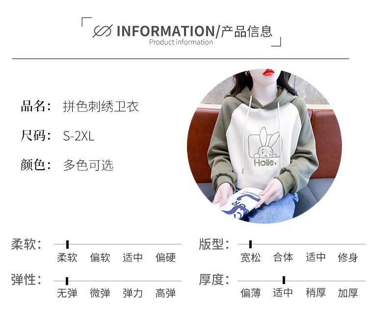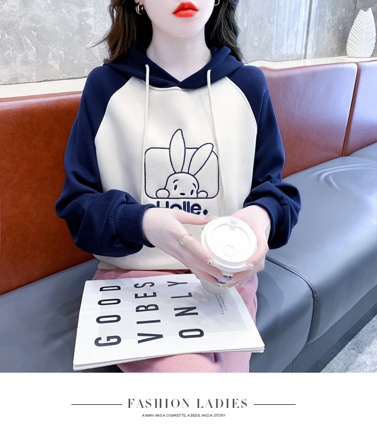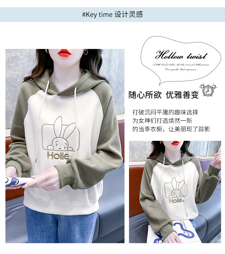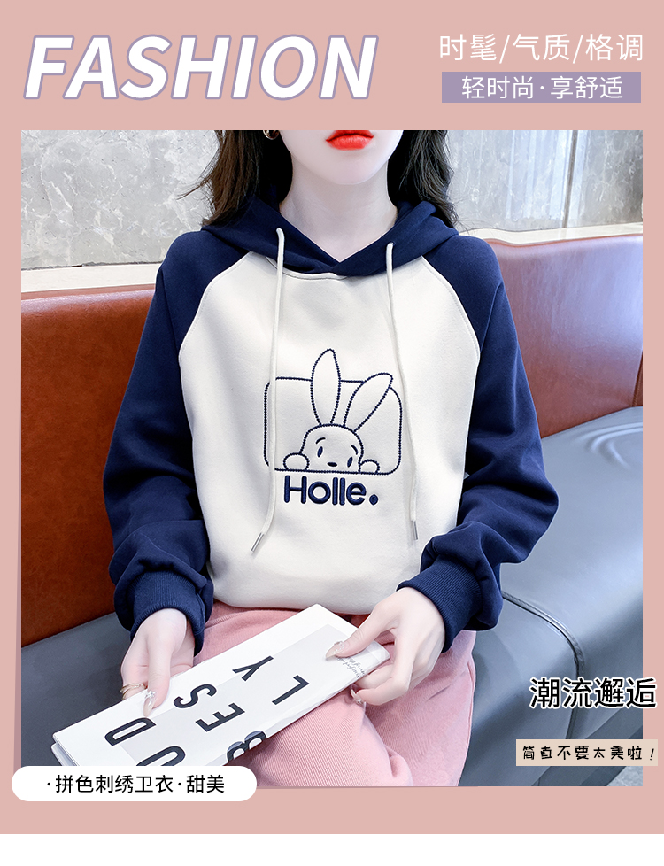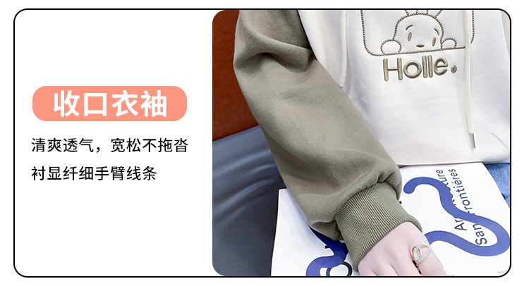 RM30469#连帽短款卫衣女秋季2023新款宽松拼色绣花小个子上衣外套潮