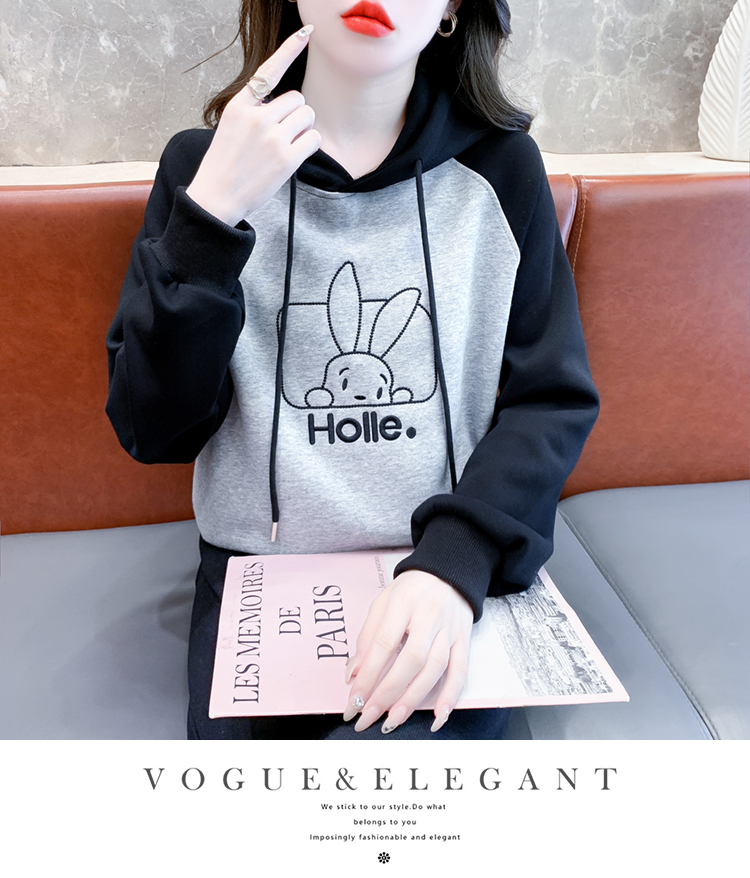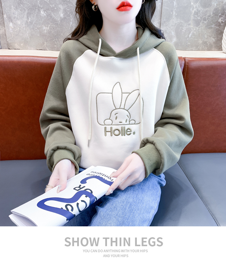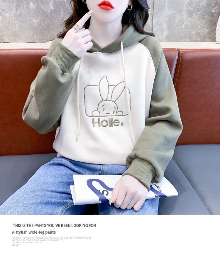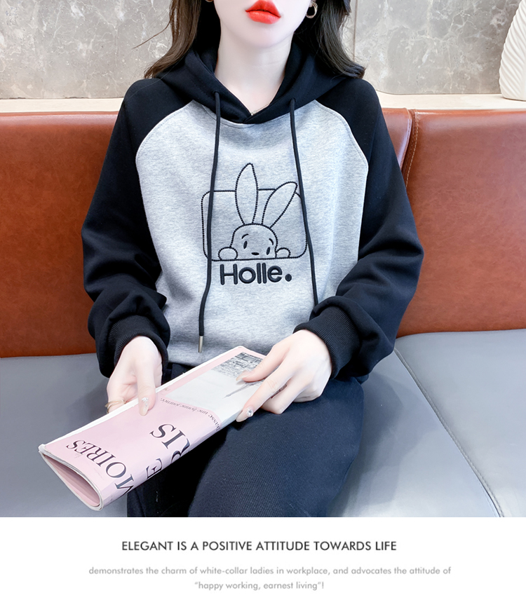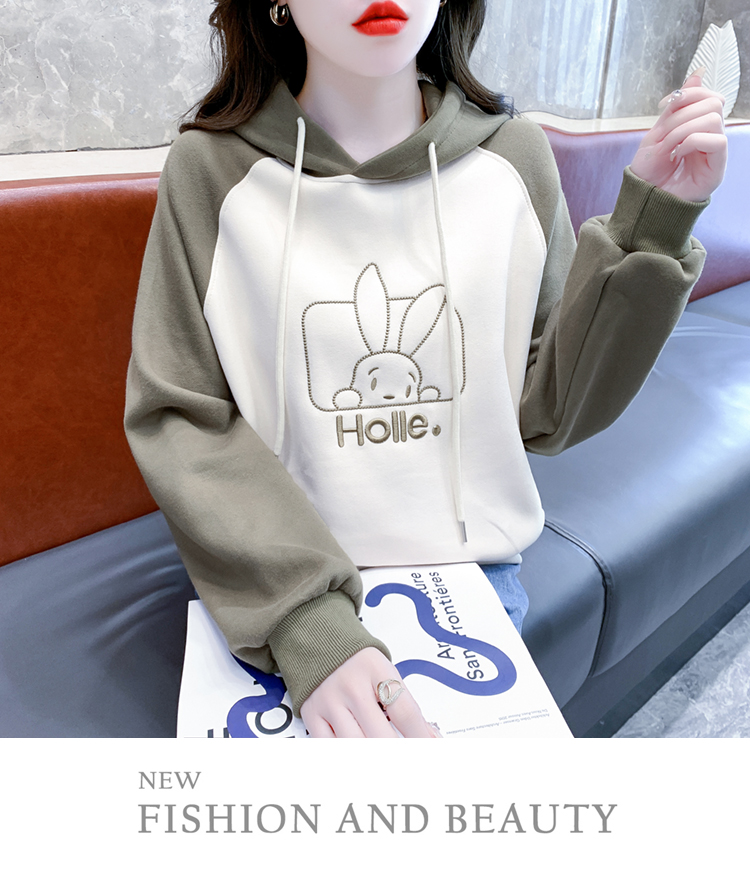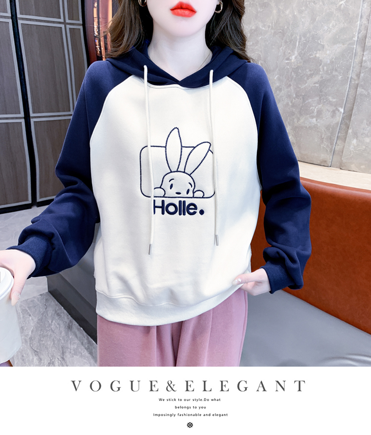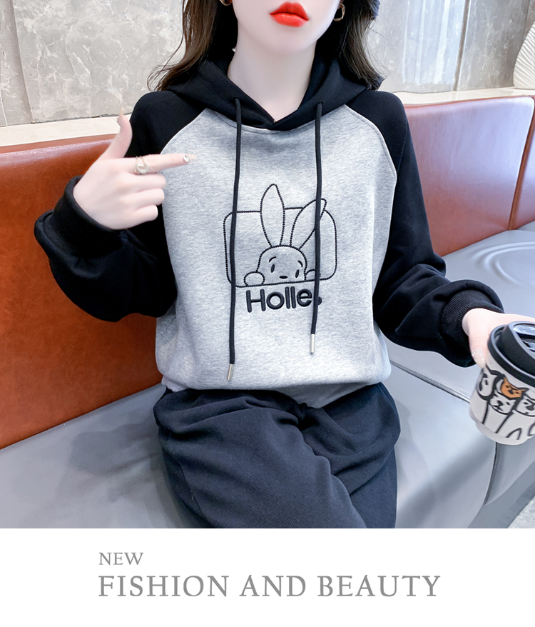 RM30469#连帽短款卫衣女秋季2023新款宽松拼色绣花小个子上衣外套潮